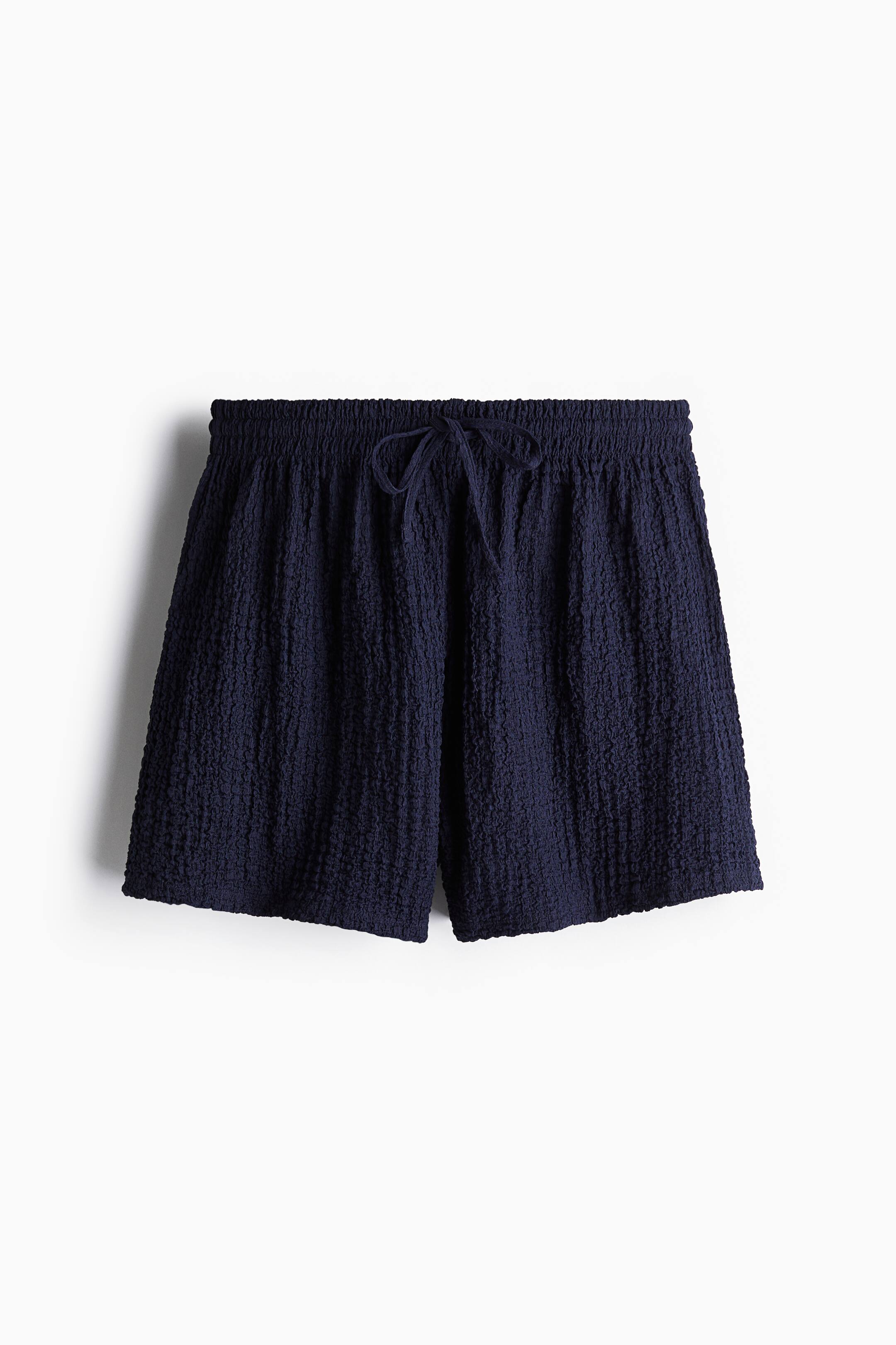 Shorts in crinkled jersey with elasticated smocking and a drawstring at the waist.