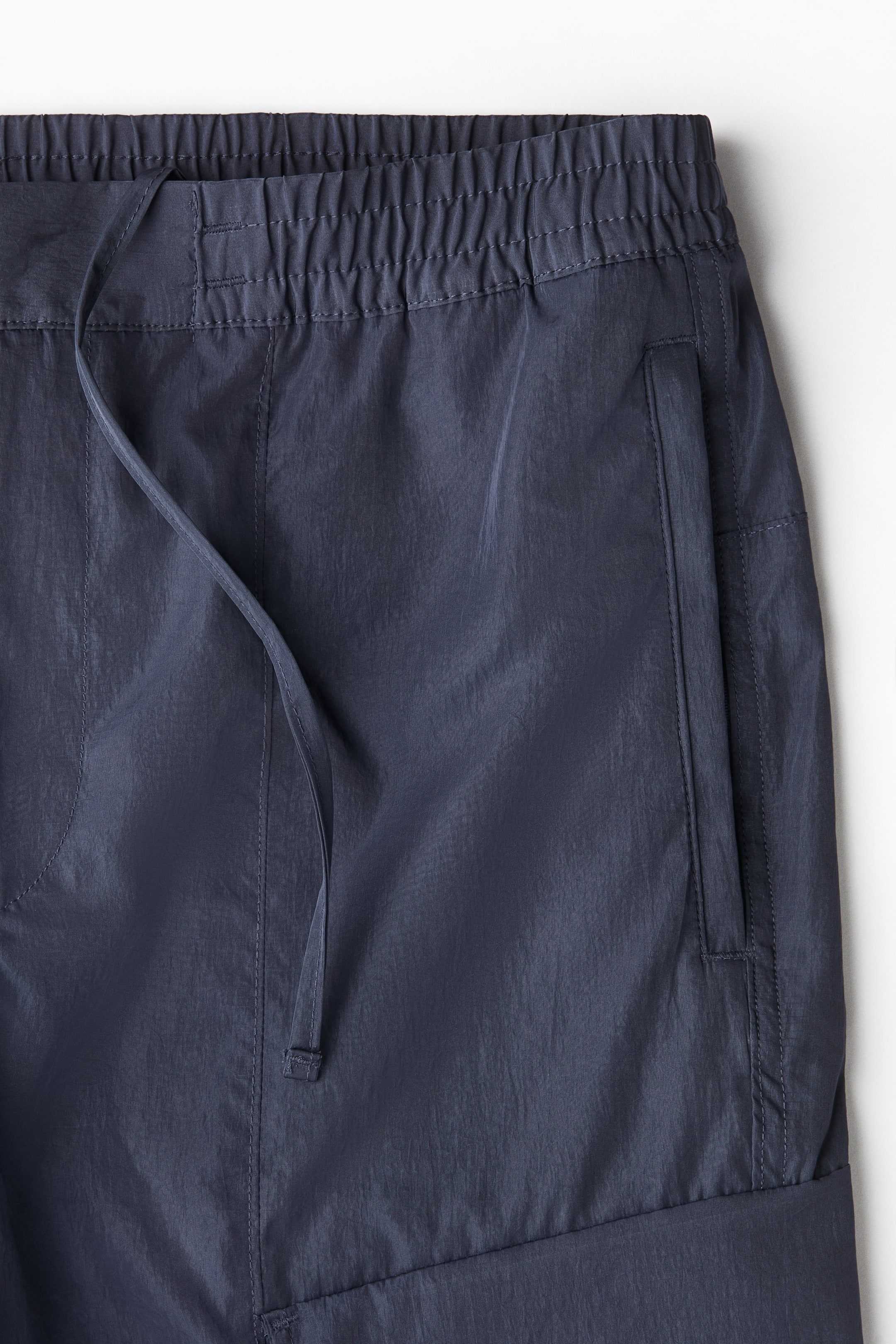 Cargo trousers in nylon featuring covered elastication and a drawstring at the waist and a zip fly with a press-stud. Zipped side and back pockets, and leg pockets with a flap and concealed press-studs. Concealed drawstring at the hems. Relaxed fit for a casual but not oversized silhouette.