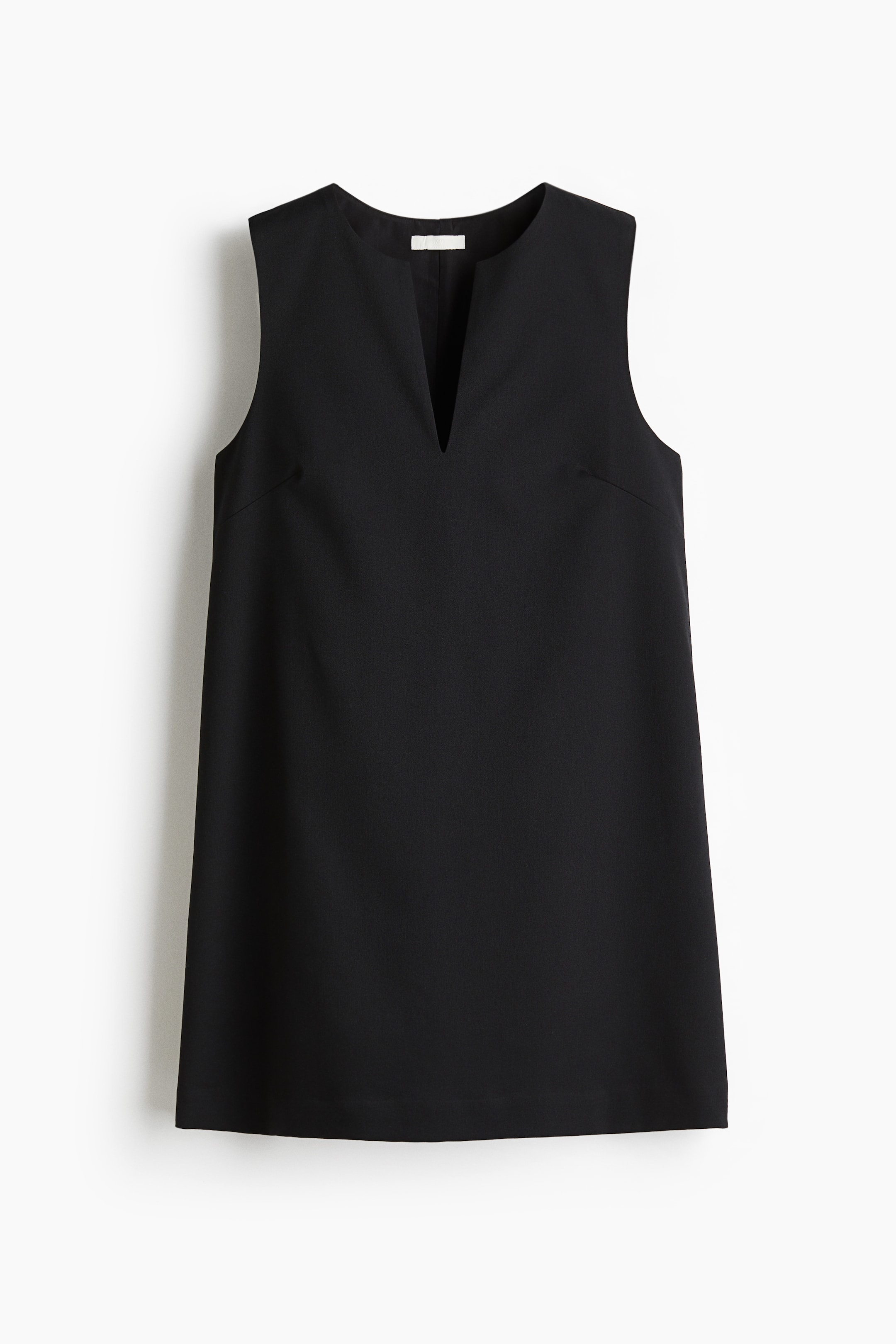 Short, sleeveless dress in twill with an A-line silhouette. Featuring a round neckline with a V-shaped opening at the front, and a straight-cut hem. Lined.