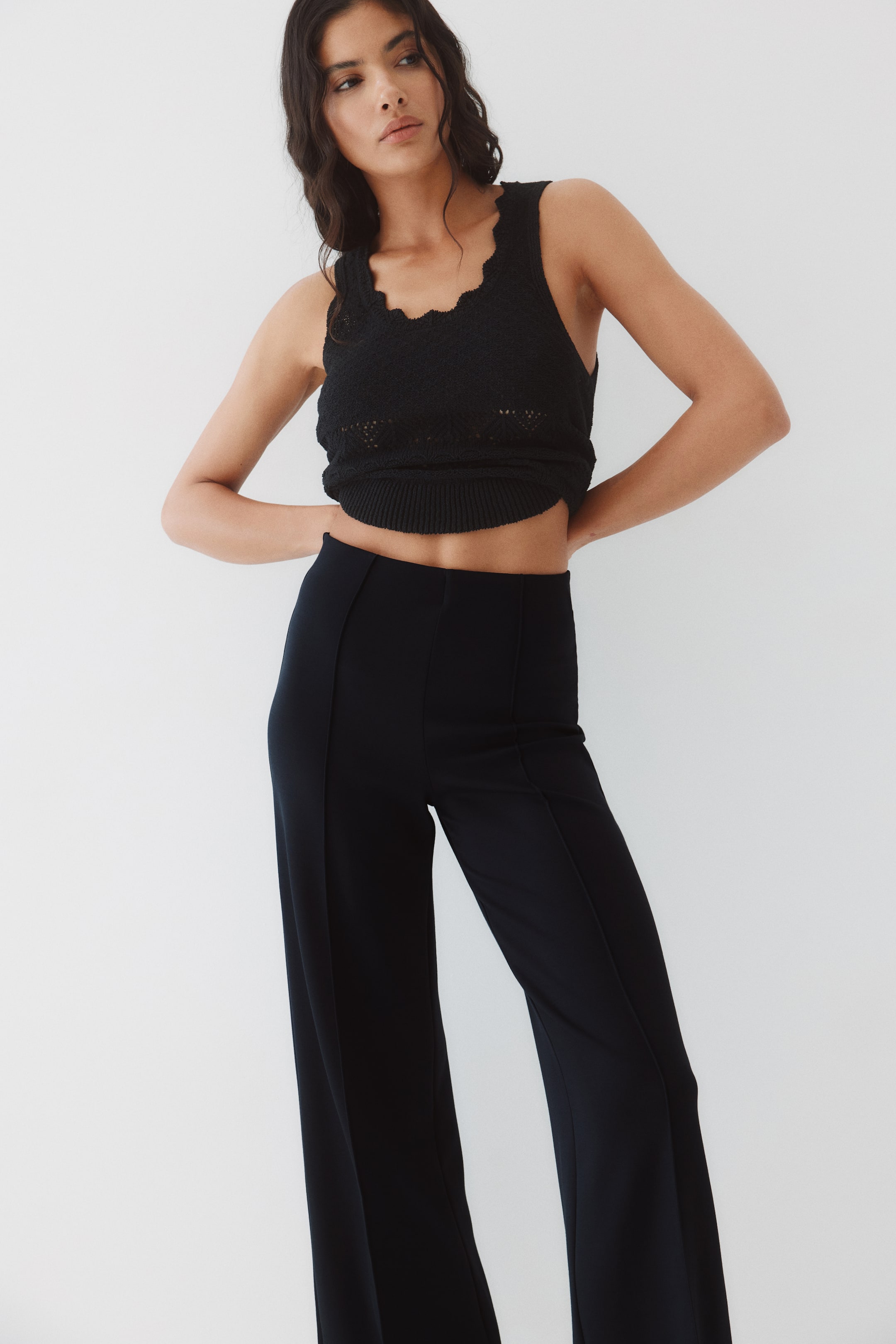 Slim-fit trousers in jersey featuring a high waist with concealed elastication. Straight legs with sewn-in creases at the front.