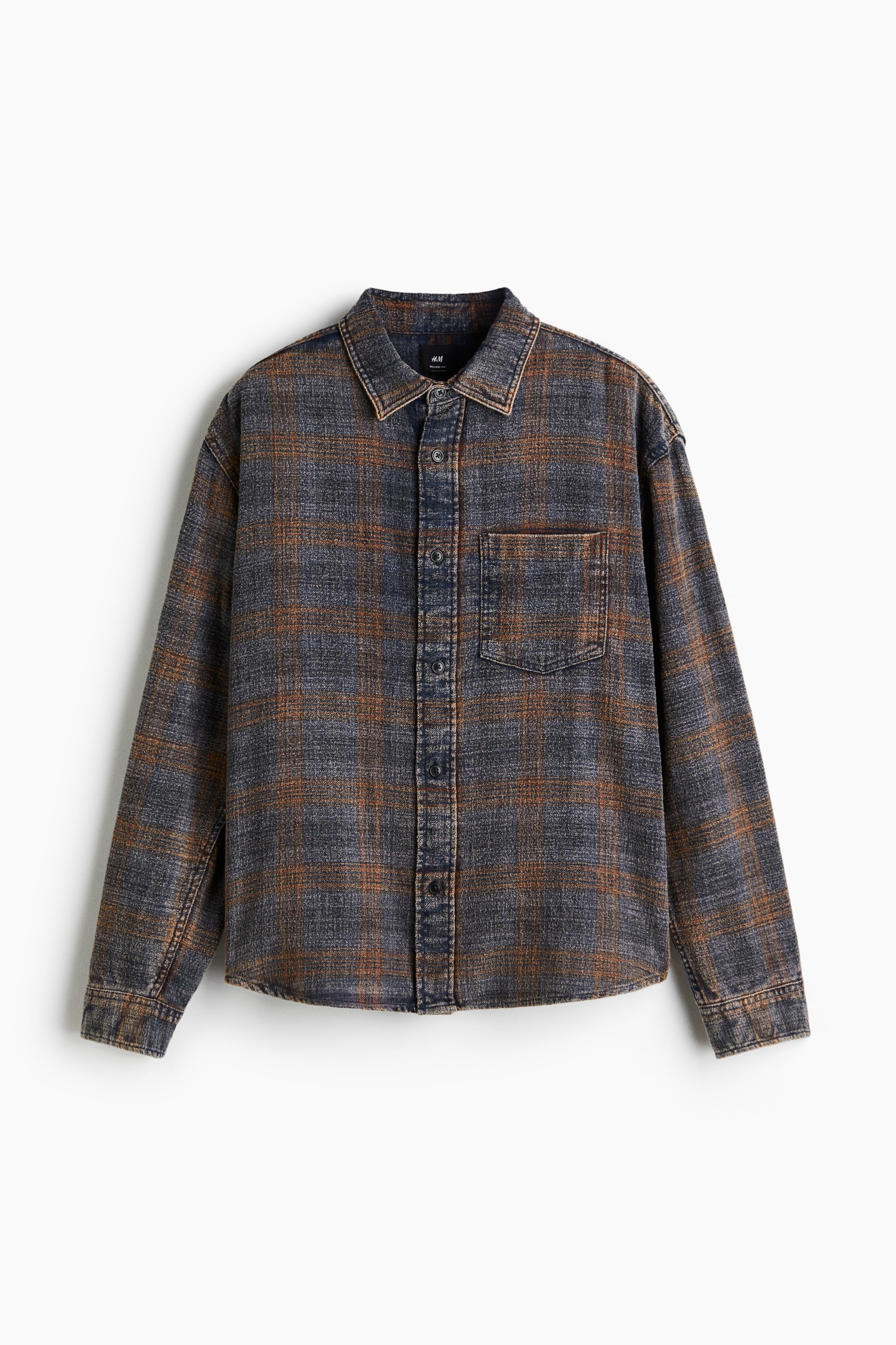 Relaxed-fit shirt in soft cotton flannel with a washed look featuring a turn-down collar, classic front, yoke at the back and an open chest pocket. Long sleeves with a sleeve placket and buttoned cuffs, and a gently rounded hem.