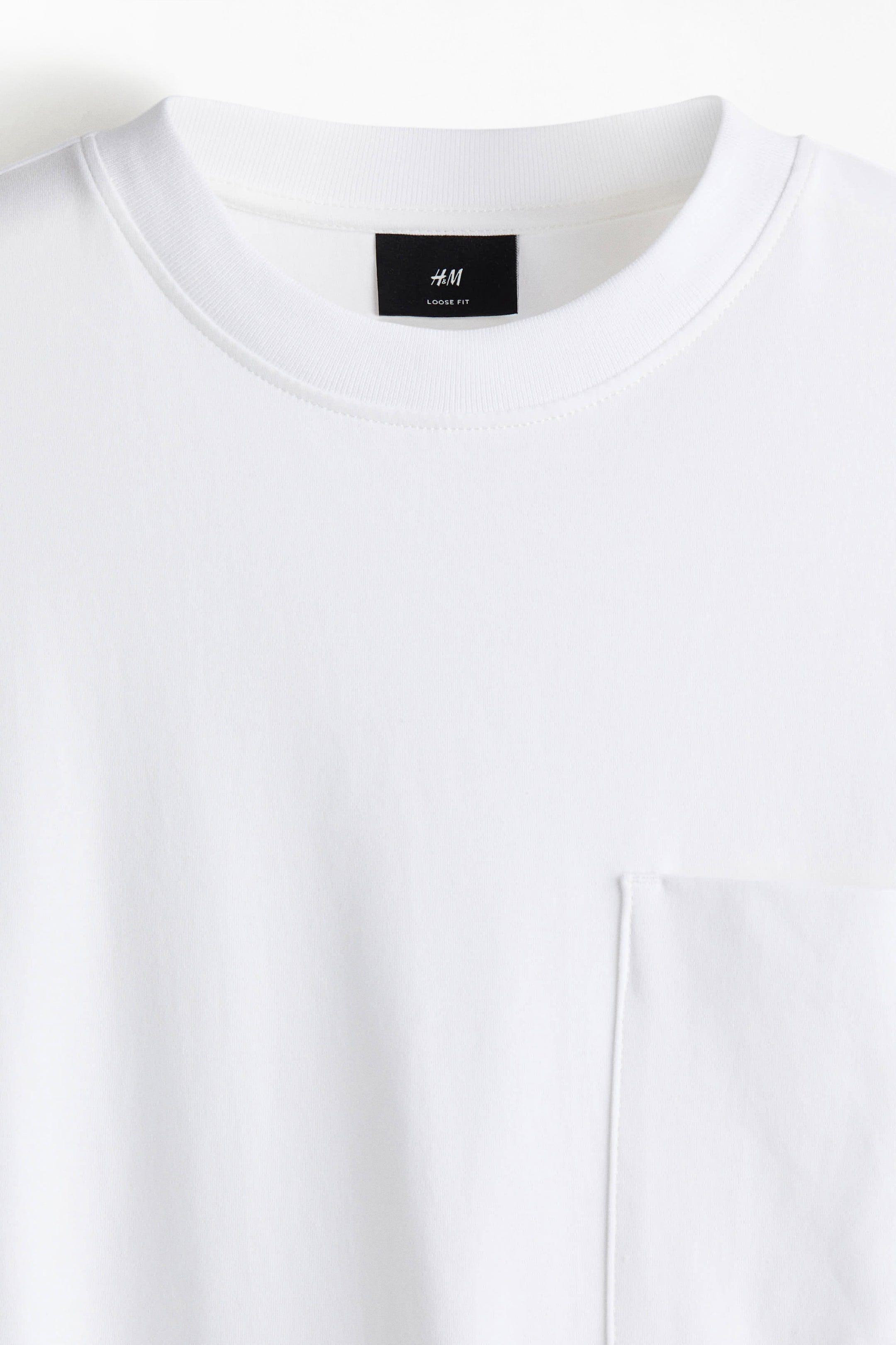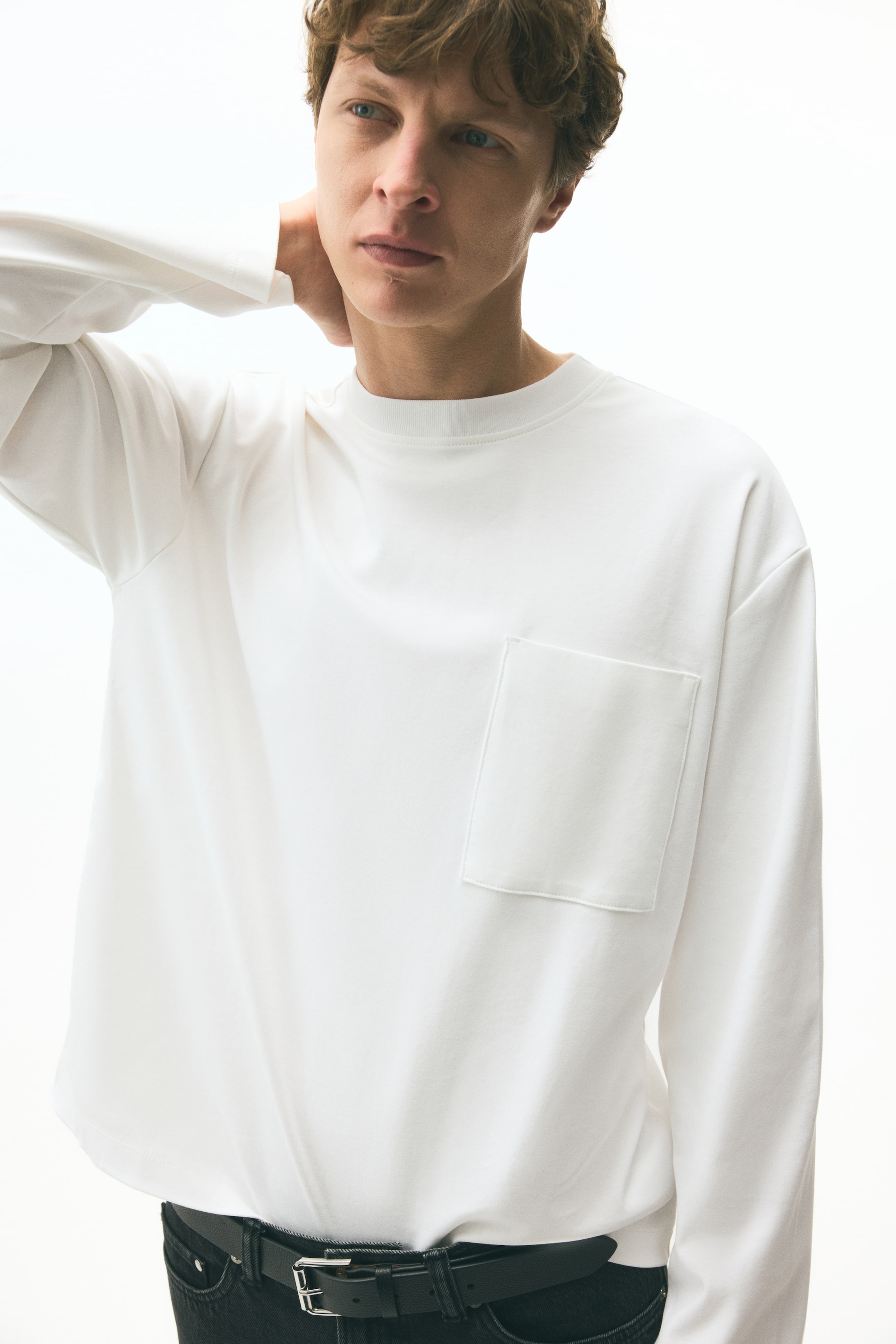 Boxy-style top in heavyweight cotton jersey with a round, rib-trimmed neckline, dropped shoulders, long sleeves, an open chest pocket and a straight-cut hem. Loose fit for a generous but not oversized silhouette.