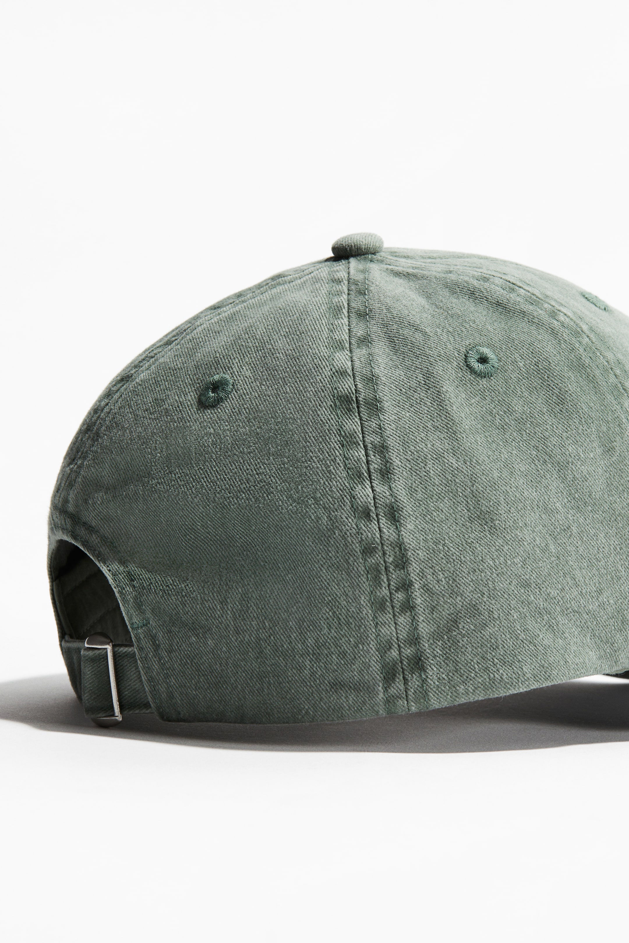 Cap in cotton twill with an embroidered motif on the front, embroidered eyelets at the top and an adjustable tab and metal fastener at the back. Finished with a cotton sweatband.