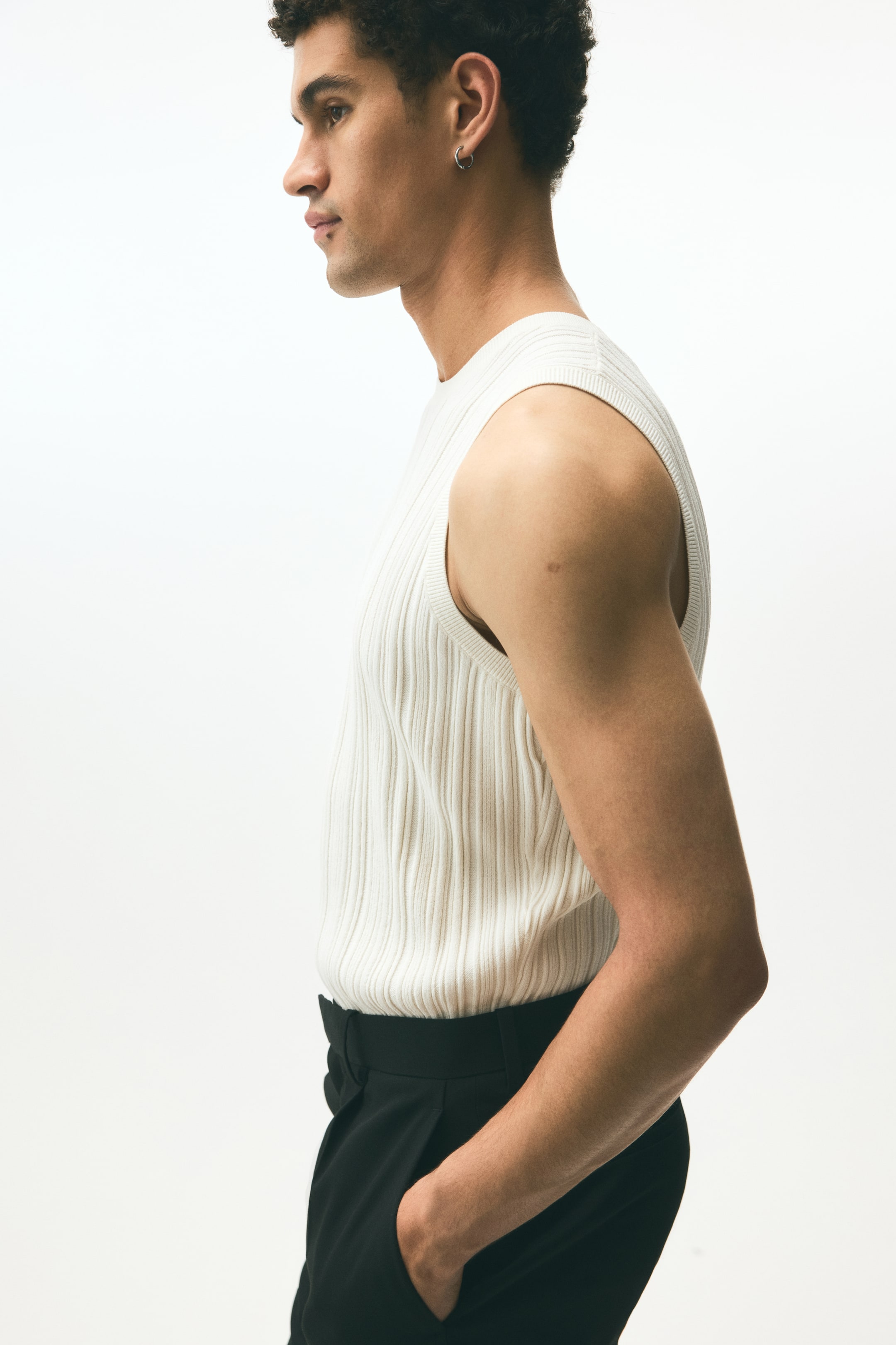 Vest top in a rib knit featuring a fine ribbed trim around the neckline, armholes and hem. Slim fit that hugs the contours of your body, creating a fitted silhouette.