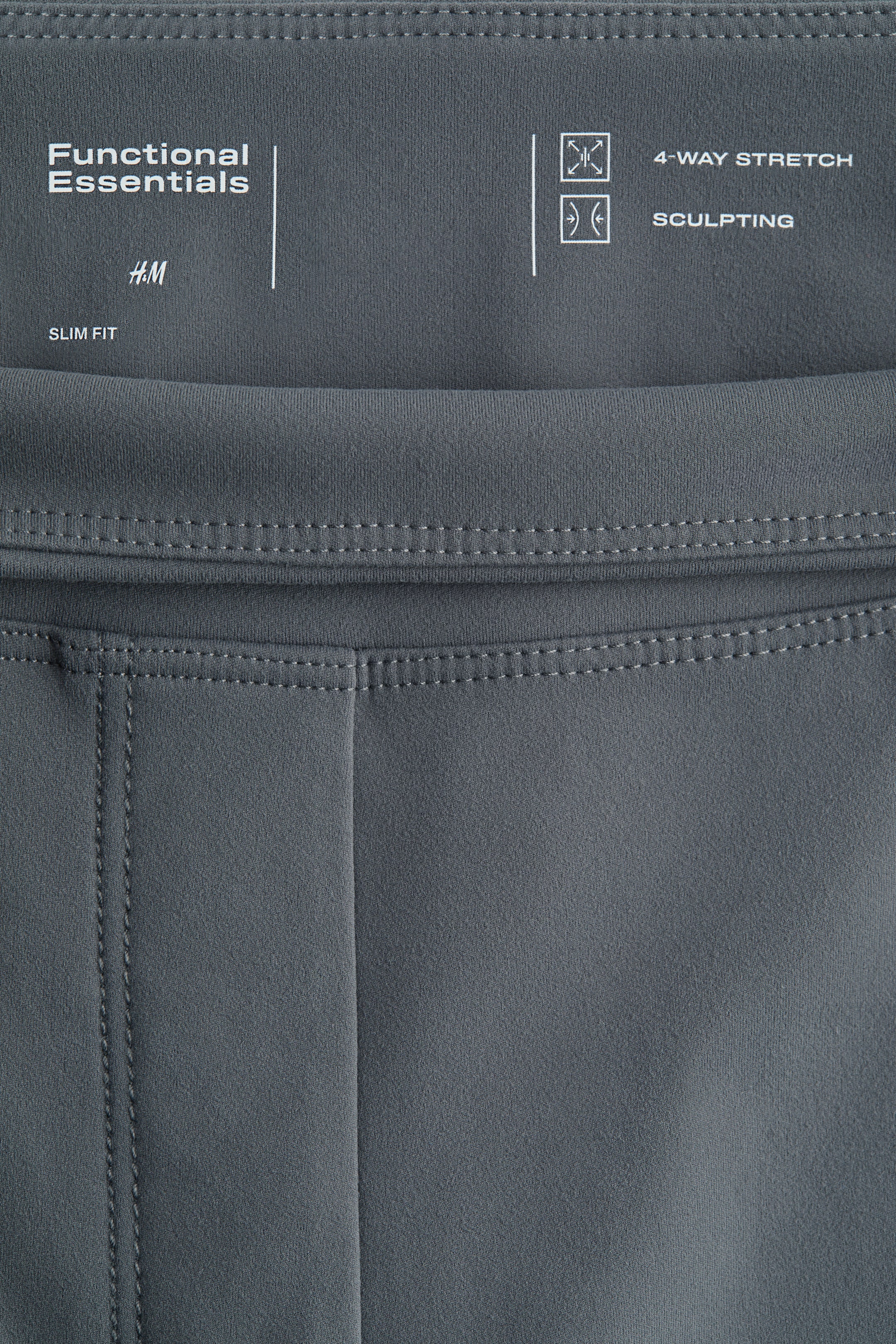 Trousers in a soft fabric with four-way stretch that offers complete flexibility, shape and fluid motion in every direction. Slim fit with an elasticated waistband, fake fly, decorative front pockets and flared hems. Functional Essentials is a curated selection of pieces that incorporates comfort and performance into everyday wear.