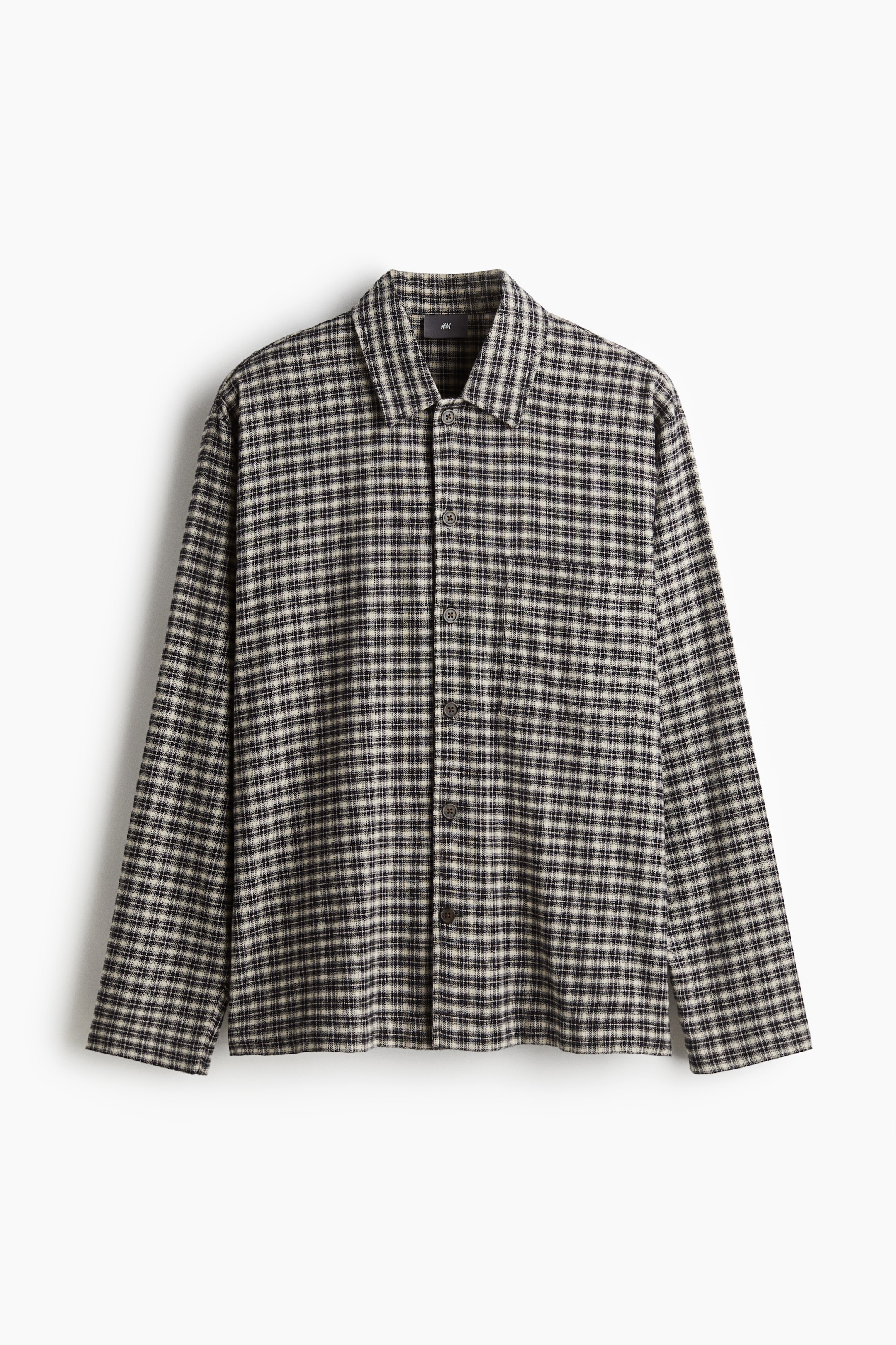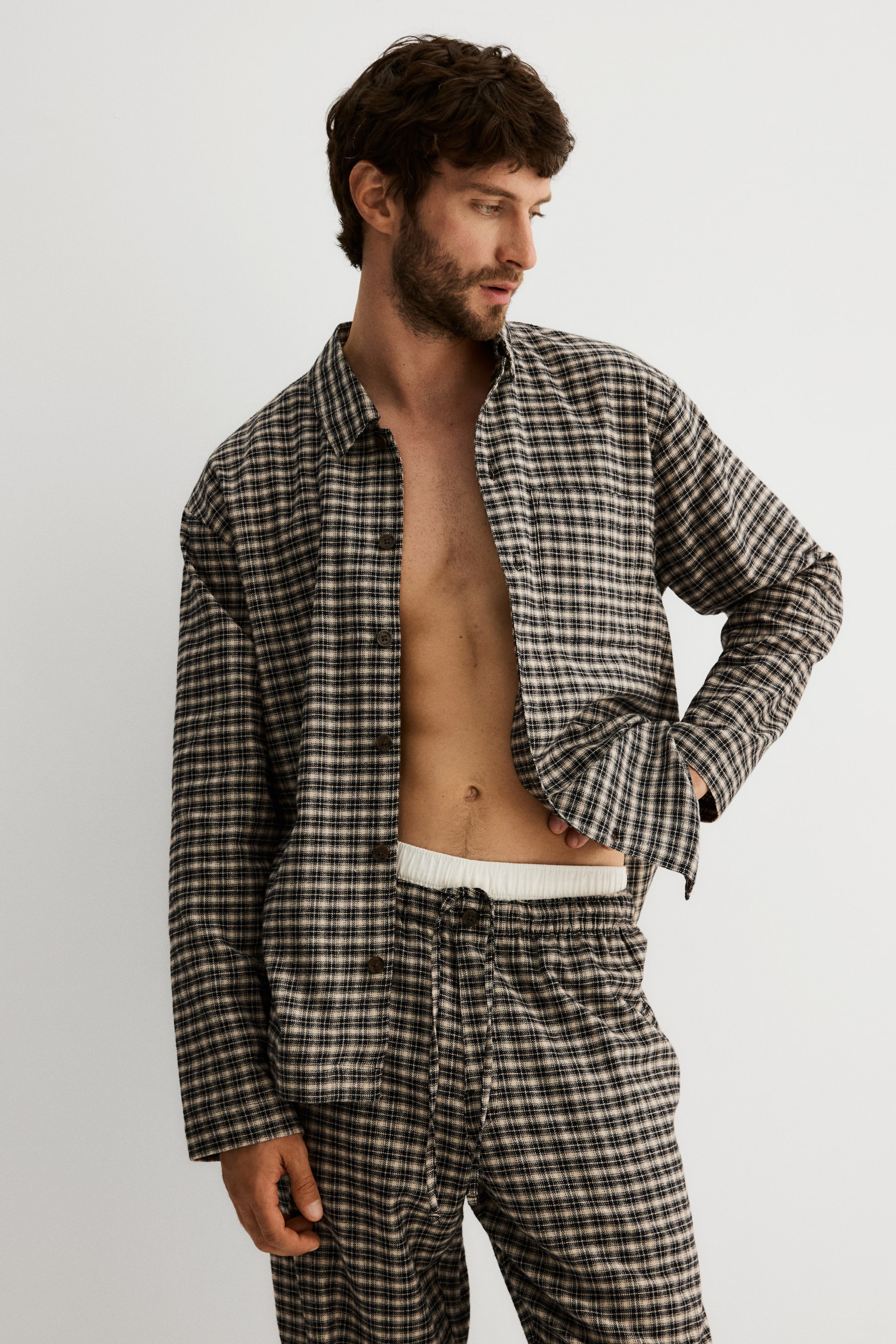 Pyjamas with a shirt and a pair of bottoms in soft cotton flannel. Shirt with a turn-down collar, French front, chest pocket and a straight-cut hem. Bottoms featuring an elasticated waist with a concealed drawstring and decorative button at the front, a fake fly and discreet side pockets.
