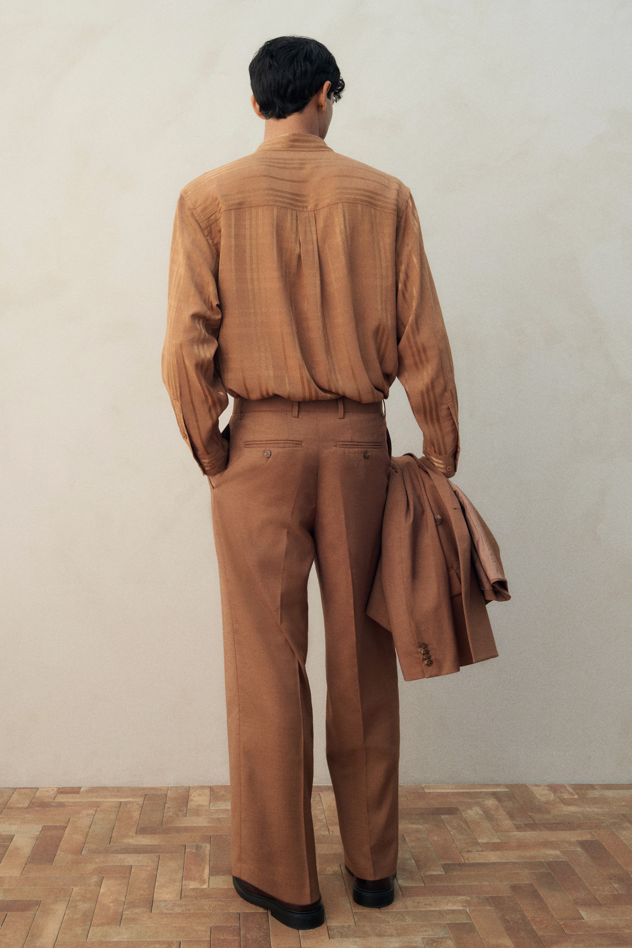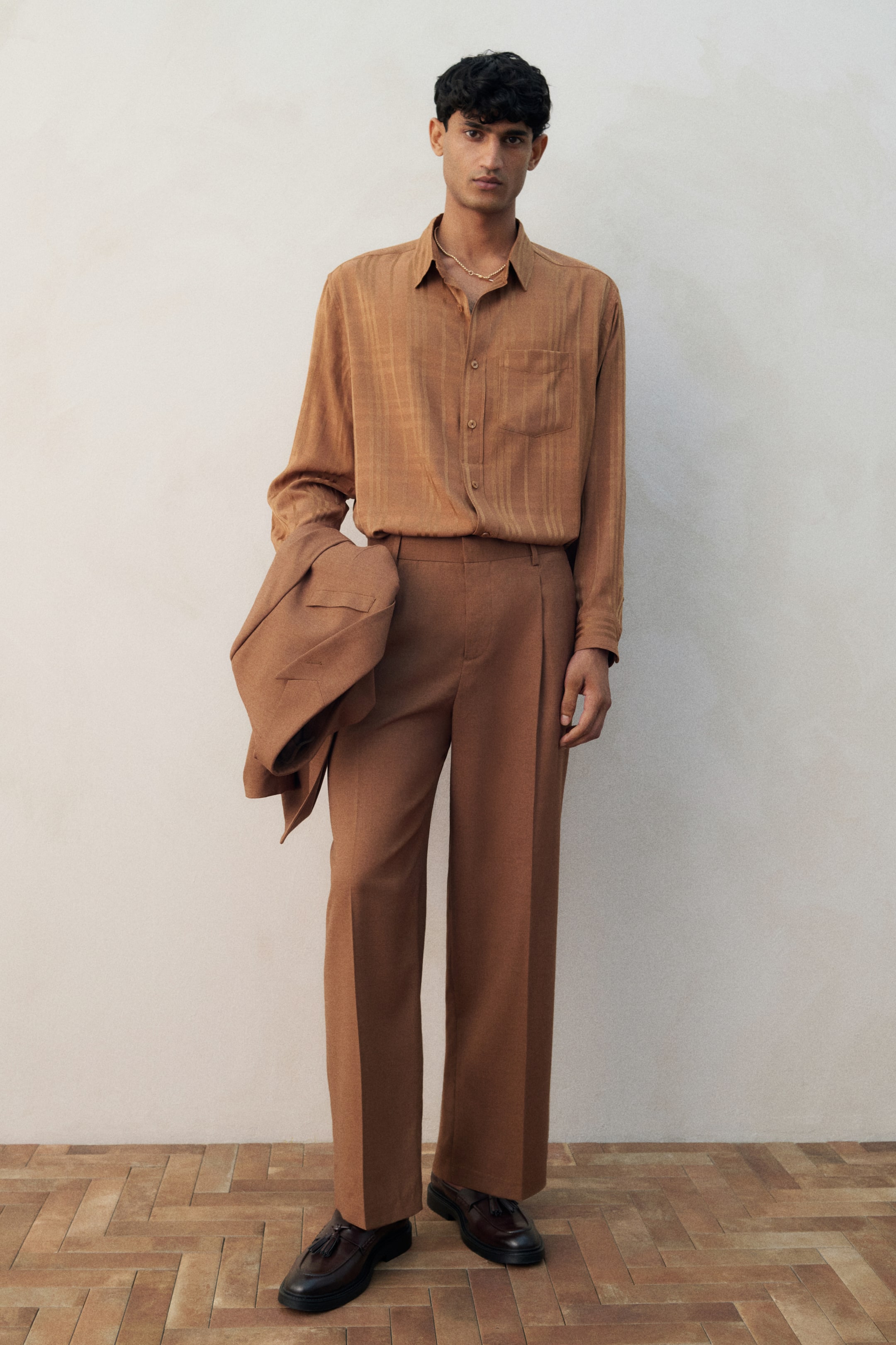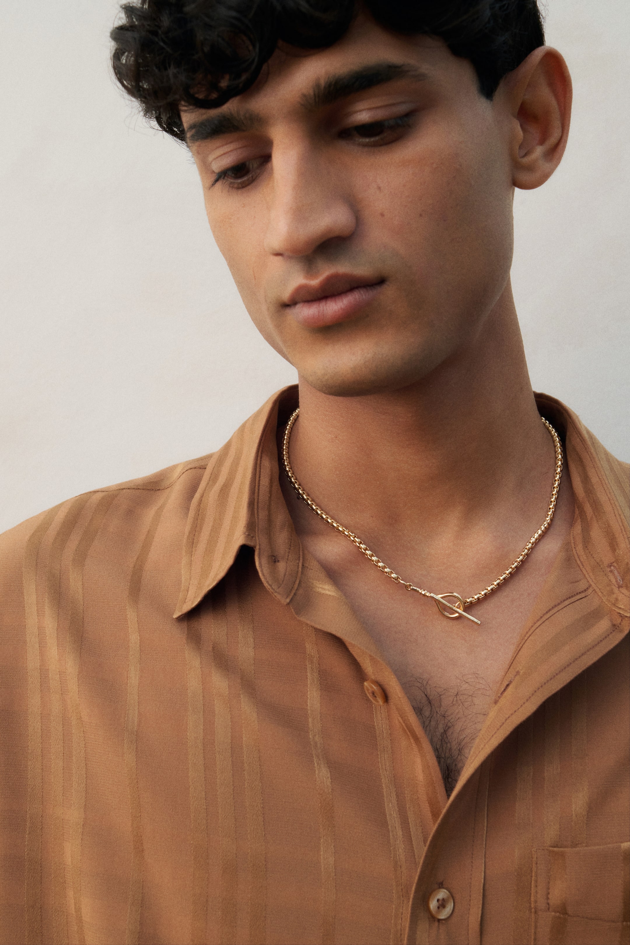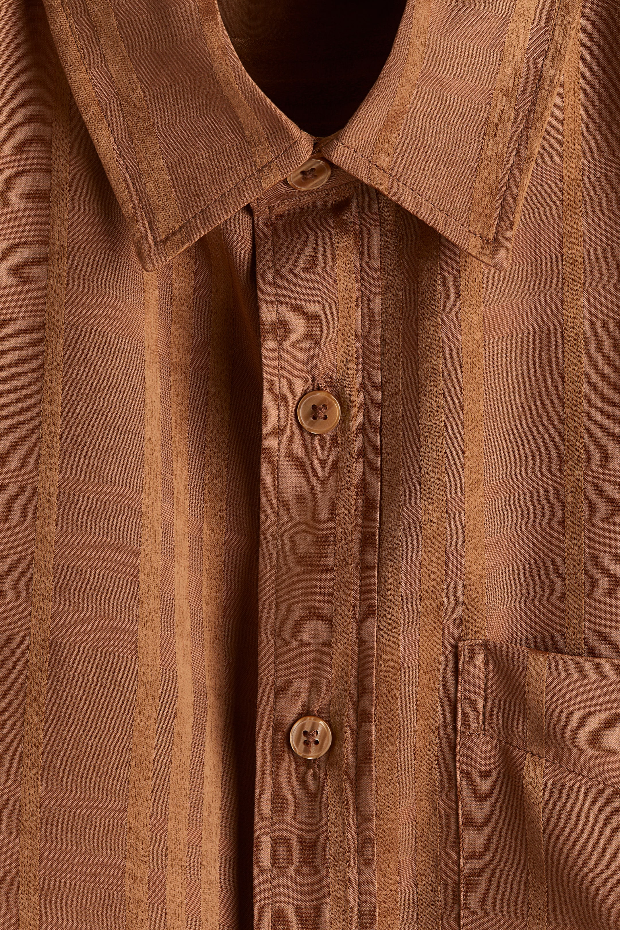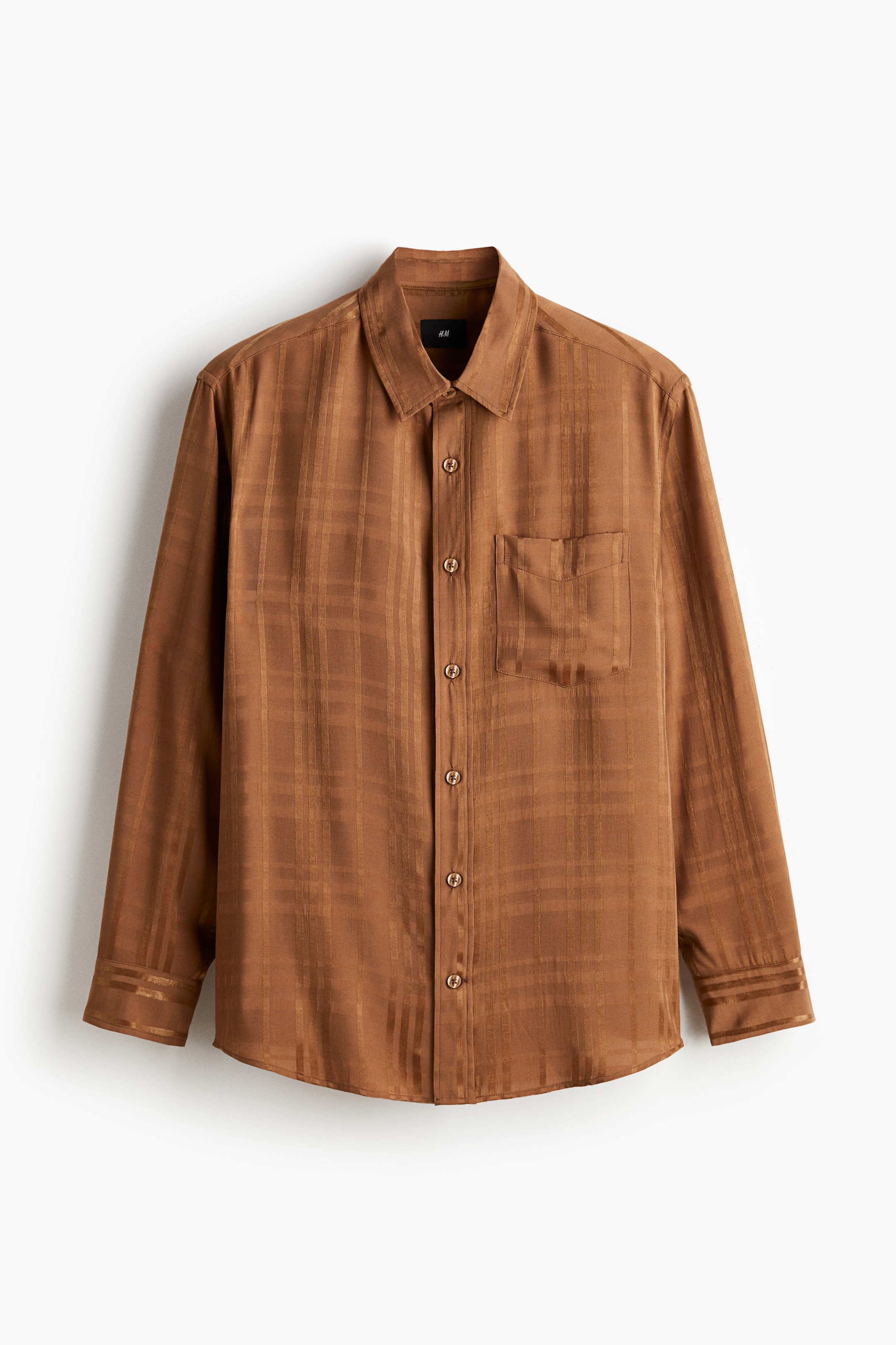 Shirt in a soft weave with a turn-down collar, classic front, yoke at the back and an open chest pocket. Long sleeves with buttoned cuffs and a sleeve placket with a link button. Gently rounded hem. Regular fit for comfortable wear and a classic silhouette.