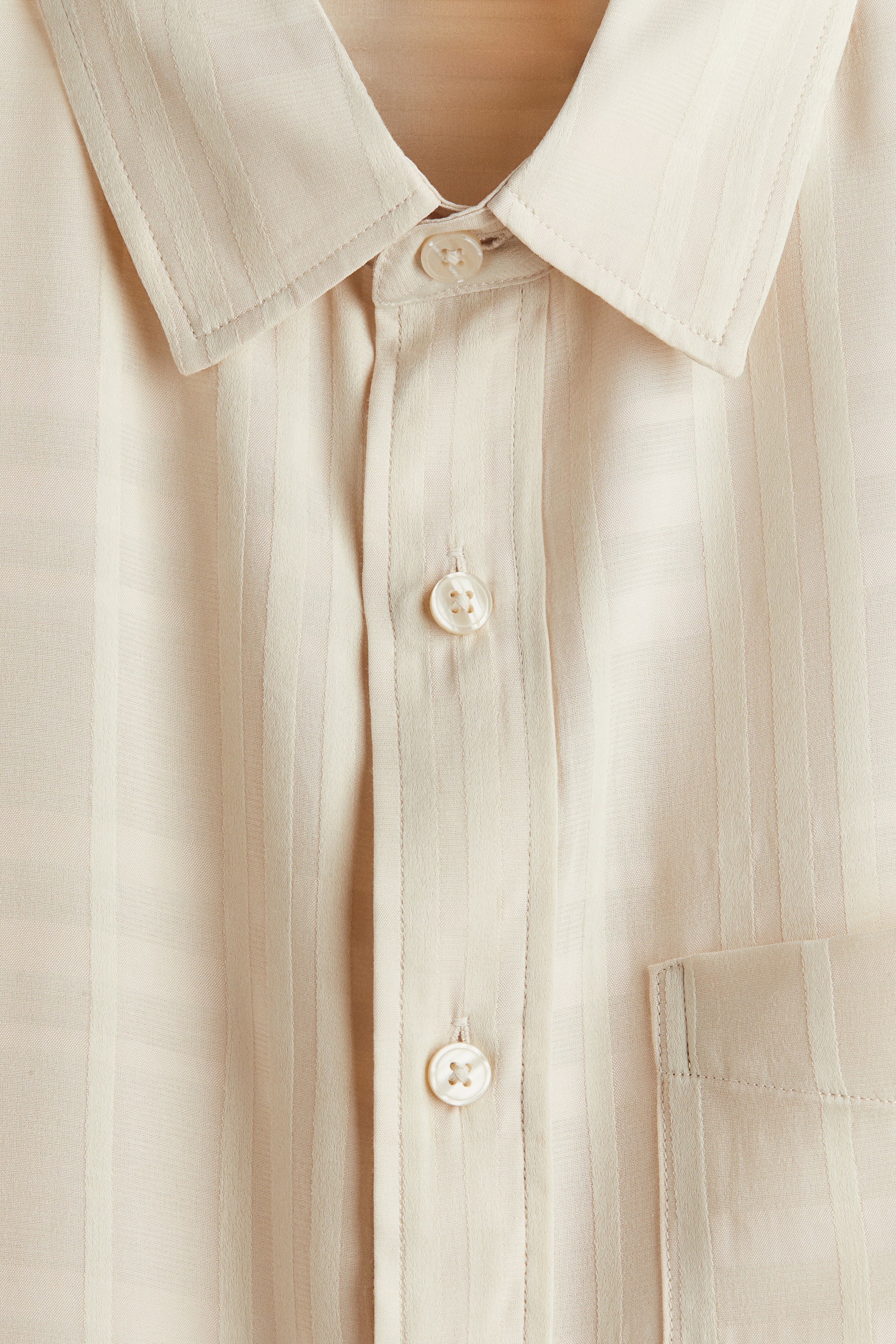 Shirt in a soft weave with a turn-down collar, classic front, yoke at the back and an open chest pocket. Long sleeves with buttoned cuffs and a sleeve placket with a link button. Gently rounded hem. Regular fit for comfortable wear and a classic silhouette.