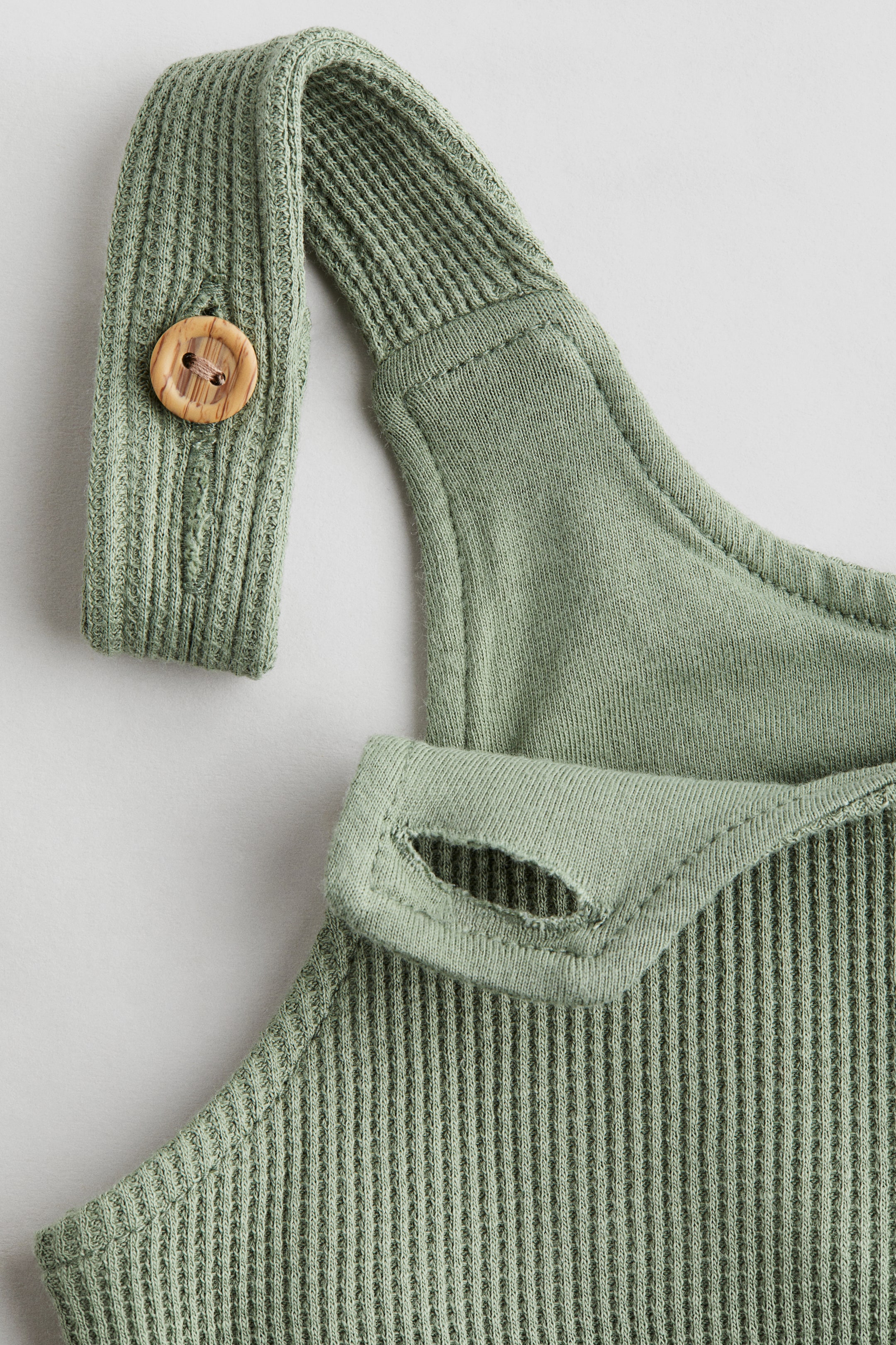 Dungarees in soft, waffled cotton jersey featuring adjustable shoulder straps with a button fastening, and patch front pockets.