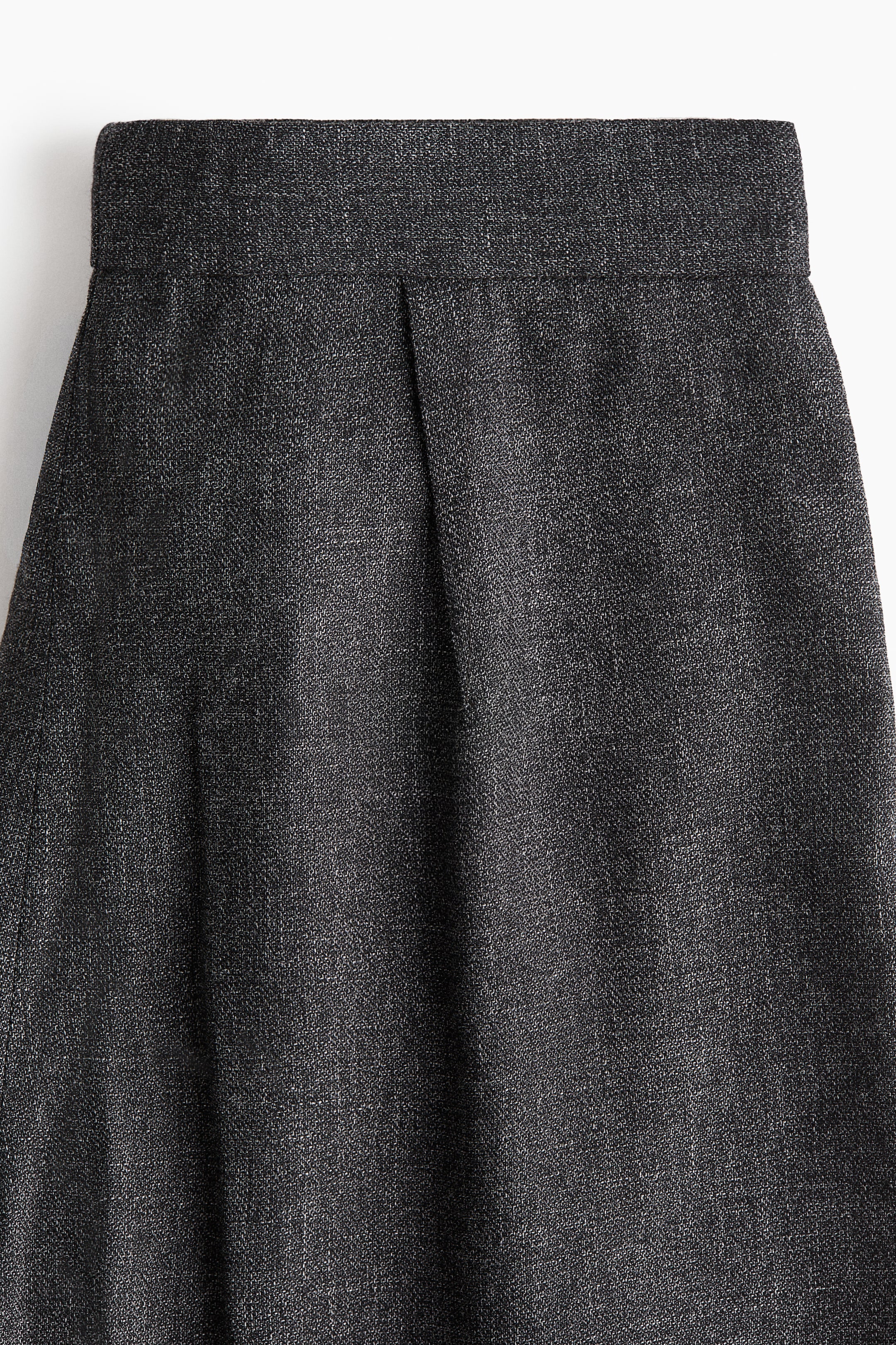 Loose-fit suit trousers in woven fabric containing wool and linen. High waist with exposed darts at the back, a zip fly, and an extended waistband with a concealed button and hook-and-bar fasteners. Discreet side pockets and a deep pleat at the front of the legs for a voluminous shape.