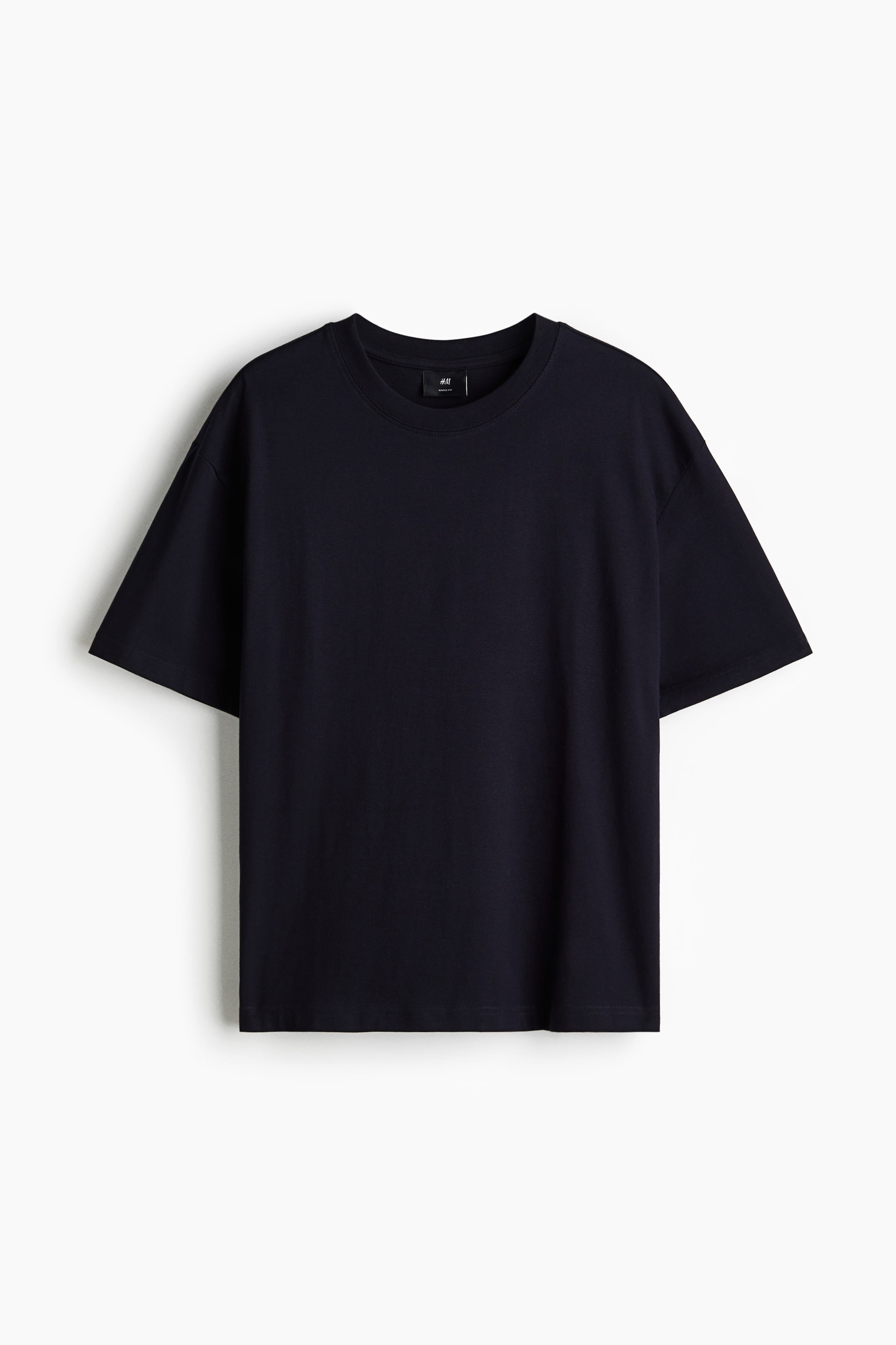 T-shirt in midweight cotton jersey with a round, rib-trimmed neckline, dropped shoulders and a straight-cut hem. Loose fit for a generous but not oversized silhouette.