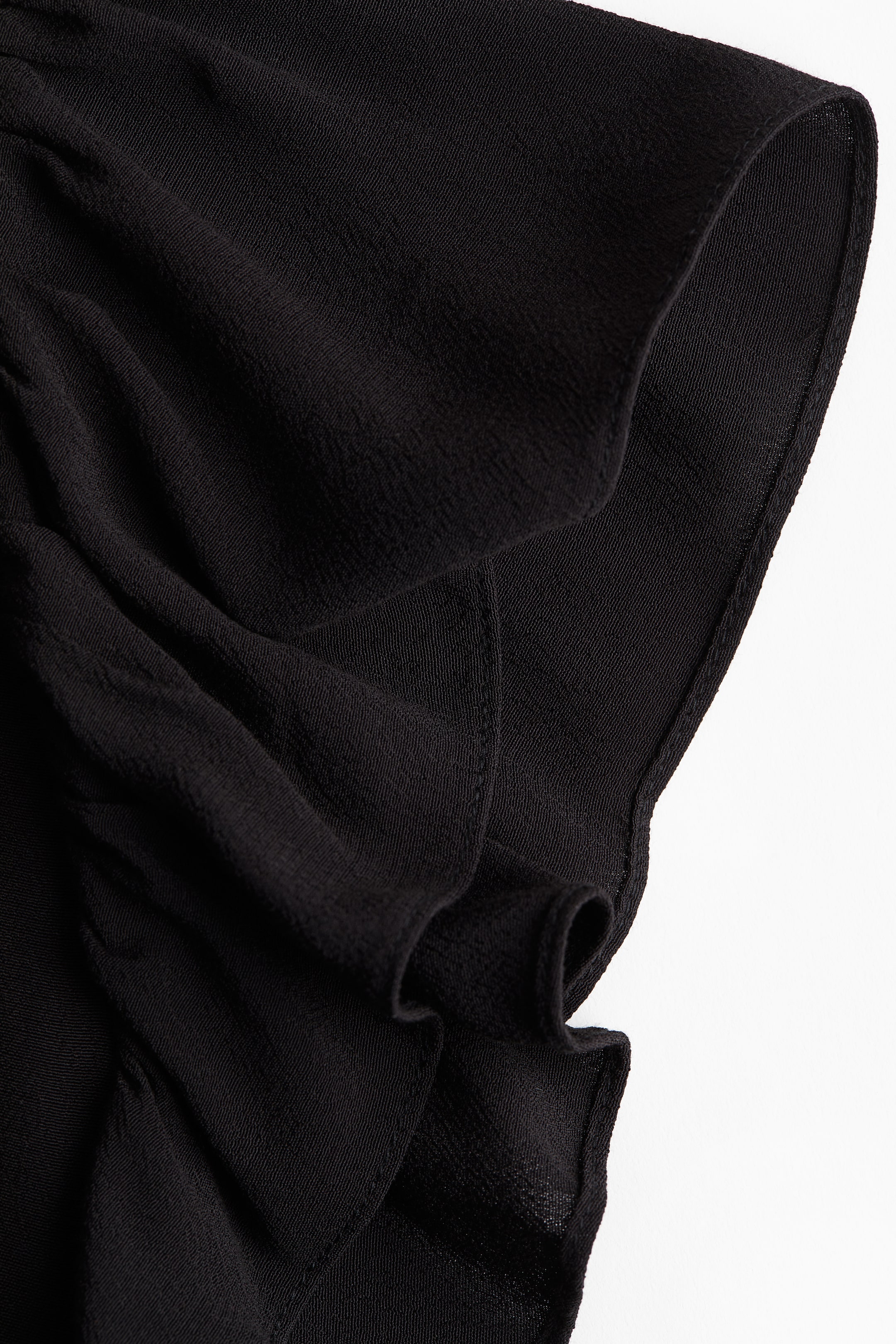 Short dress in a viscose crêpe weave with a round neckline and a keyhole opening with a concealed button at the back. Butterfly sleeves, diagonal seams from the waist and a flared, asymmetric skirt. Unlined.