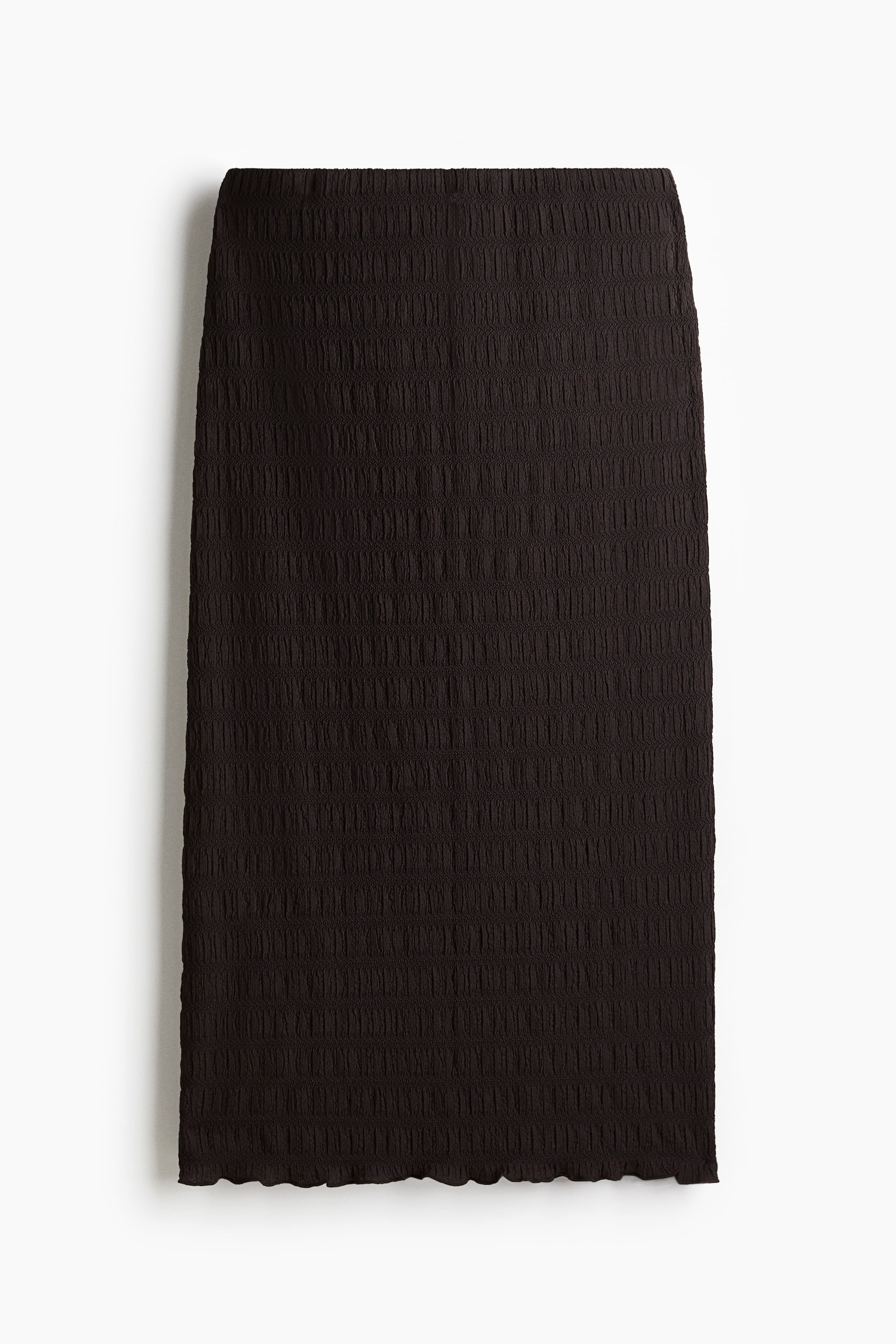 Ankle-length skirt in smocked, crinkled jersey with covered elastication at the waist and an overlocked edge at the hem.