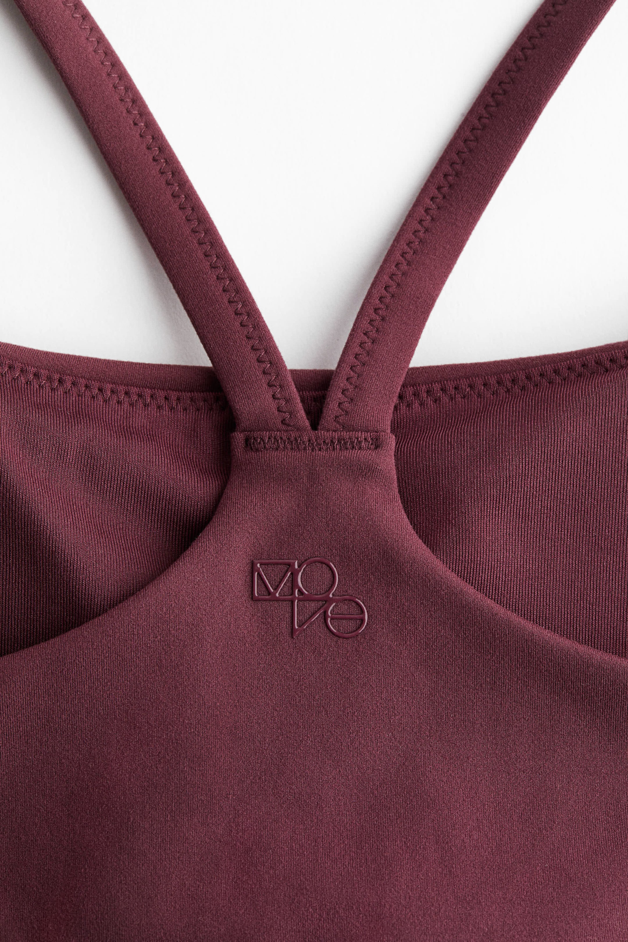 Sports bra in functional fabric made with SoftMove™, which provides the ultimate in softness and comfort plus contouring support, and DryMove™, which helps pull moisture away from your skin. Round neckline at the front, shoulder straps, and lined cups with removable inserts for an adjustable fit and to shape the bust. Brushed elastication at the hem. Medium support suitable for moderate-intensity workouts.