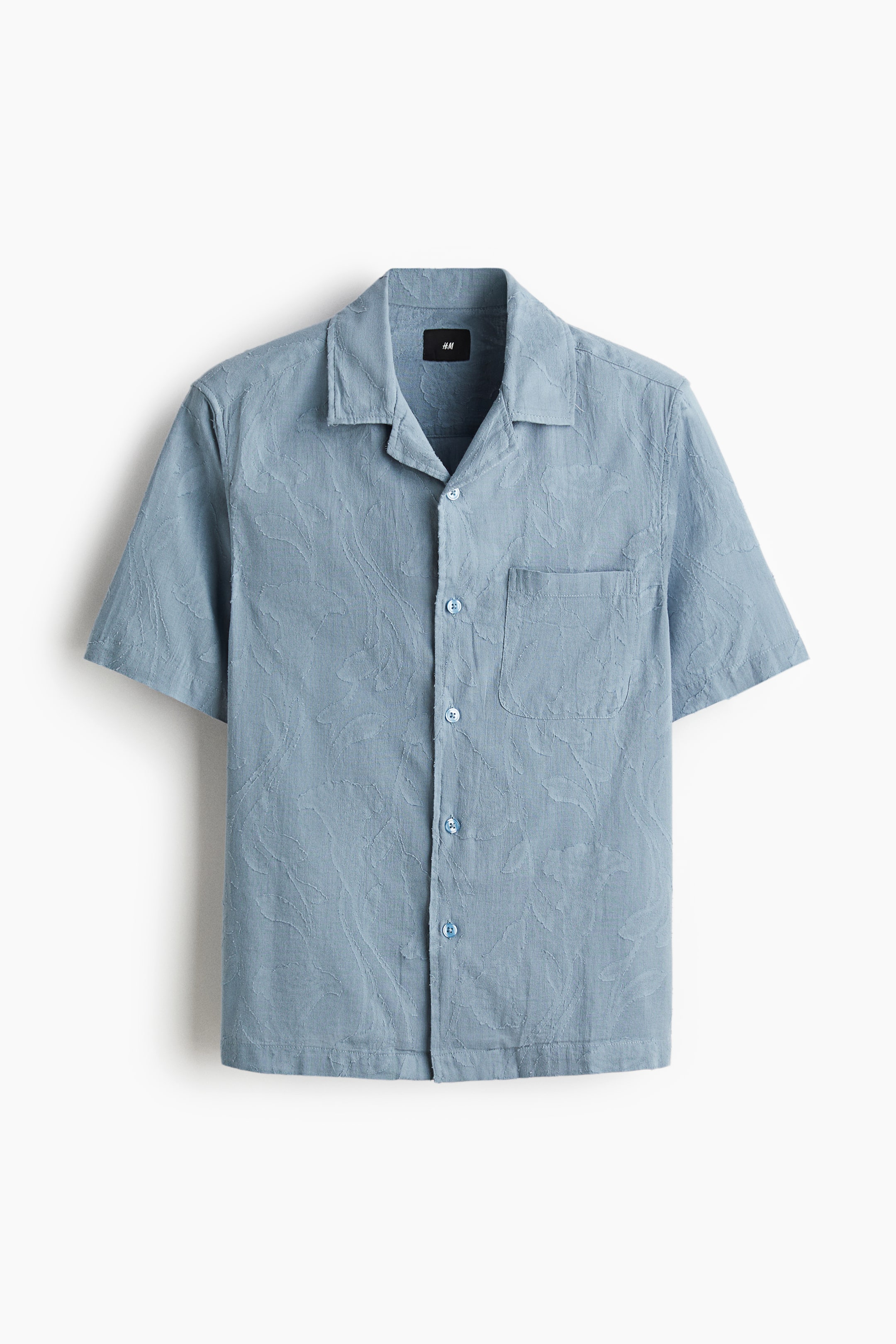 Short-sleeved shirt in a cotton jacquard weave with a resort collar, French front, an open chest pocket and a straight-cut hem. Regular fit for comfortable wear and a classic silhouette.