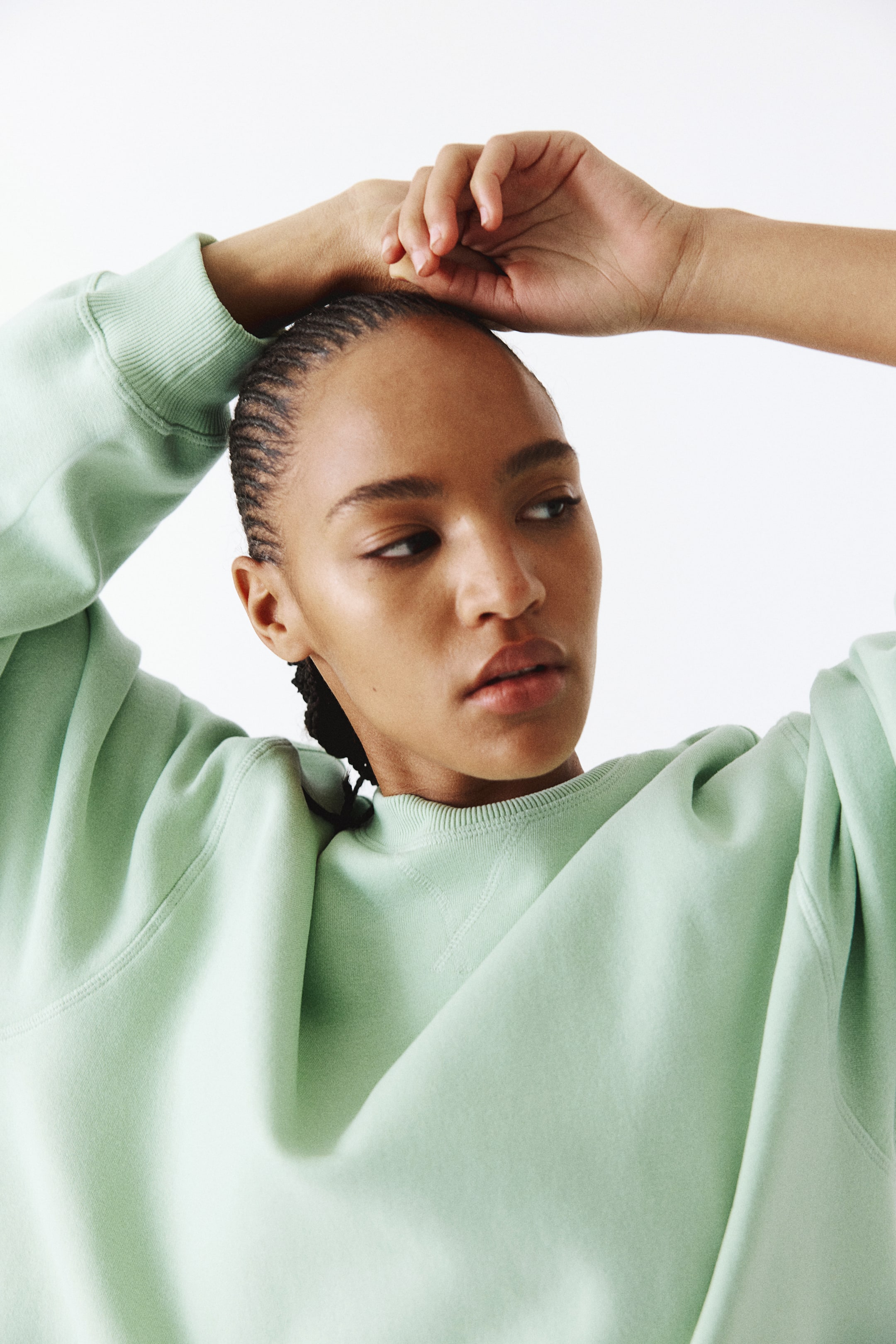 Oversized top in sweatshirt fabric made from a cotton blend with a soft brushed inside. Dropped shoulders, long sleeves and ribbing around the neckline, cuffs and hem.