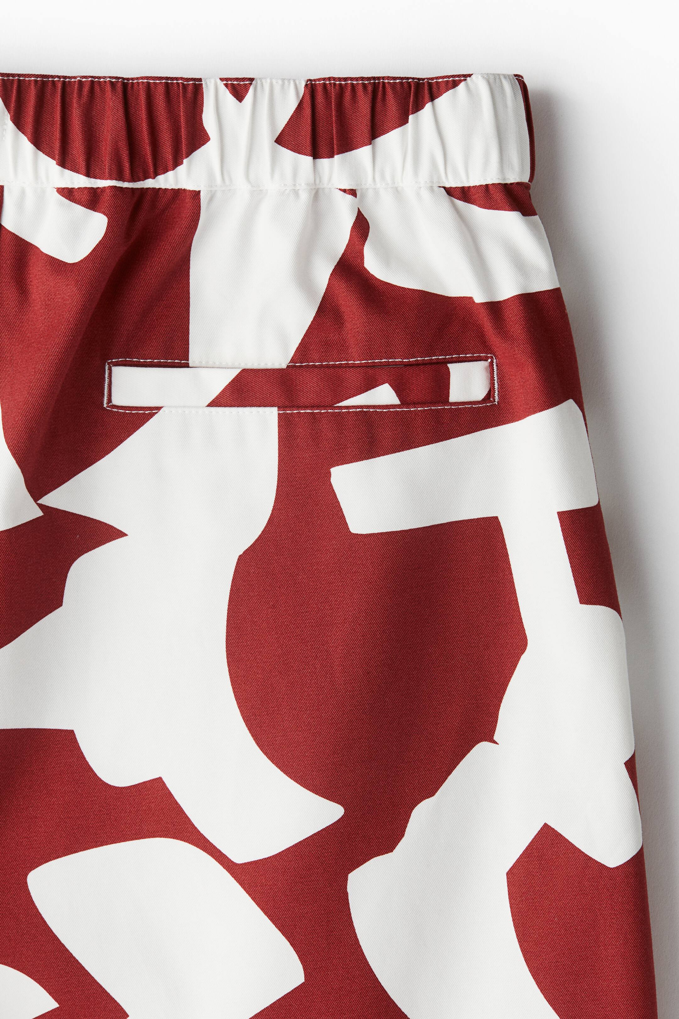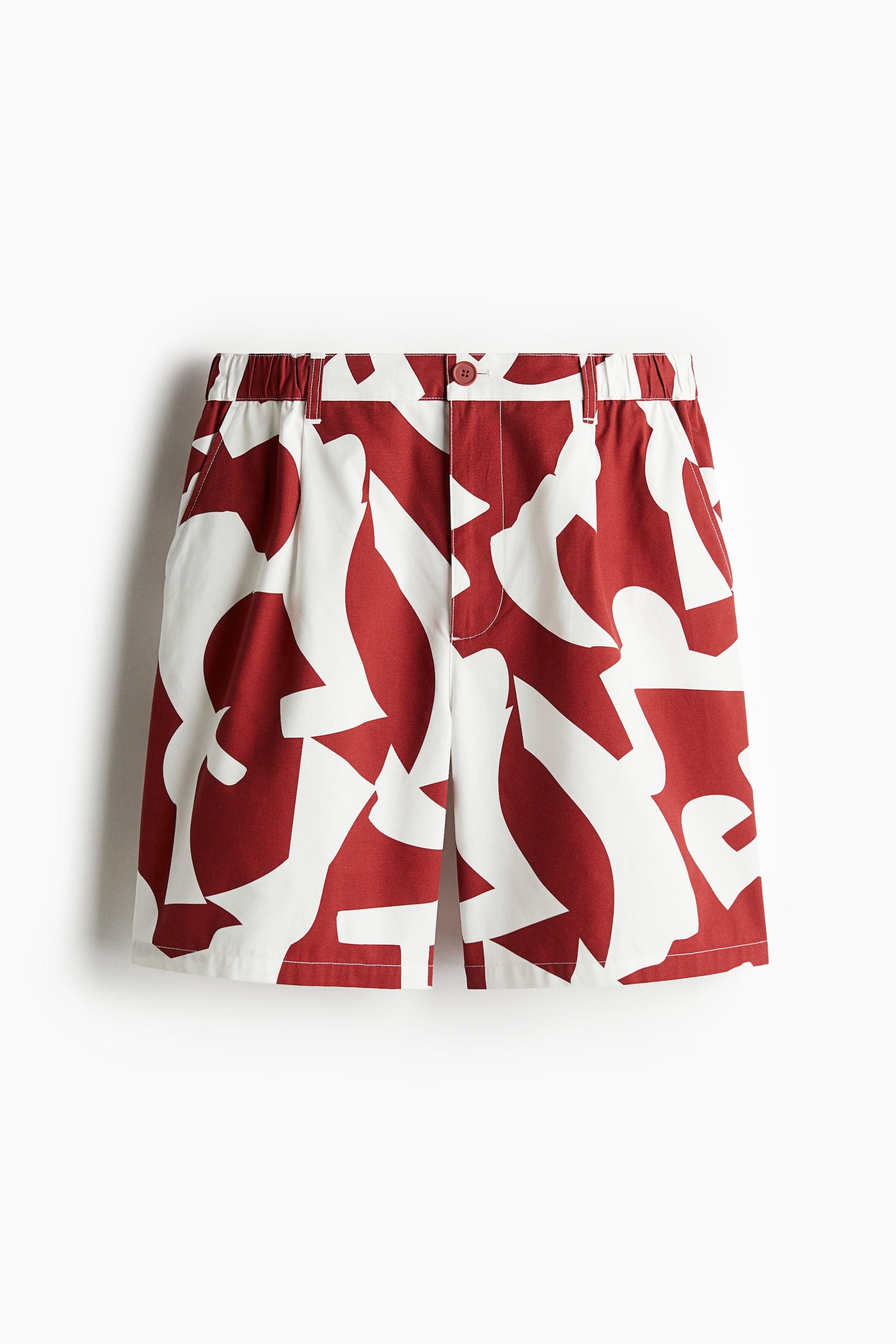 Shorts in a soft cotton weave with covered elastication and a concealed drawstring at the waist, a zip fly and button, diagonal side pockets and a fake back pocket. Loose fit for a generous but not oversized silhouette.