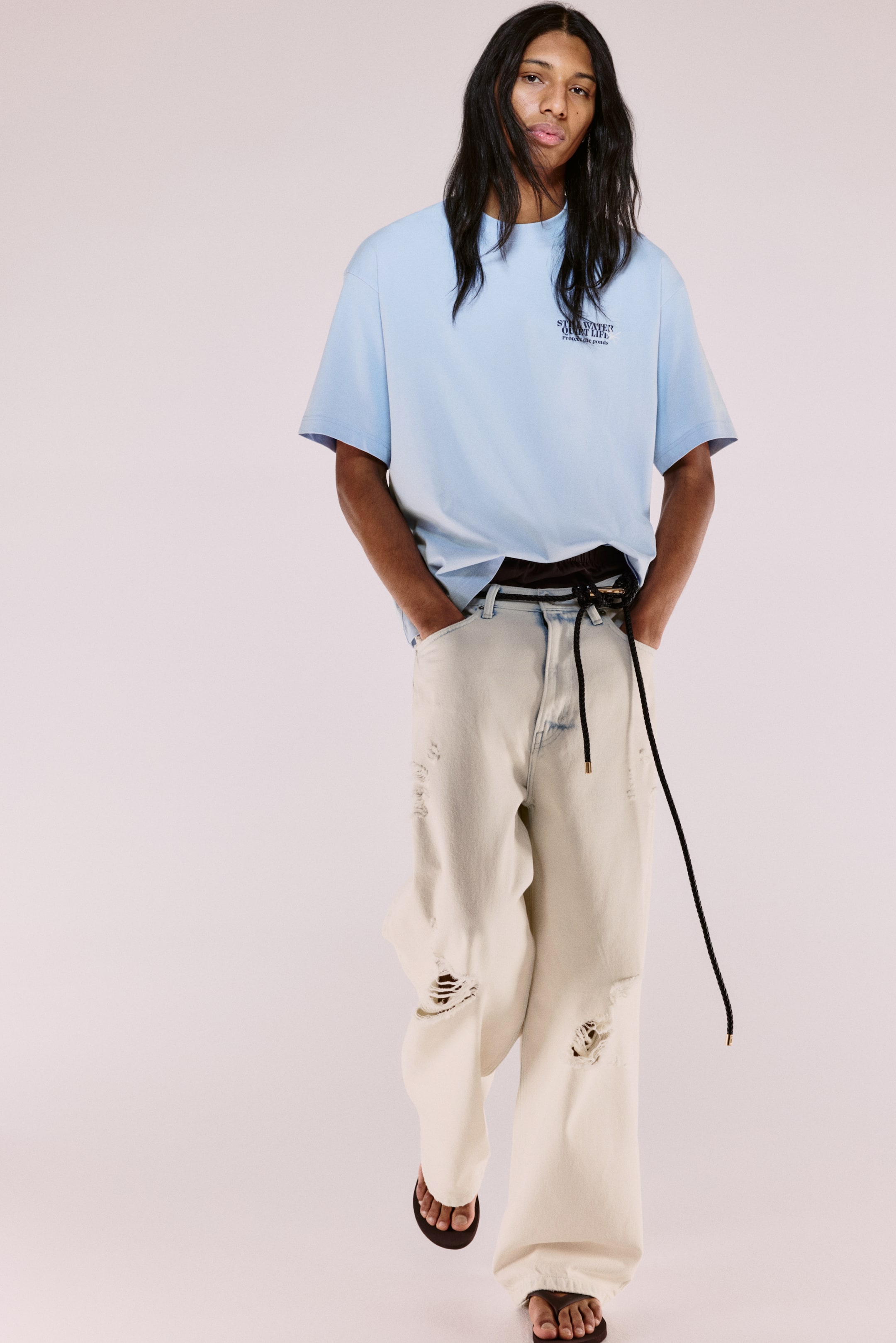 Loose-fit T-shirt in medium weight cotton jersey with a printed motif and a generous but not oversized silhouette. Ribbed crew neck, dropped shoulders, and a straight-cut hem.