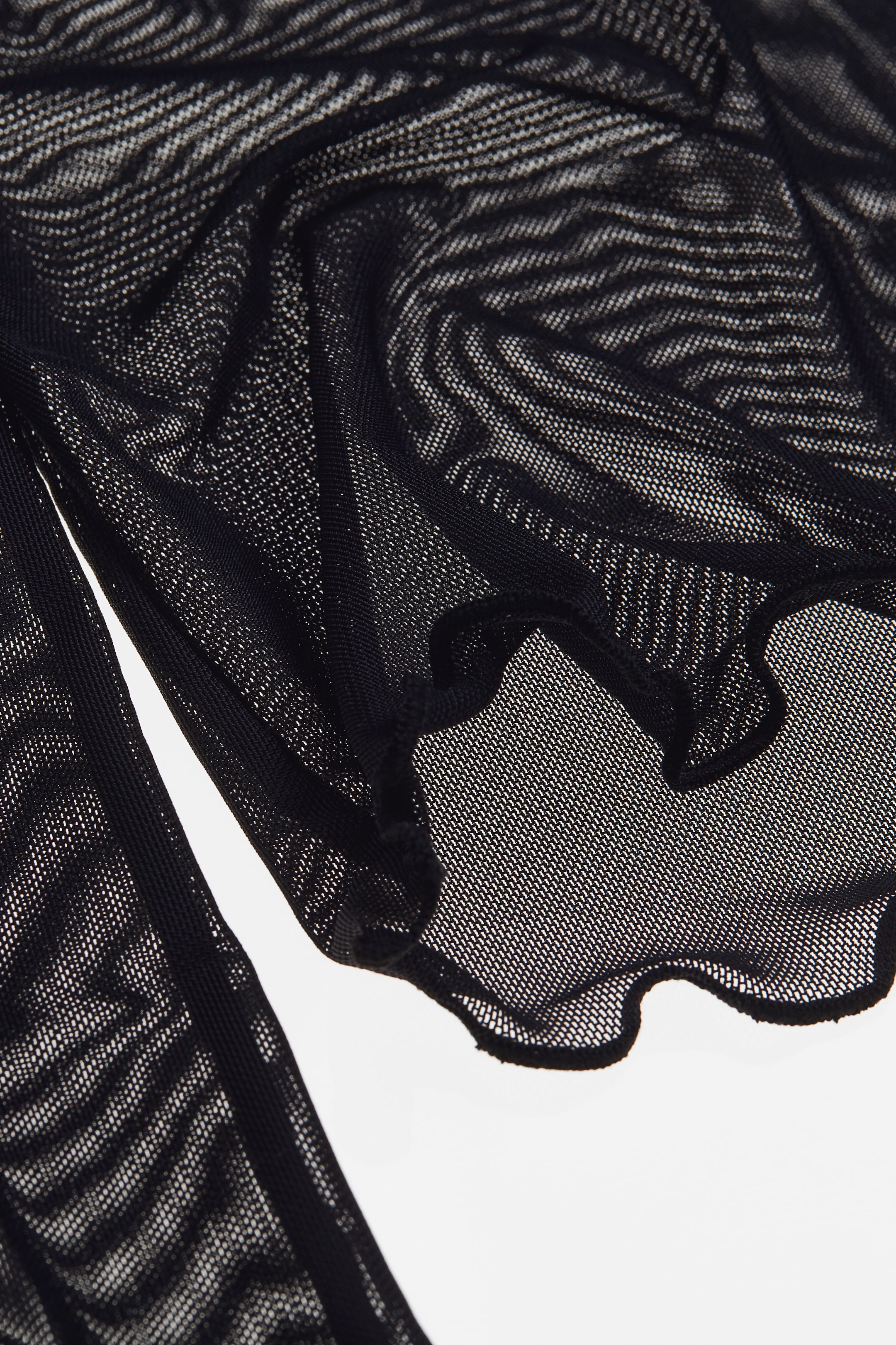 Short tunic in mesh with a deep neckline and an open front with narrow ties. Loose fit with dropped shoulders, long, wide sleeves and overlocked edges at the cuffs and hem. Unlined.