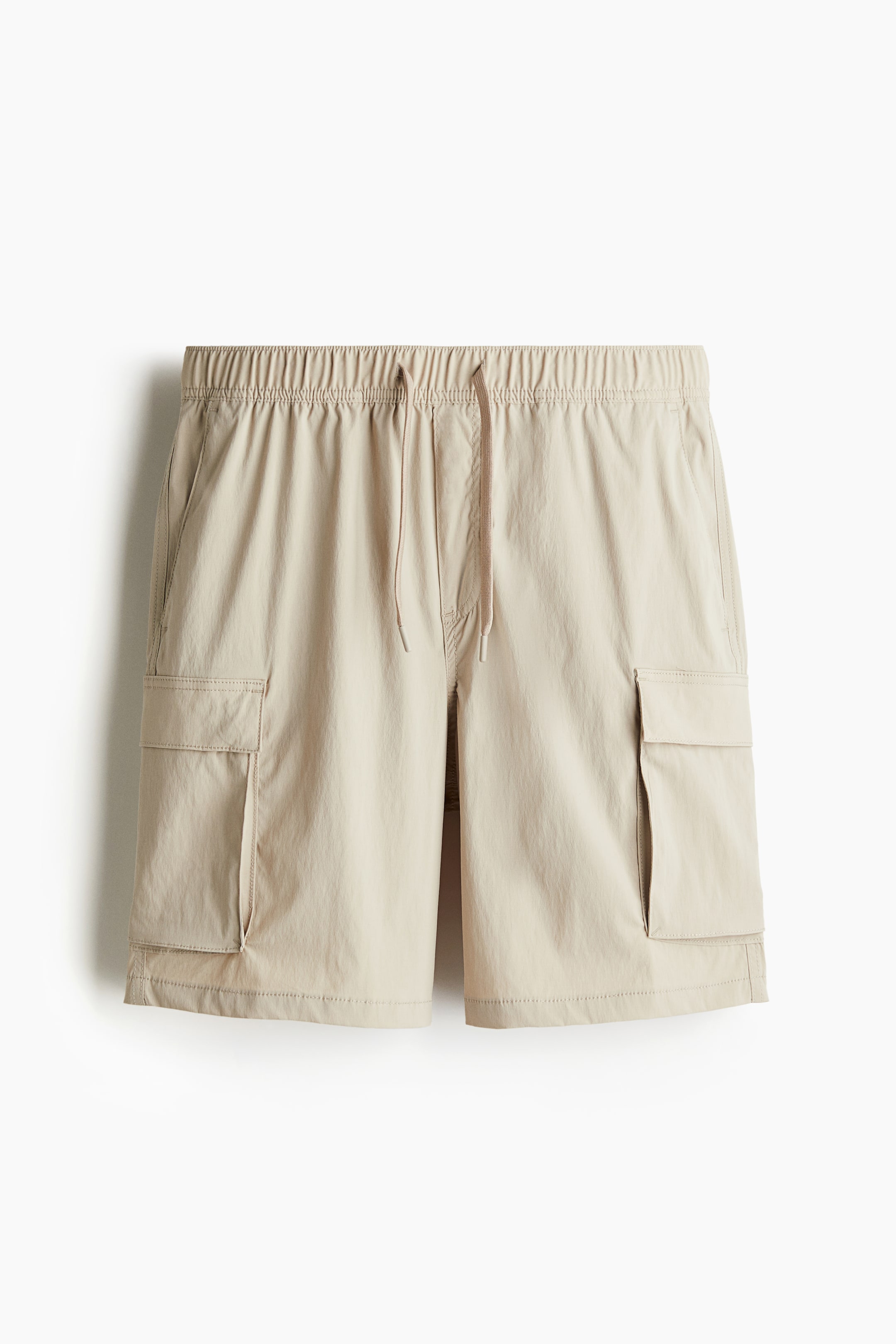 Regular-fit cargo shorts in woven fabric. Drawstring and covered elastic at waistband and a mock fly. Side pockets, back pockets with flap and concealed snap fastener, and leg pockets with concealed snap fastener.