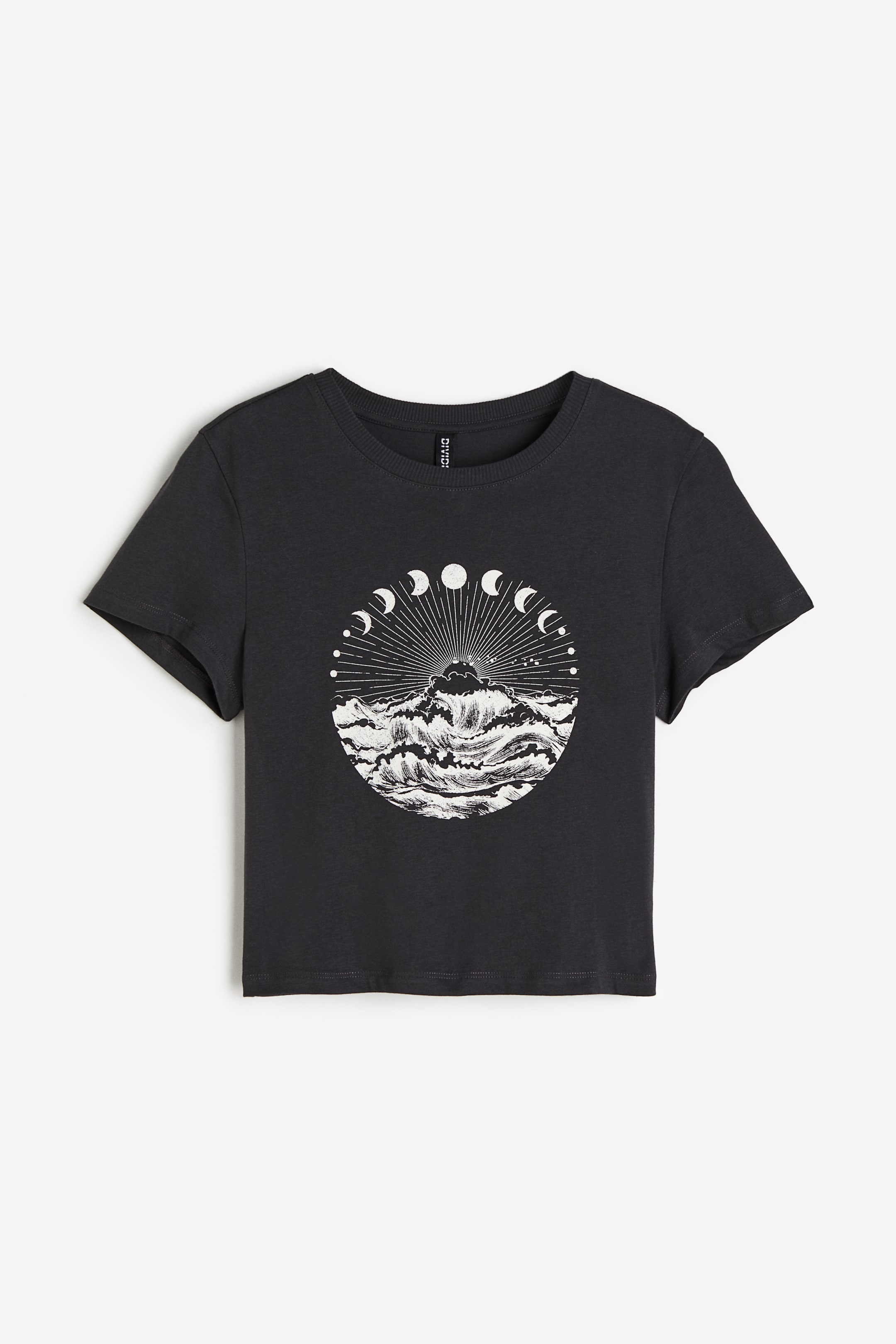 Cropped, fitted top in soft cotton jersey with a print motif on the front. Round, rib-trimmed neckline, short sleeves and a straight-cut hem.