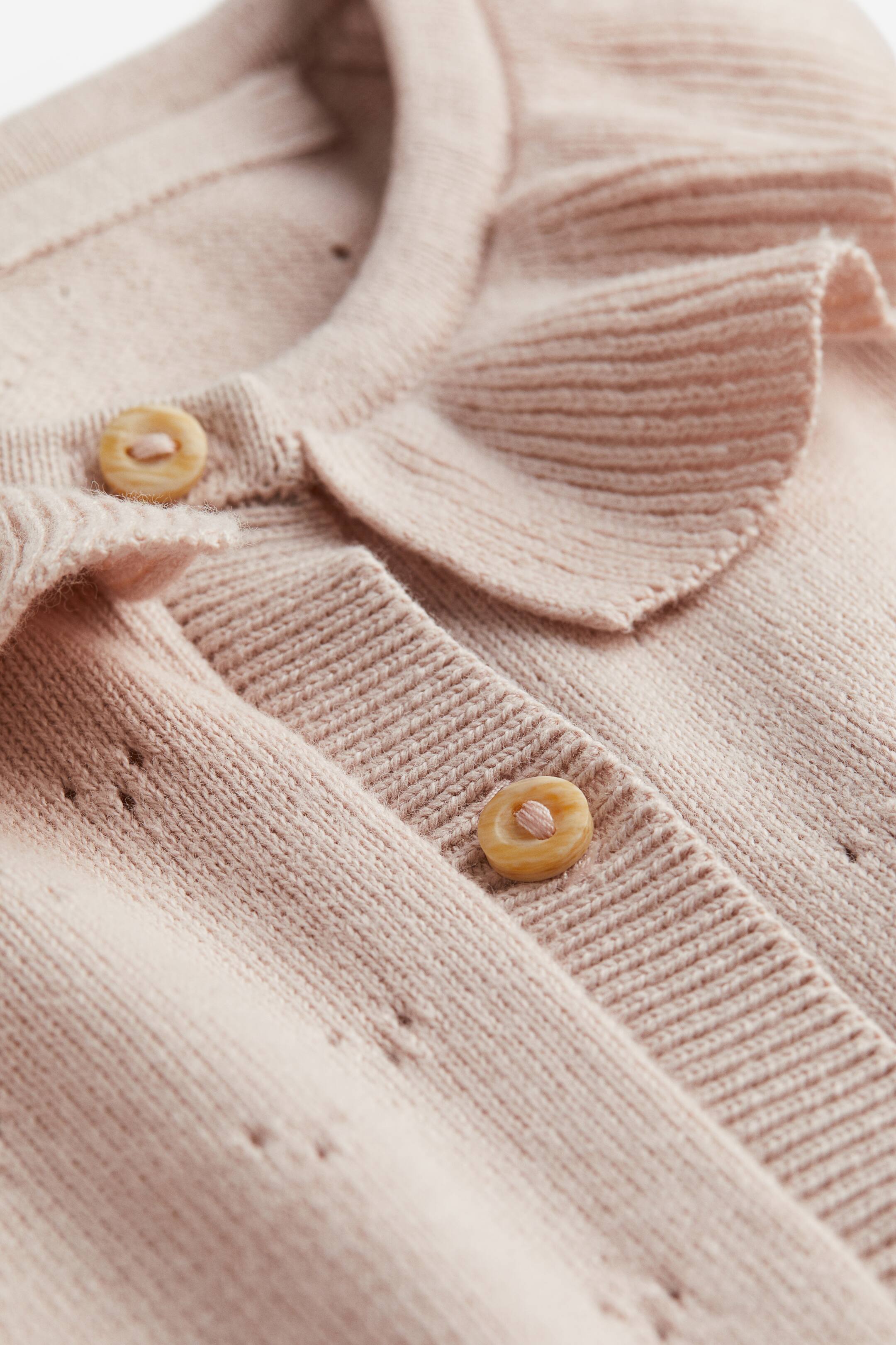 All-in-one suit in soft, fine knit cotton with long sleeves and long legs. Buttons down the front and ribbing around the neckline, cuffs and hems.
