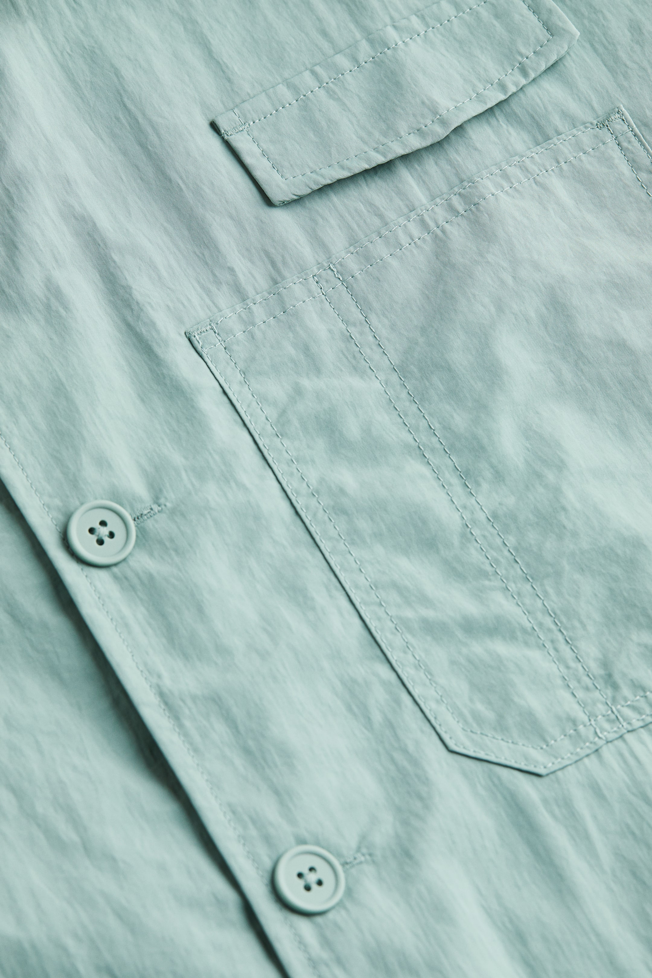 Overshirt in nylon with a collar and buttons down the front. Loose fit with long sleeves and buttoned cuffs. Open pocket and a decorative flap on the chest, and a large patch pocket at the side with a concealed press-stud. Rounded hem.