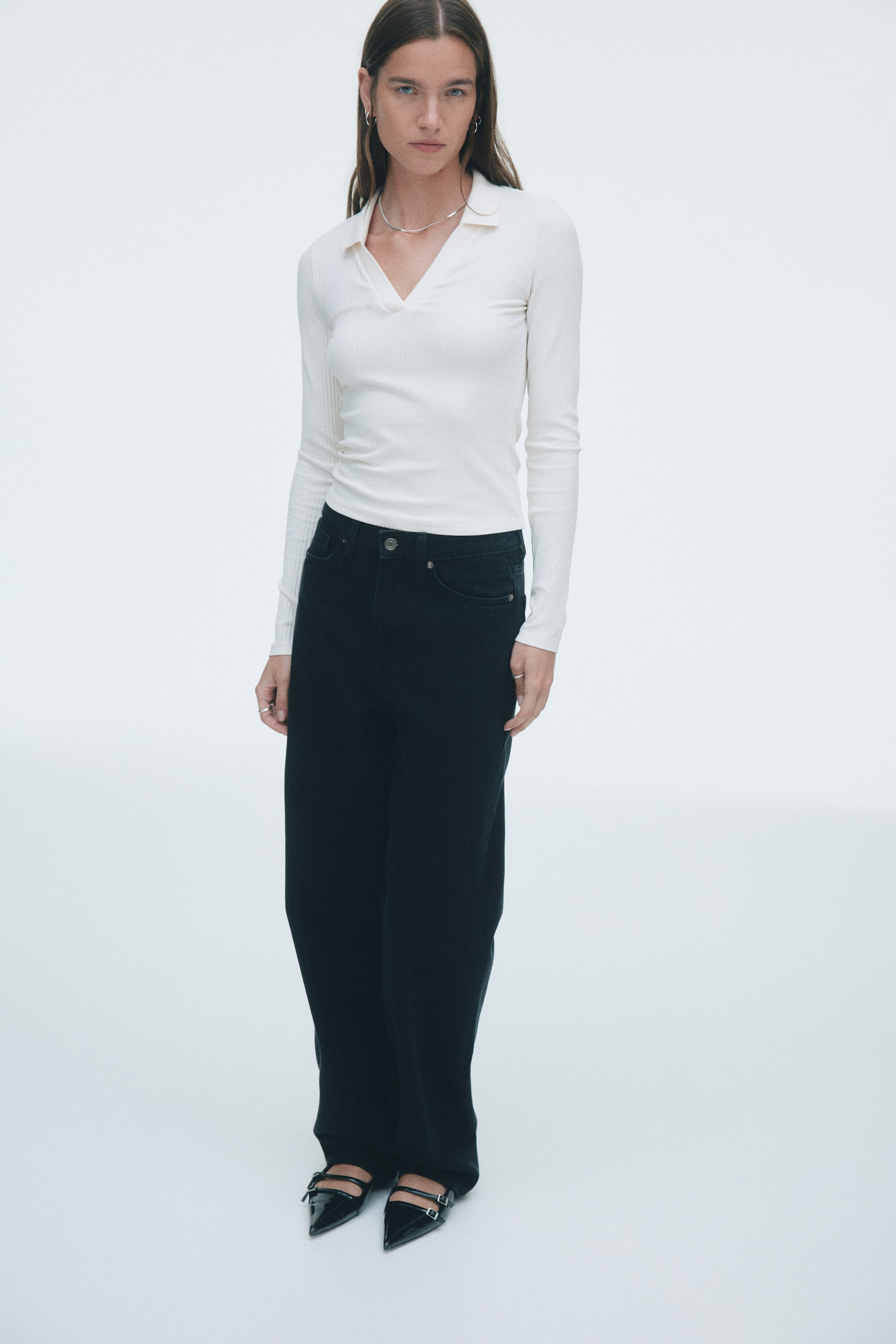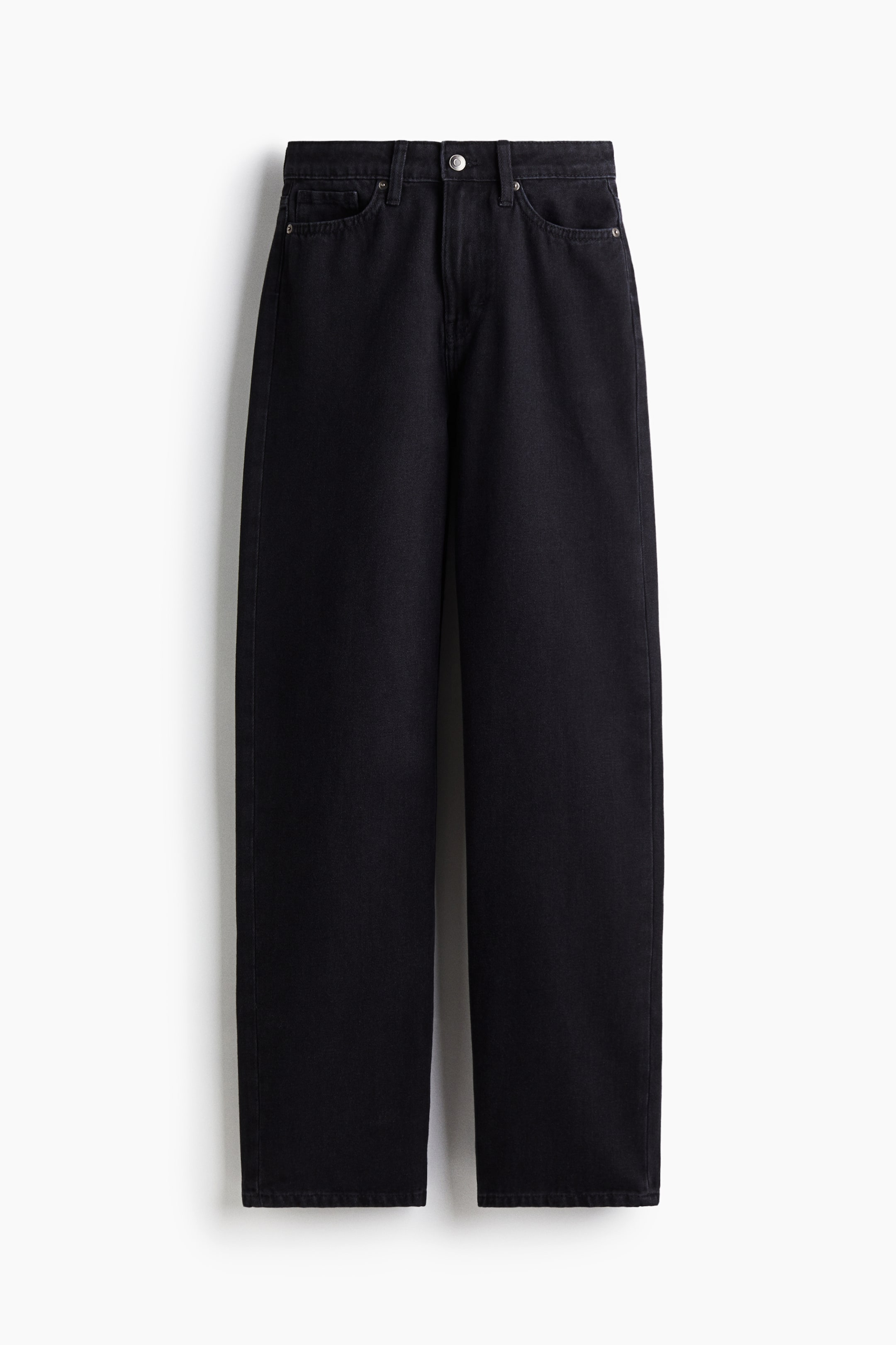 5-pocket jeans in rigid denim that feels firm at first but then softens and loosens with wear. Straight leg with a regular fit from the waist to the hip and a looser, straight cut from the thigh to the hem. High waist with a zip fly and button. Longer length, designed to fall over the foot with a stacking effect. This classic shape complements everything from hoodies to blazers.