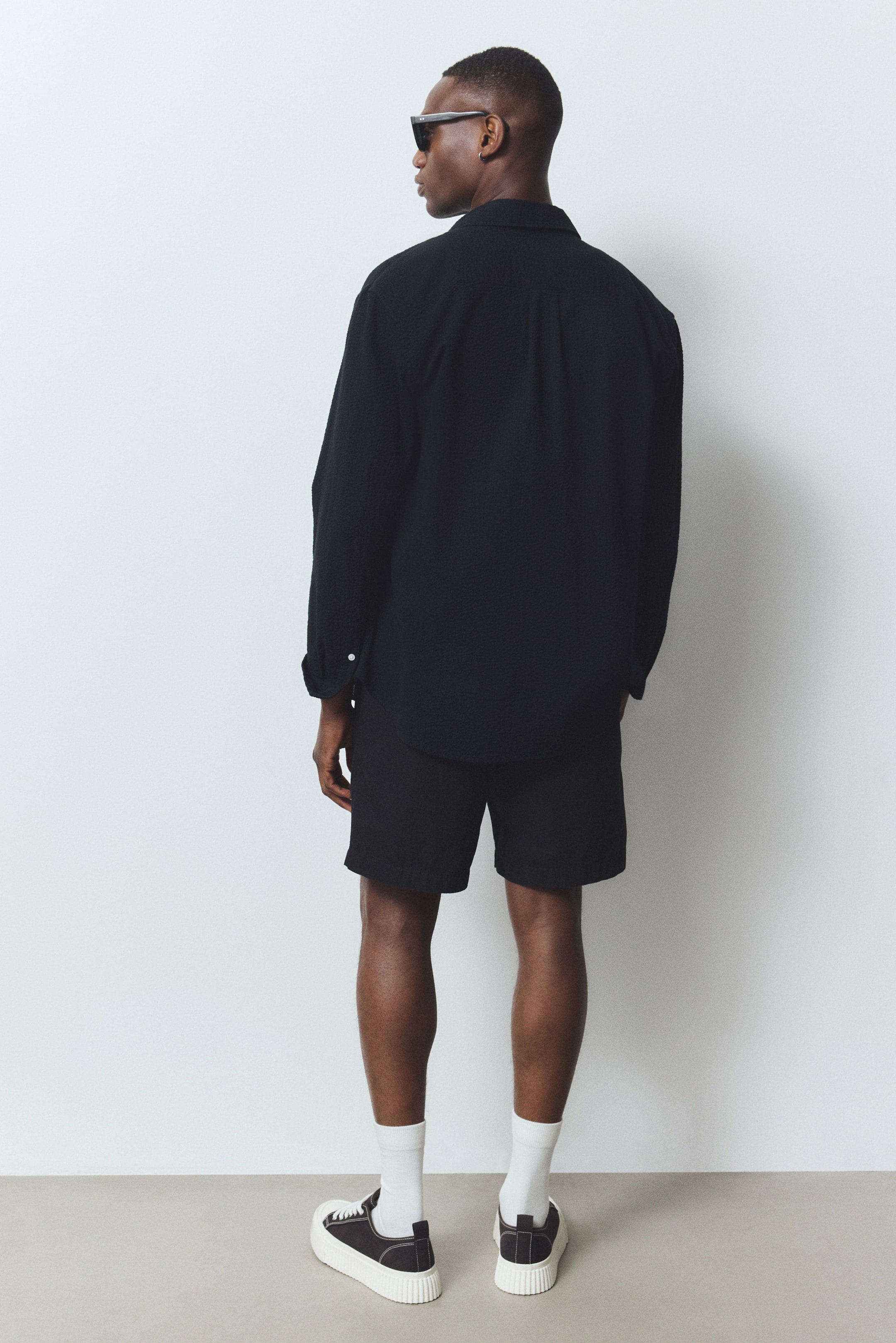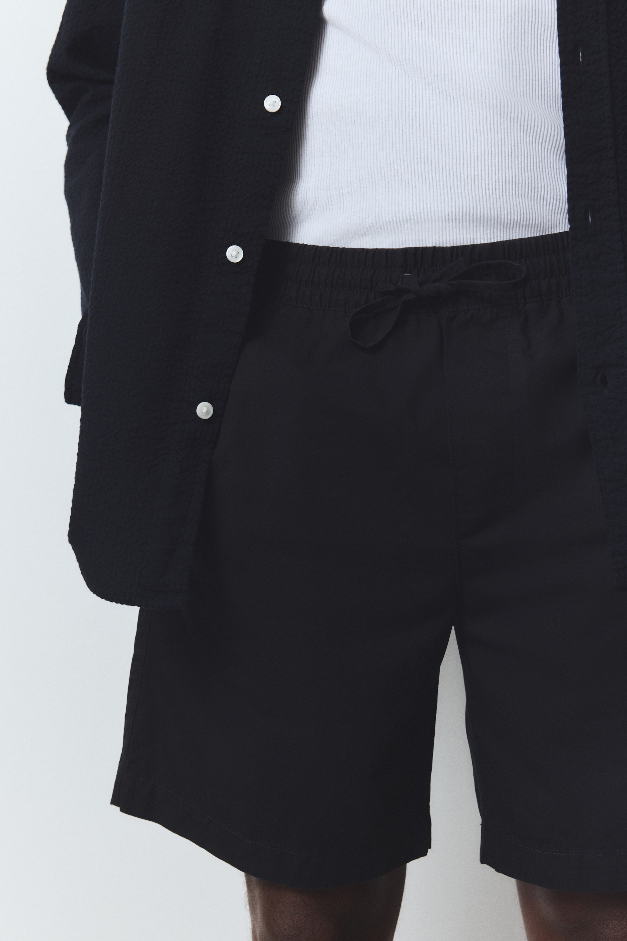 Shorts in cotton canvas with an elasticated, drawstring waist, a fake fly, side pockets and a welt back pocket. Regular fit for comfortable wear and a classic silhouette.