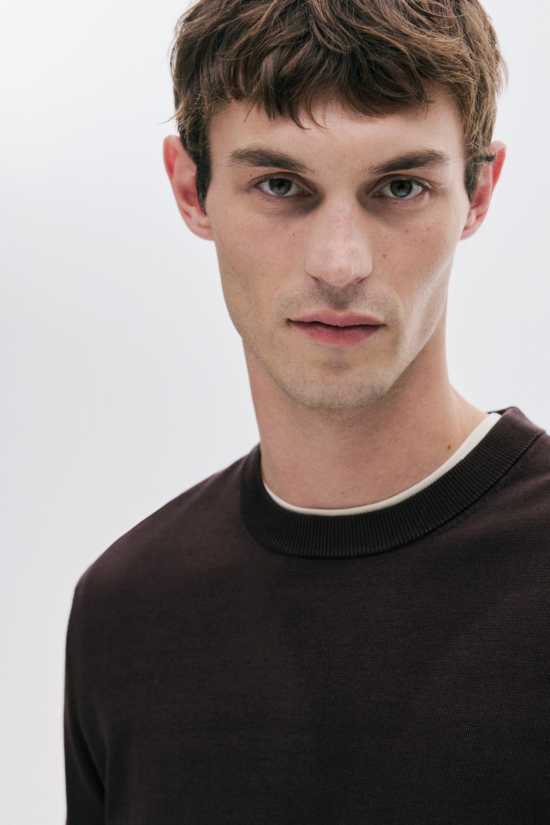 Jumper in a fine knit with a round, rib-trimmed neckline, long sleeves and ribbing at the cuffs and hem. Regular fit for comfortable wear and a classic silhouette.