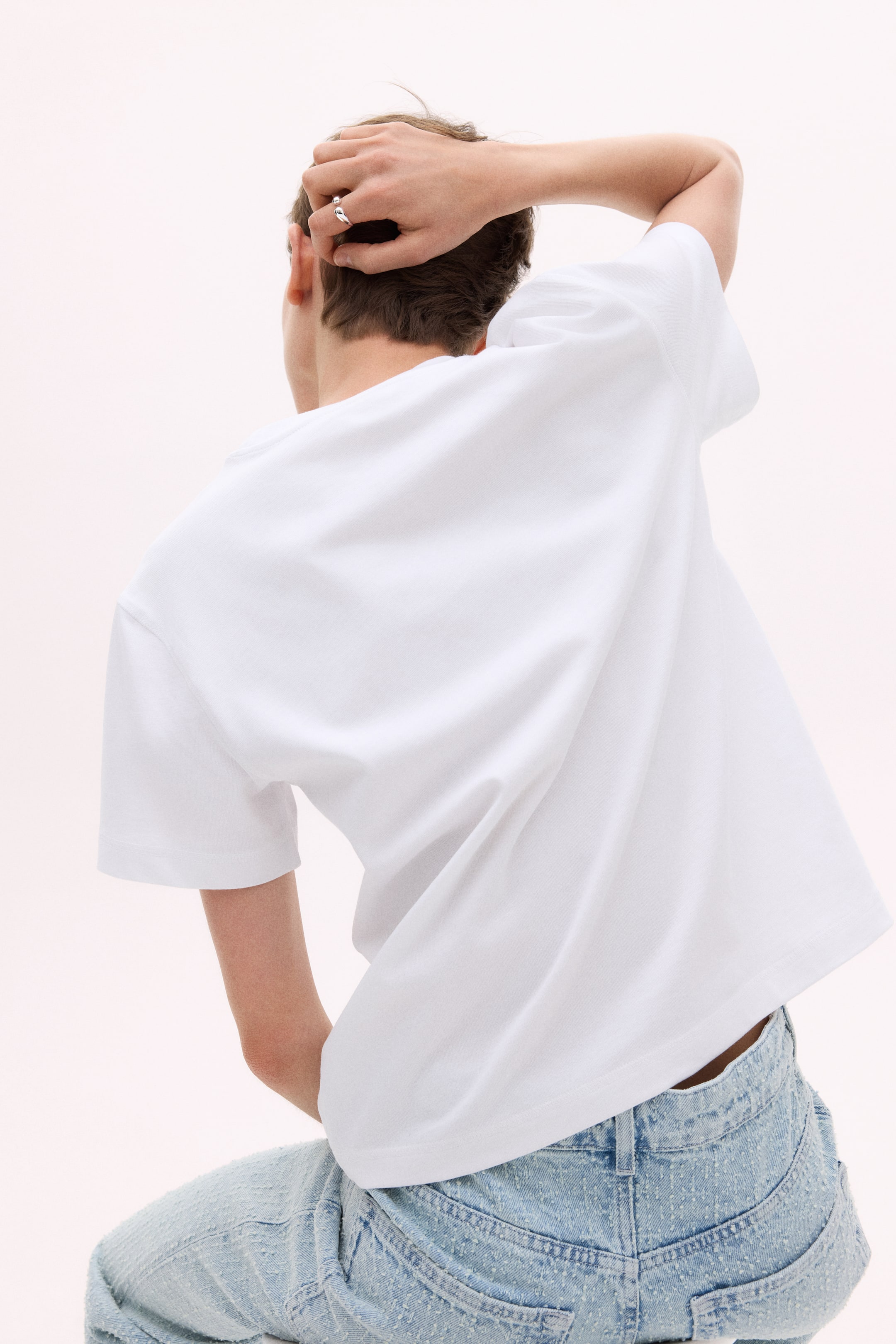 Oversized T-shirt in soft cotton jersey with a ribbed crew neck and gently dropped shoulders.
