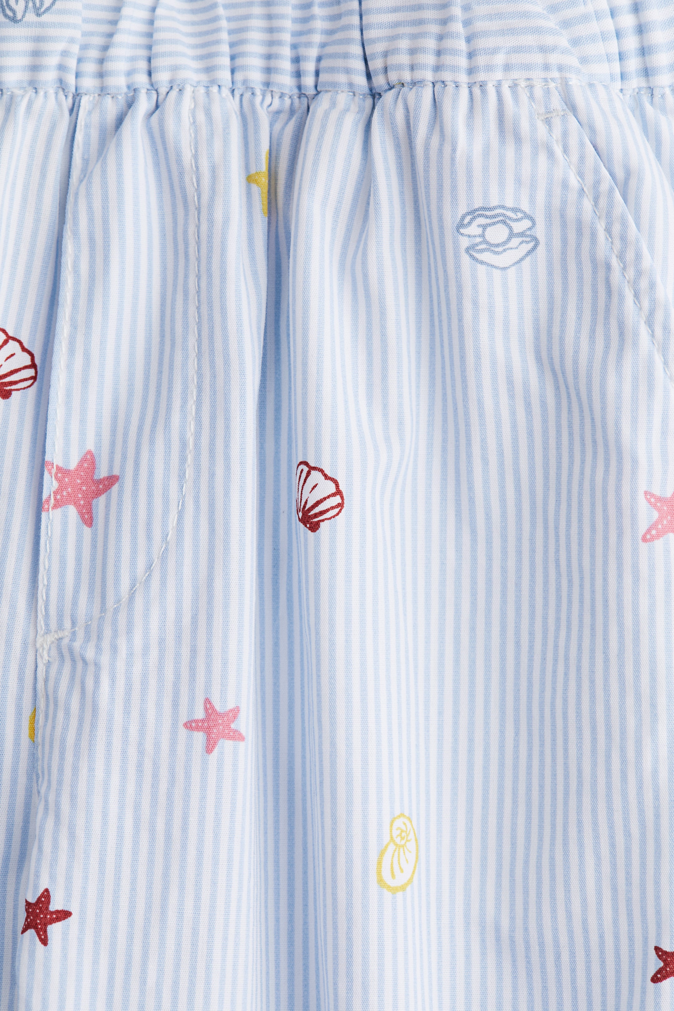 Joggers in a soft weave with covered elastication at the waist, a fake fly, diagonal front pockets and elasticated, frill-trimmed hems.