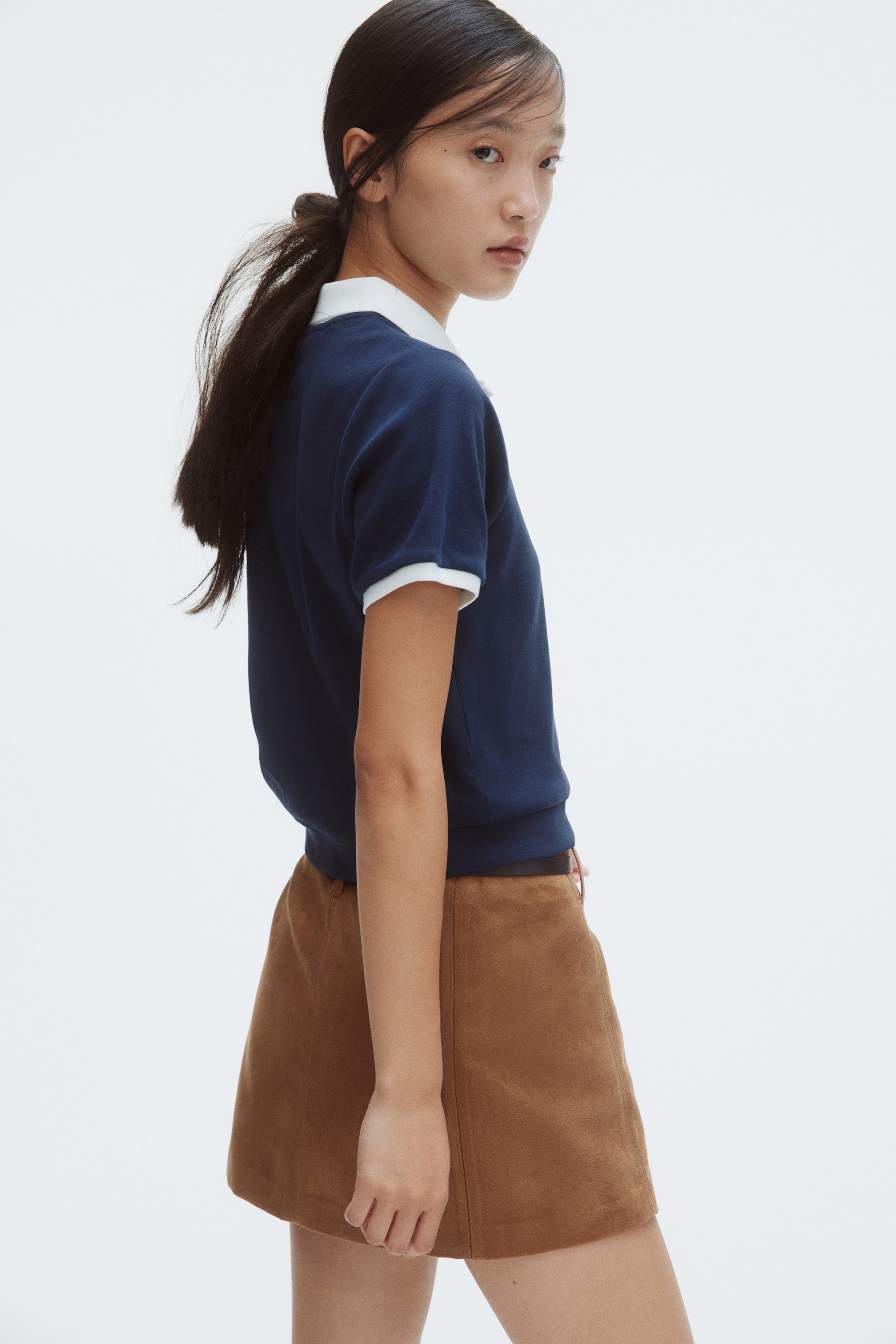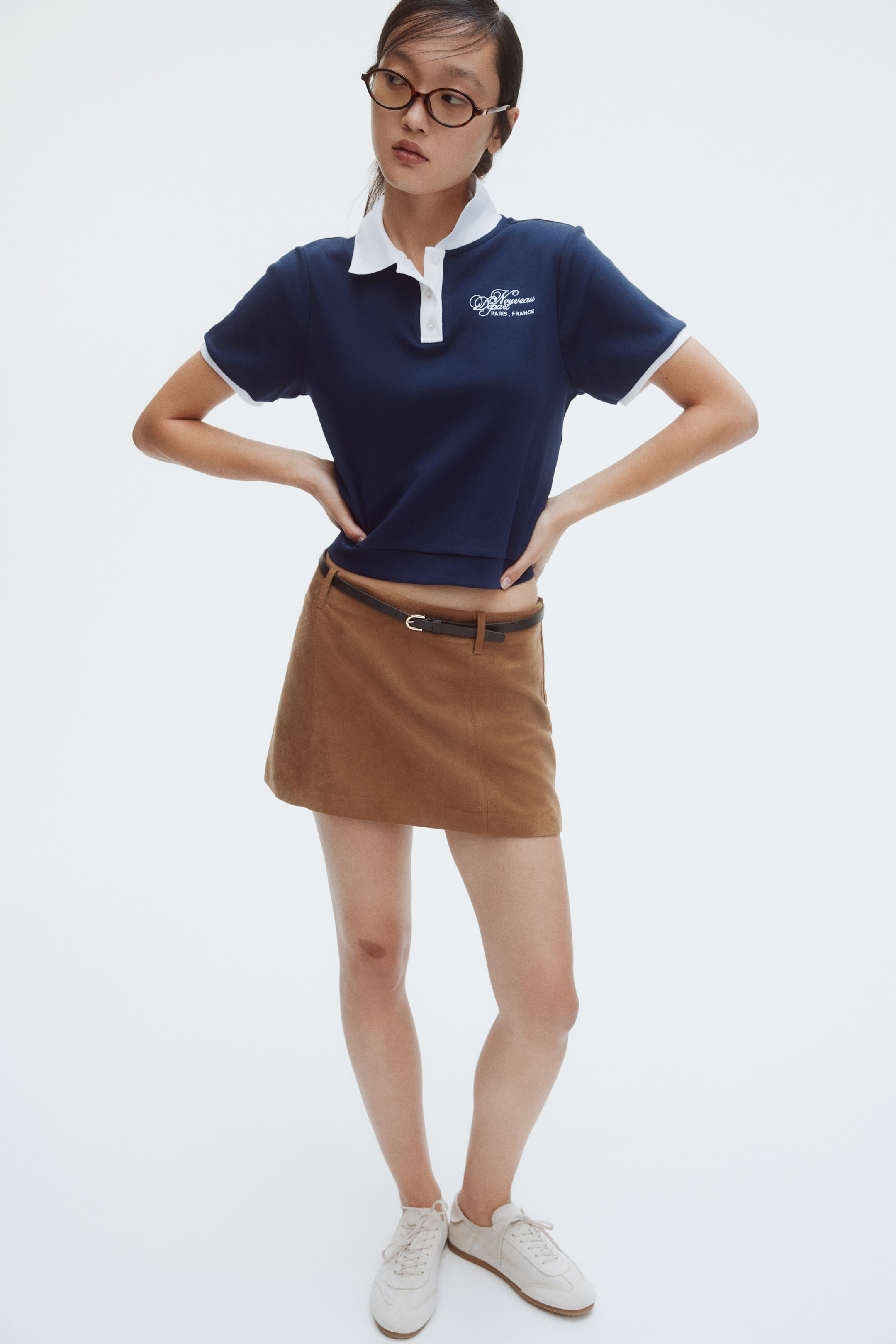 Short, fitted polo shirt in cotton jersey with a small embroidered motif on the chest. Collar, button placket and short sleeves.