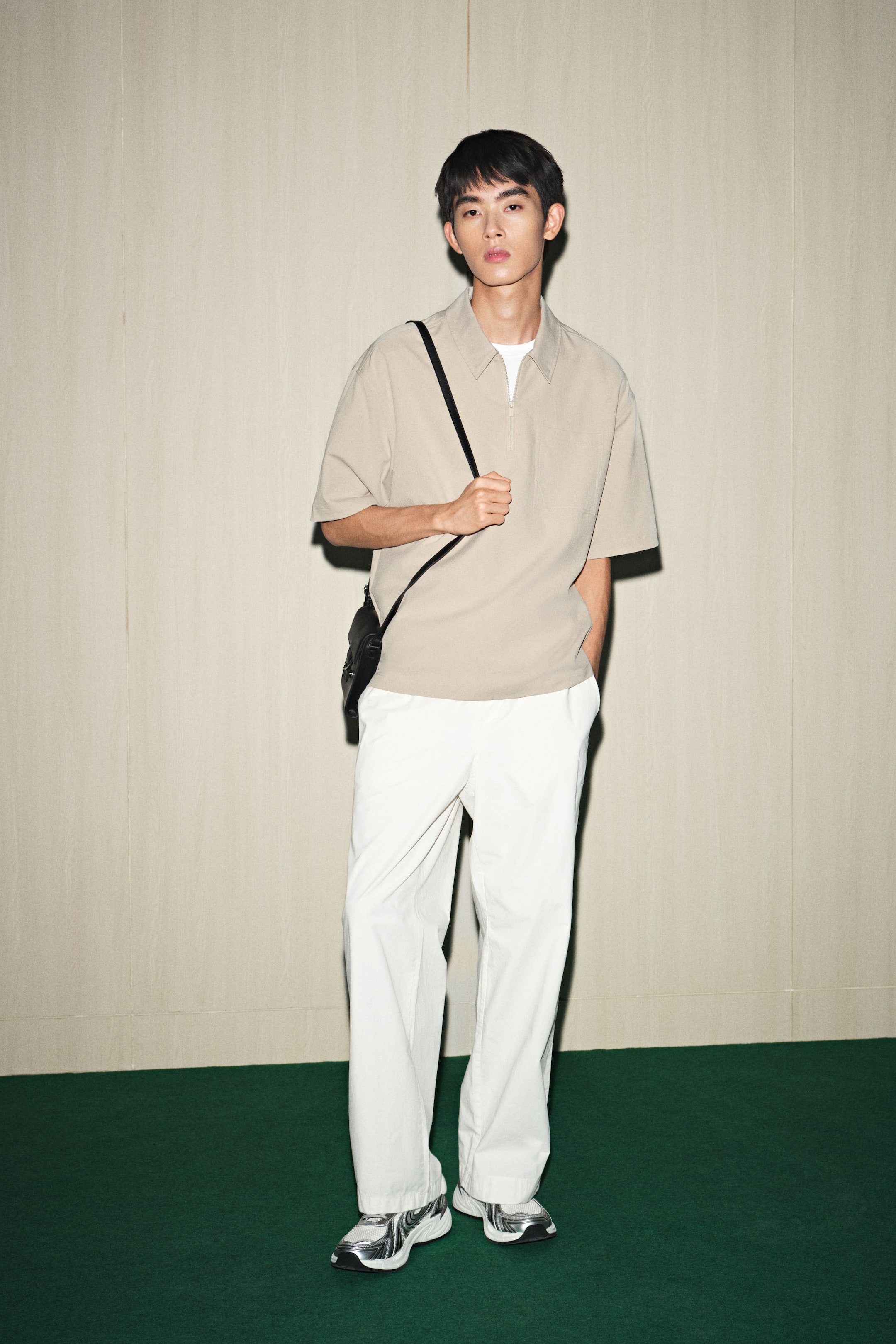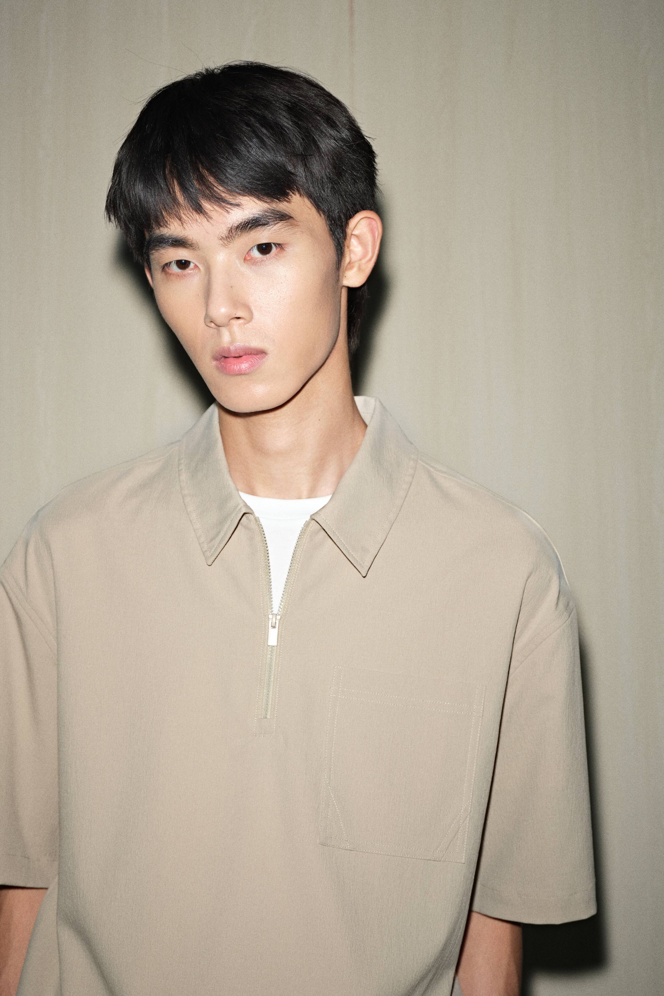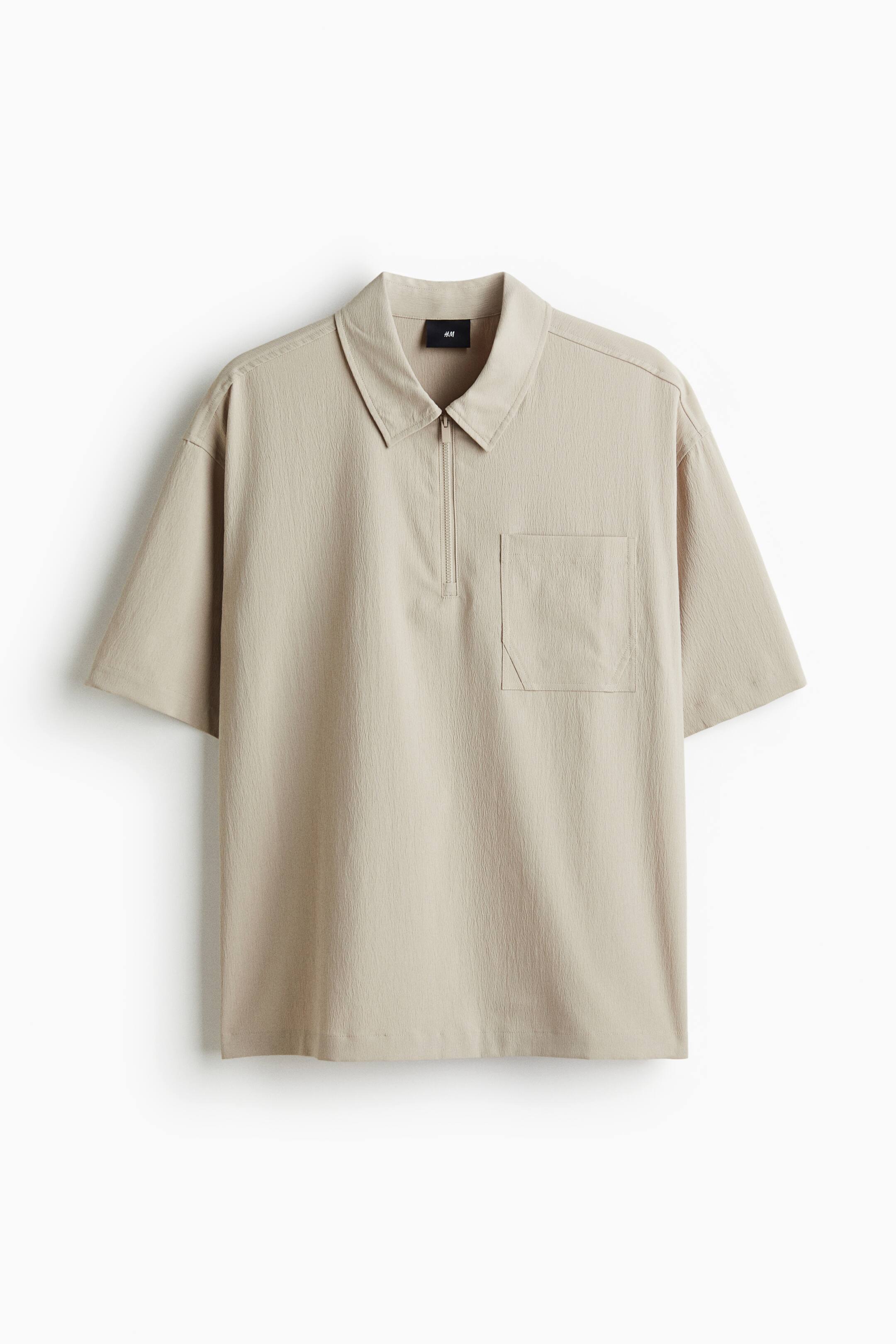 Polo shirt in a crinkled weave with a collar, zip at the top and short sleeves. Open chest pocket and a straight-cut hem with a slit at each side. Loose fit for a generous but not oversized silhouette.