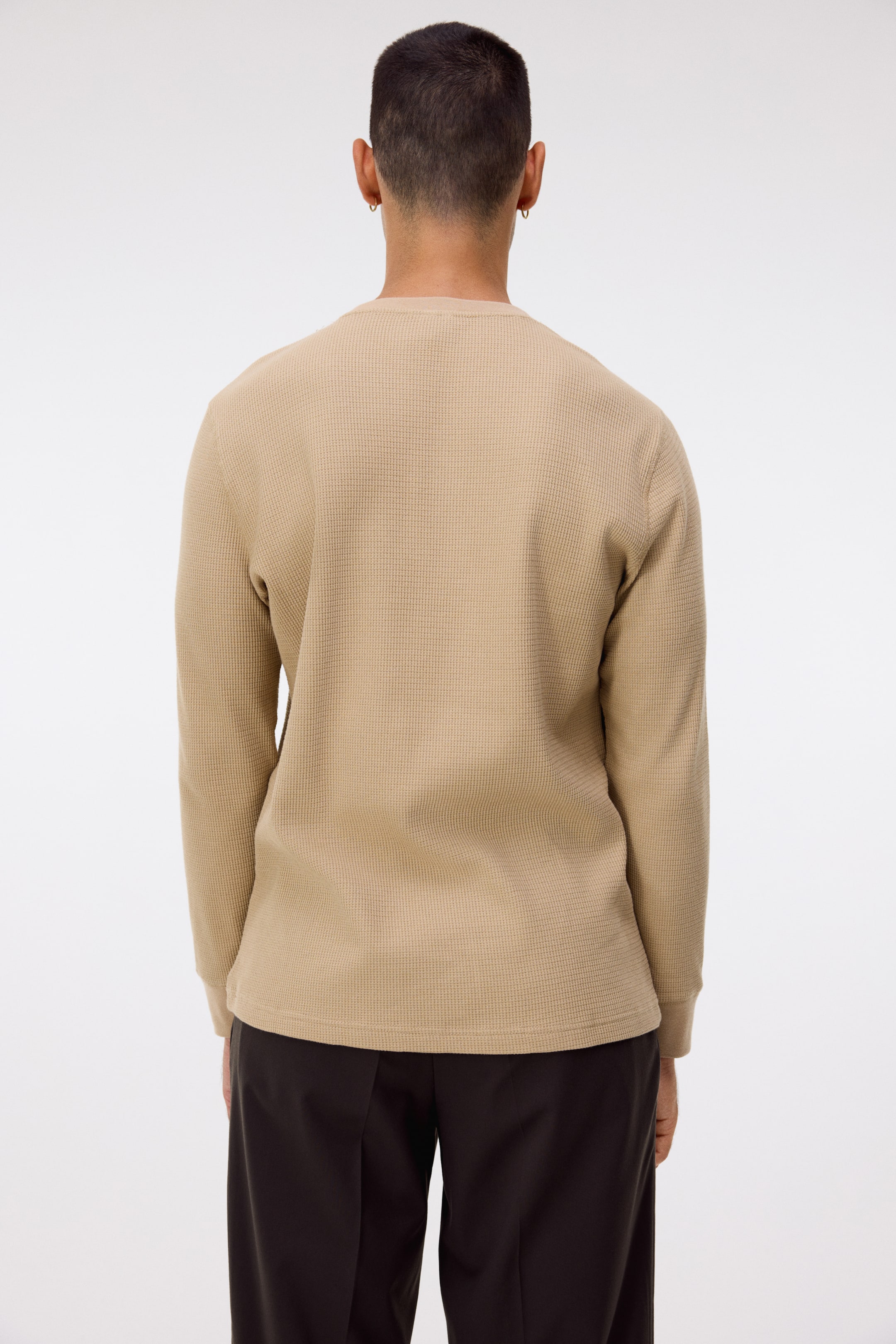 Slim-fit shirt in waffled, medium weight, cotton-blend jersey that hugs contours of the body for a fitted silhouette. Crew neck, long sleeves, a straight-cut hem, and ribbing at neck and cuffs.