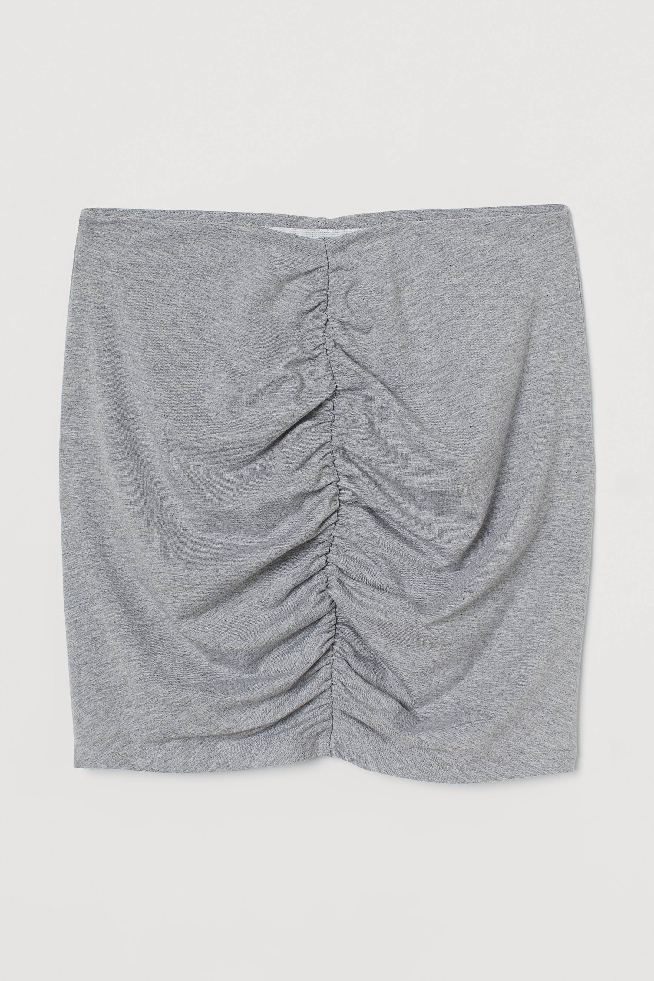Short, draped skirt in soft jersey with a gathered vertical seam at front and back. High waist and concealed, elasticized waistband.