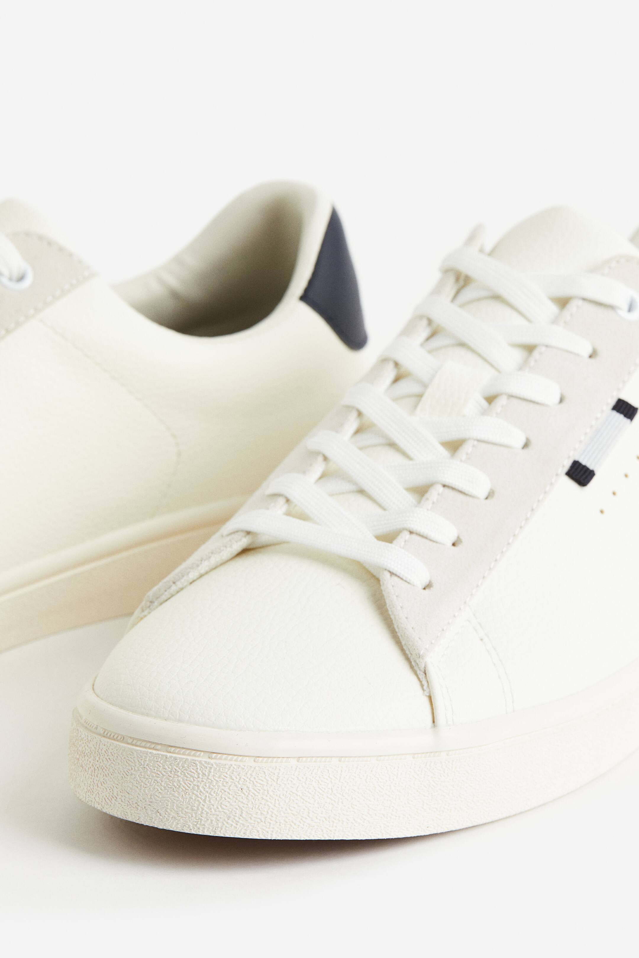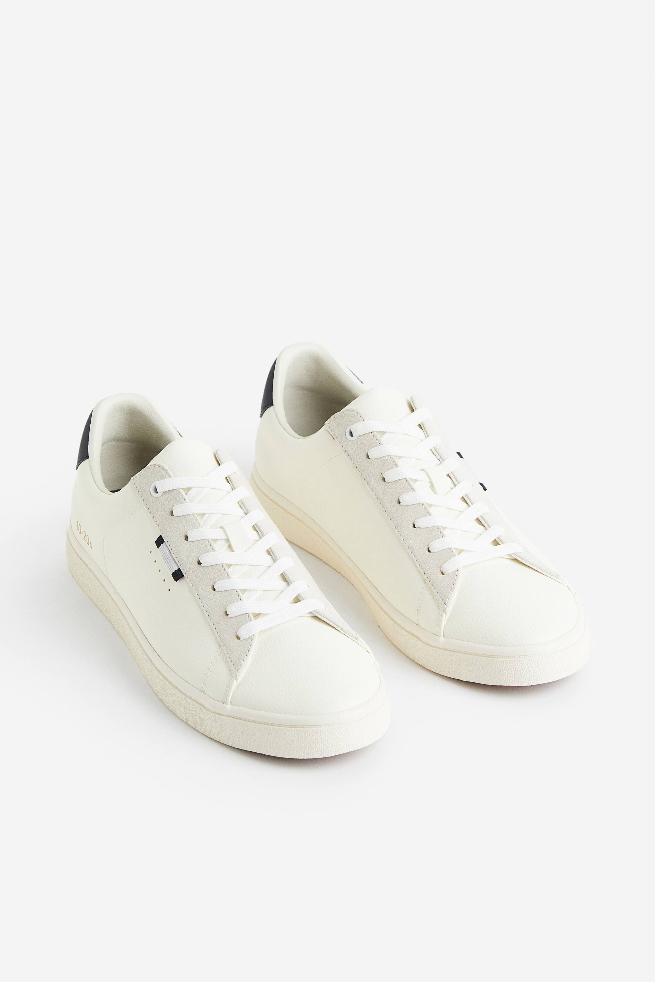 Sneakers in coated fabric. Padded upper edge and tongue, lacing at front, and contrasting heel caps. Piqué lining, piqué insoles, and patterned rubber soles.