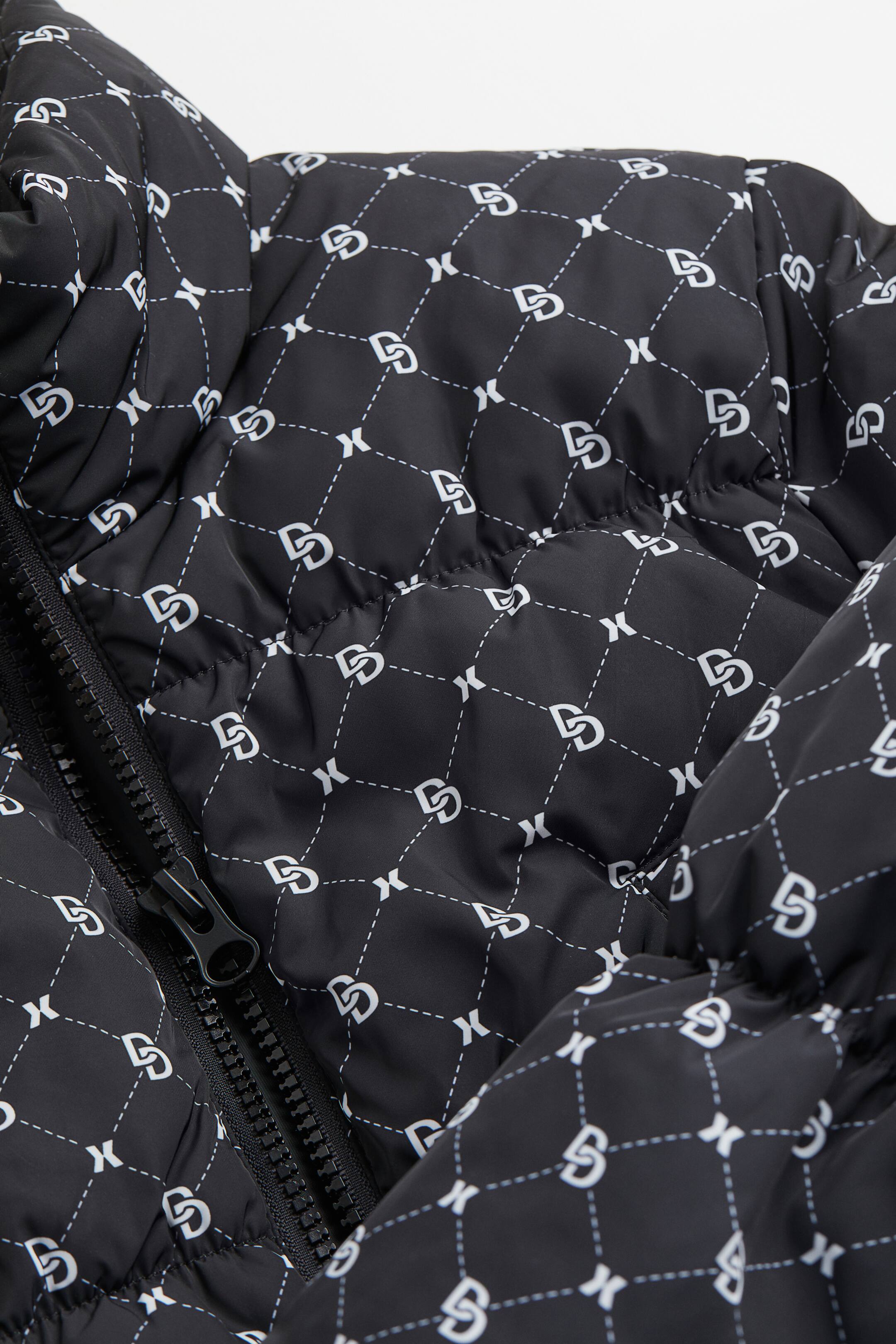 Short, padded jacket in woven fabric with a slight sheen. Stand-up collar, zipper at front, welt front pockets, and long sleeves. Elasticized hem. Lined.