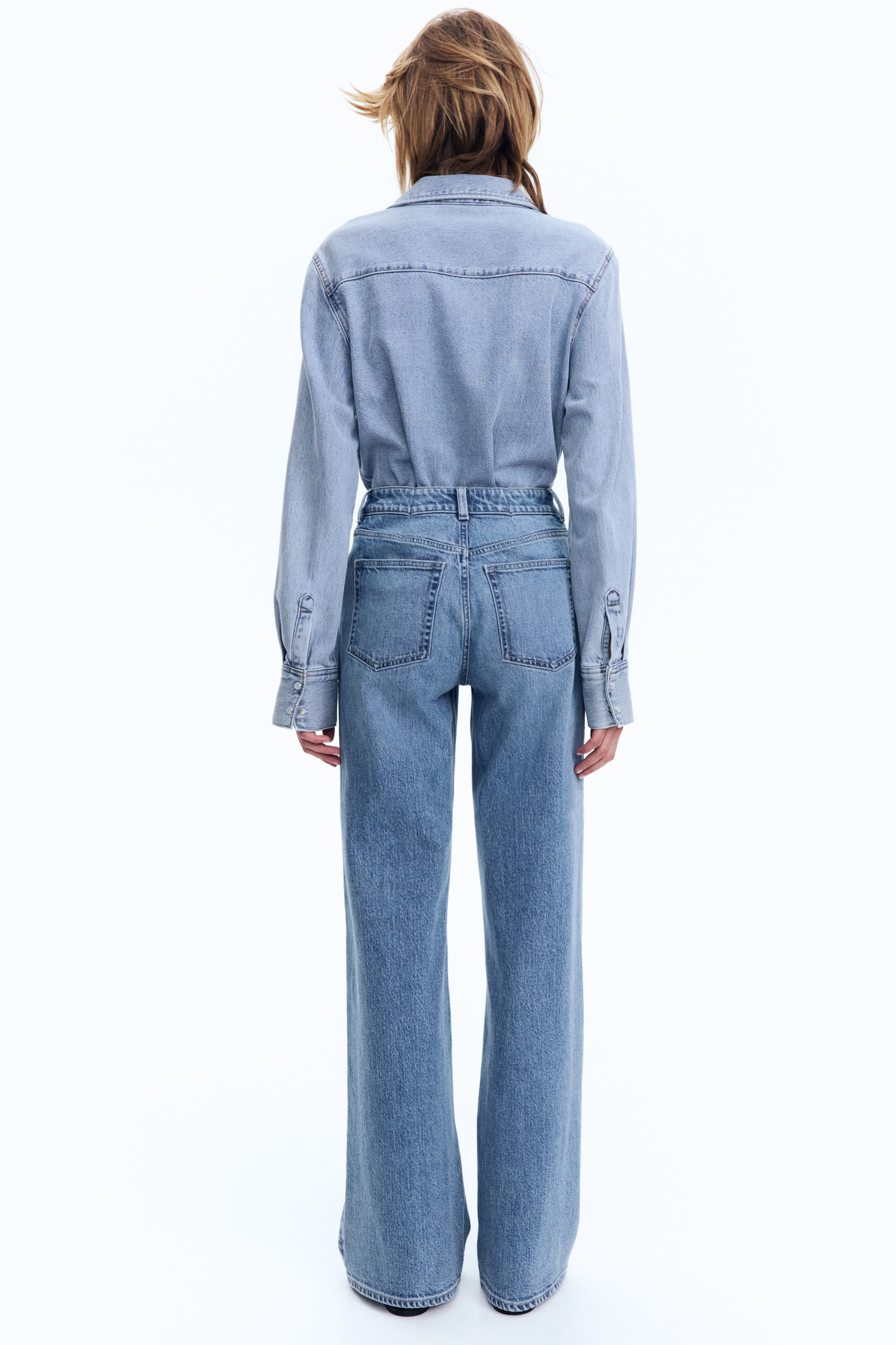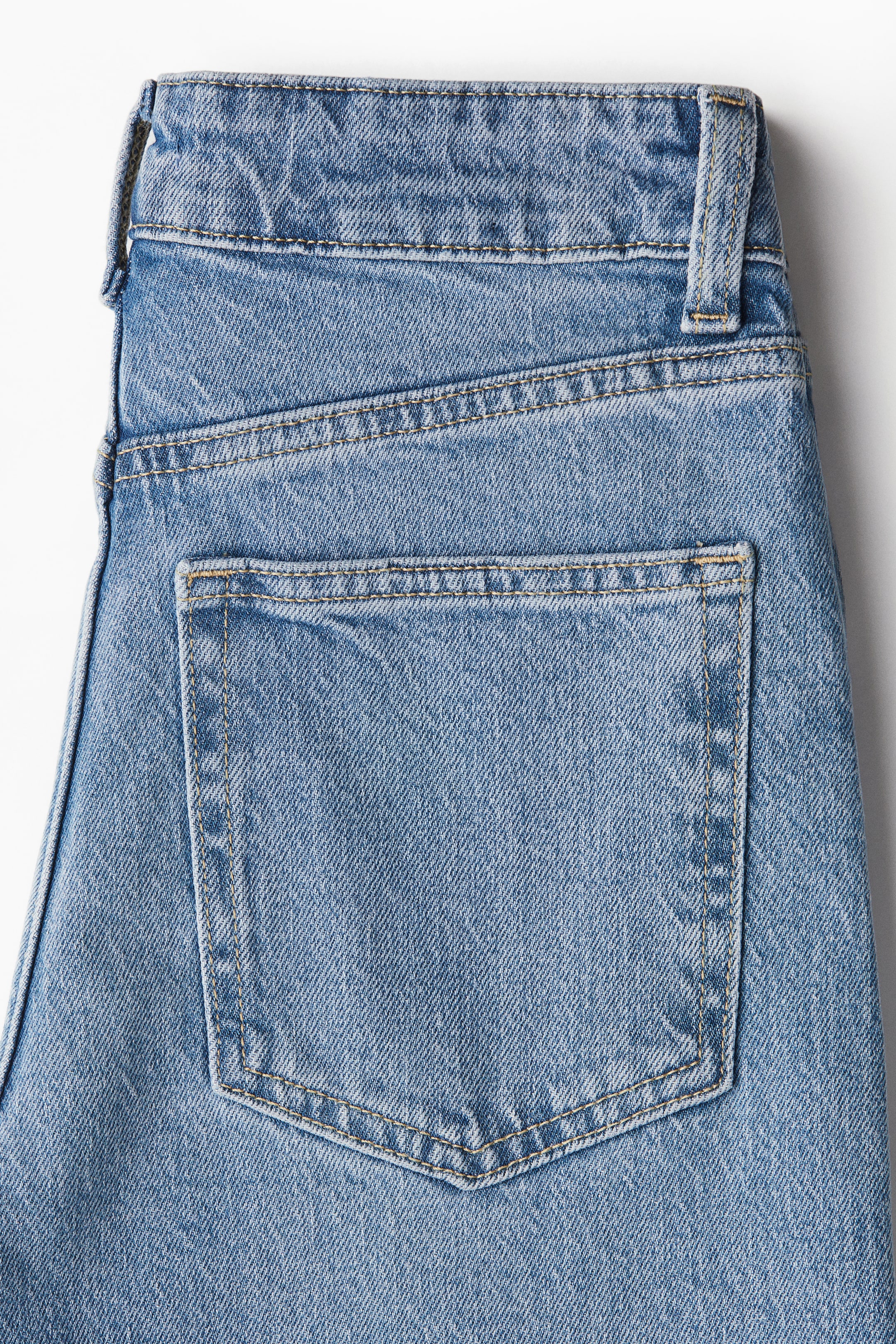5-pocket jeans in washed cotton denim. High waist, zip fly and button and straight, wide legs.