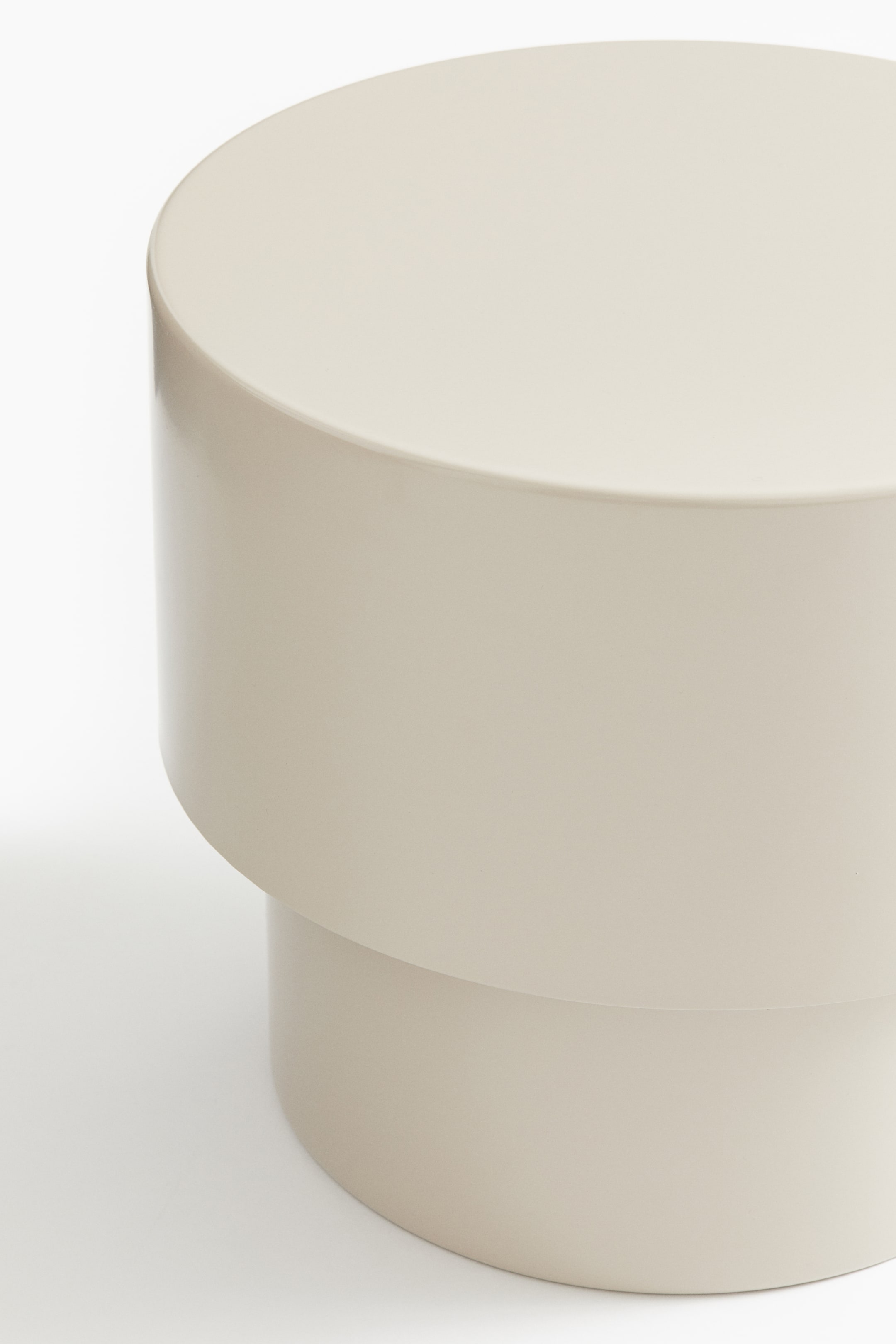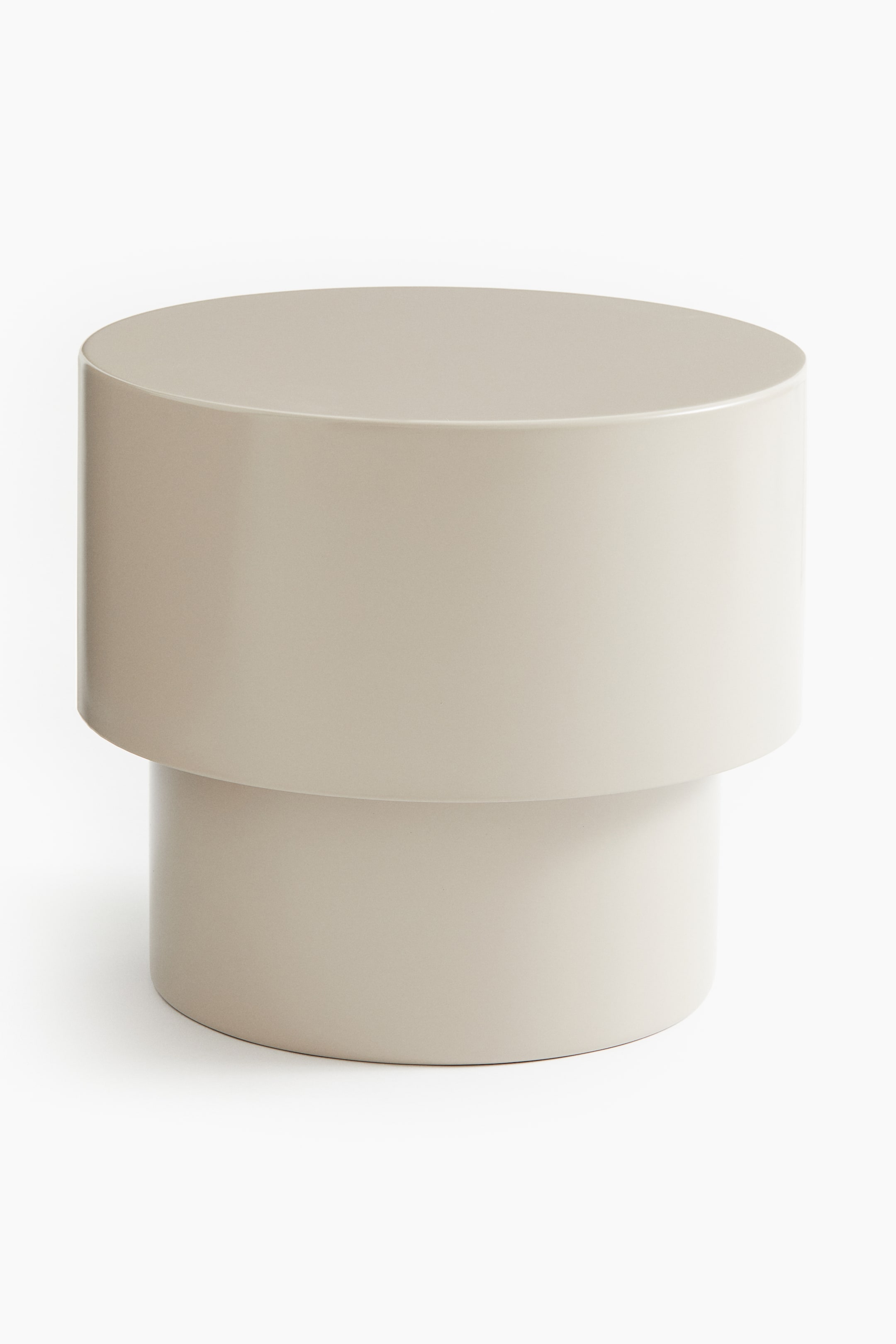 Side table in painted metal in a rounded shape. Suitable for indoor use. Height 15 3/4 in. Diameter at top 18 in. Supplied flat-packed, ready to assemble.