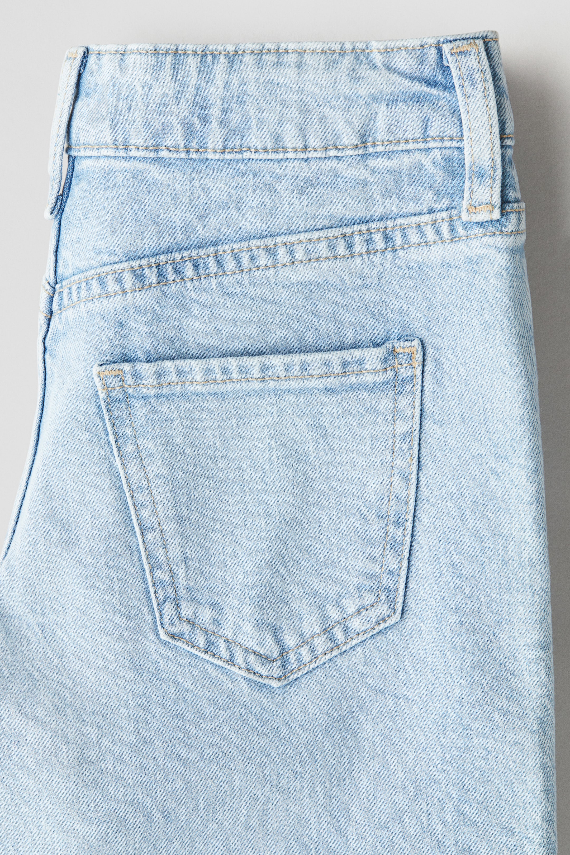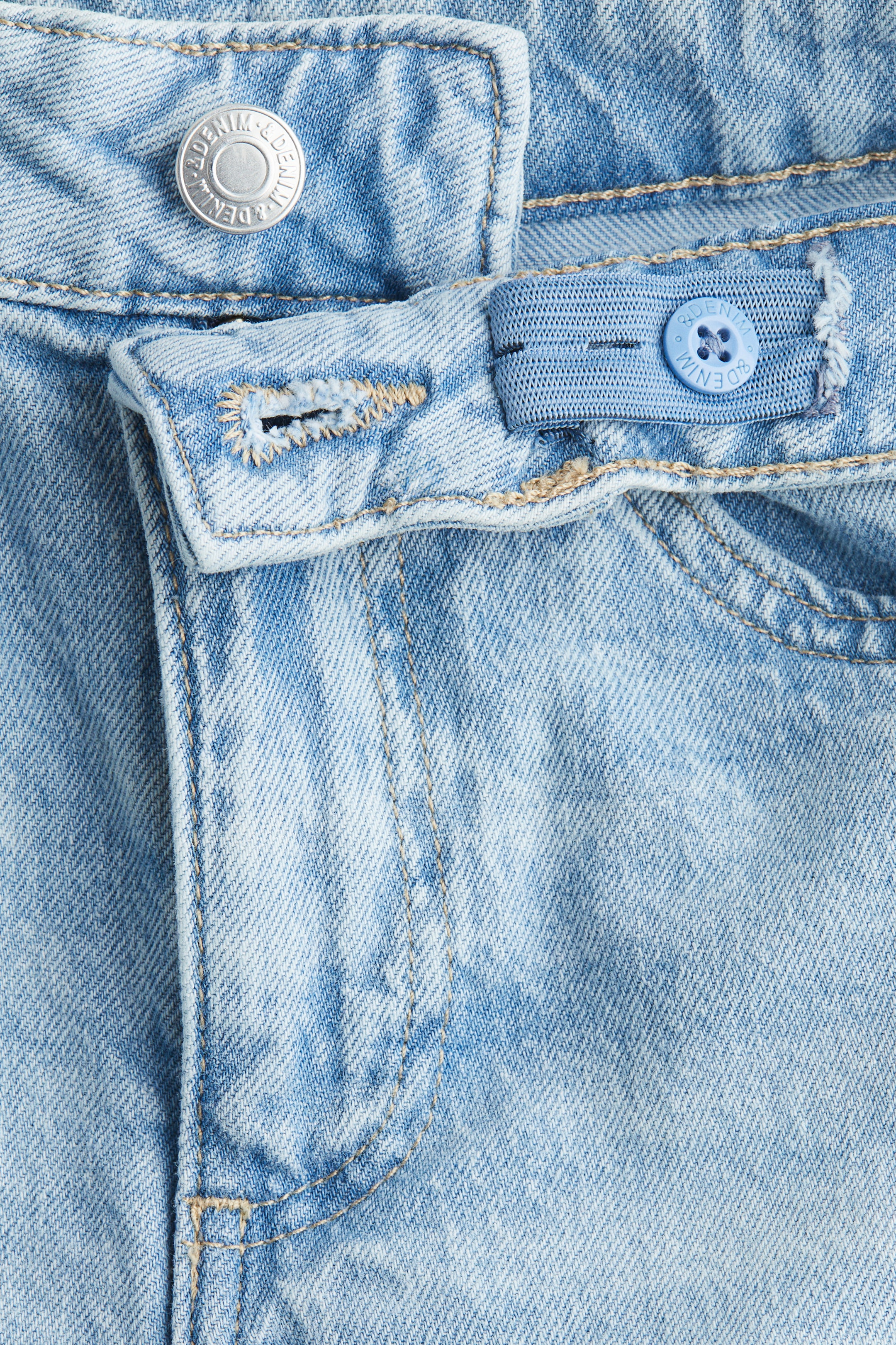 5-pocket jeans in washed cotton denim. High waist, adjustable, elasticized waistband, and zip fly with button. Wide legs.