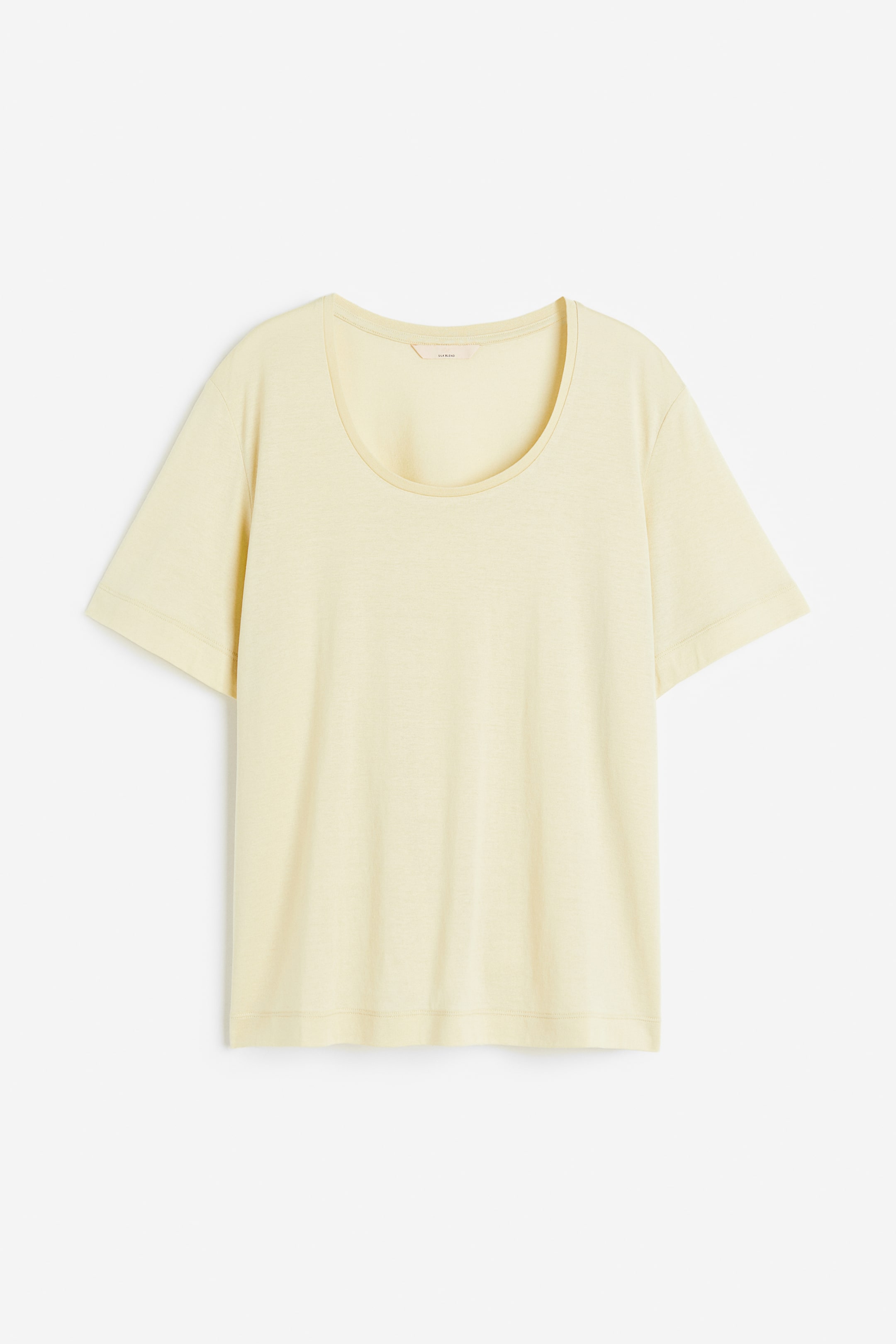 Loose-fit T-shirt in soft jersey made from a silk and cotton blend. Low-cut neckline and gently dropped shoulders.