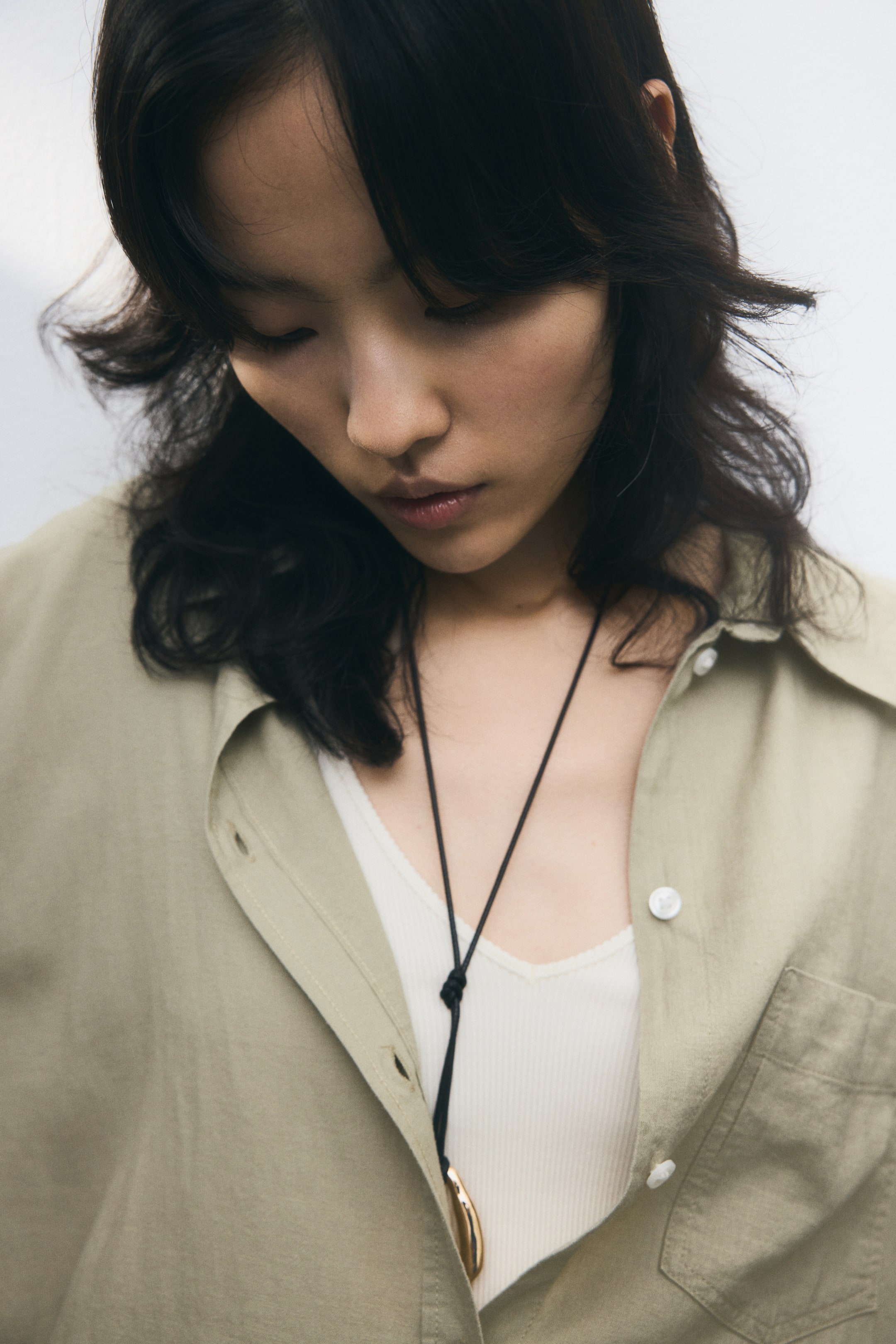 Shirt in an airy, woven linen and viscose blend. Collar, buttons at front, an open chest pocket, and a double-layered yoke at back with box pleat. Long sleeves with button at cuffs. Rounded hem.