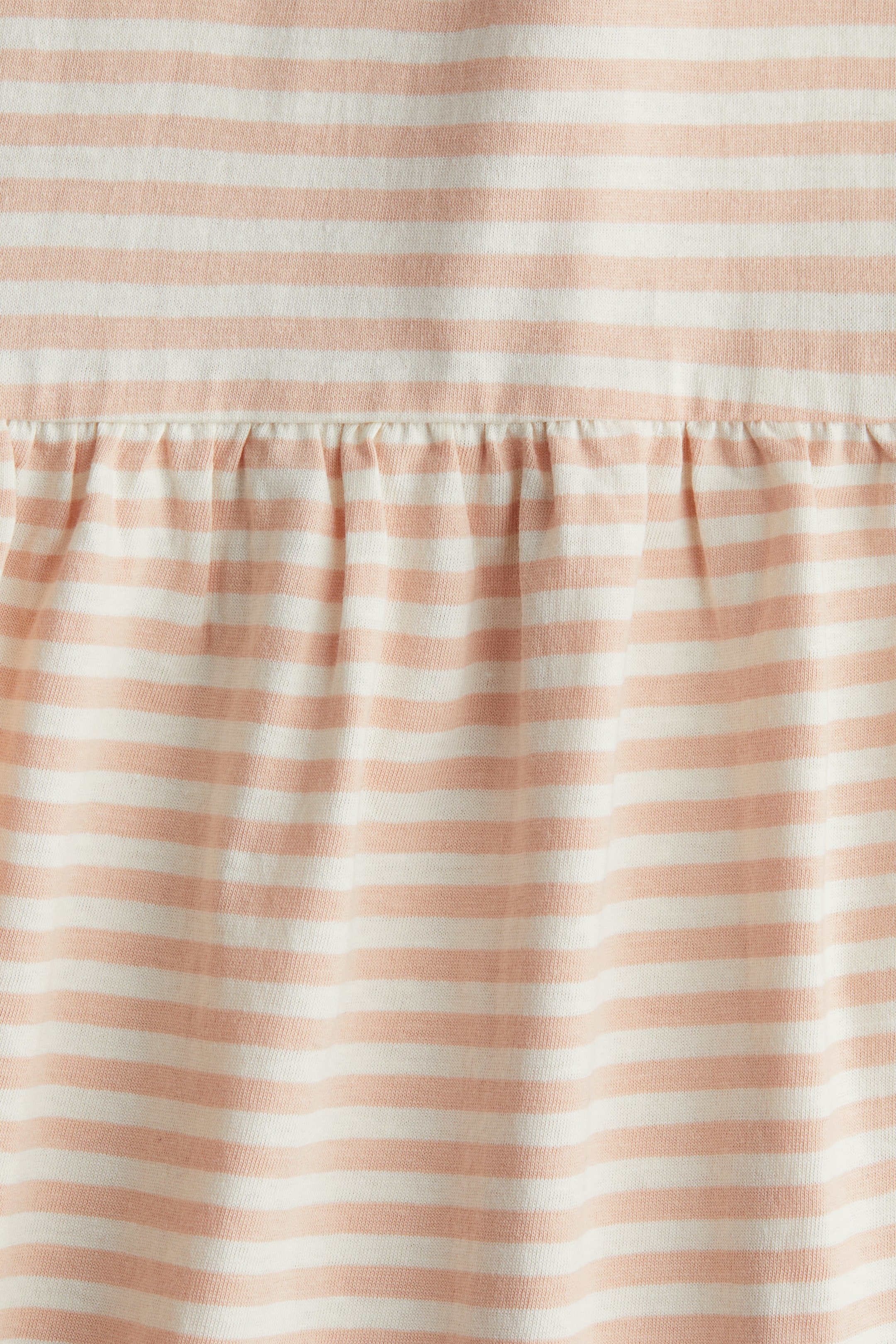Sleeveless dress in soft cotton jersey with narrow shoulder straps. Gathers at midsection.