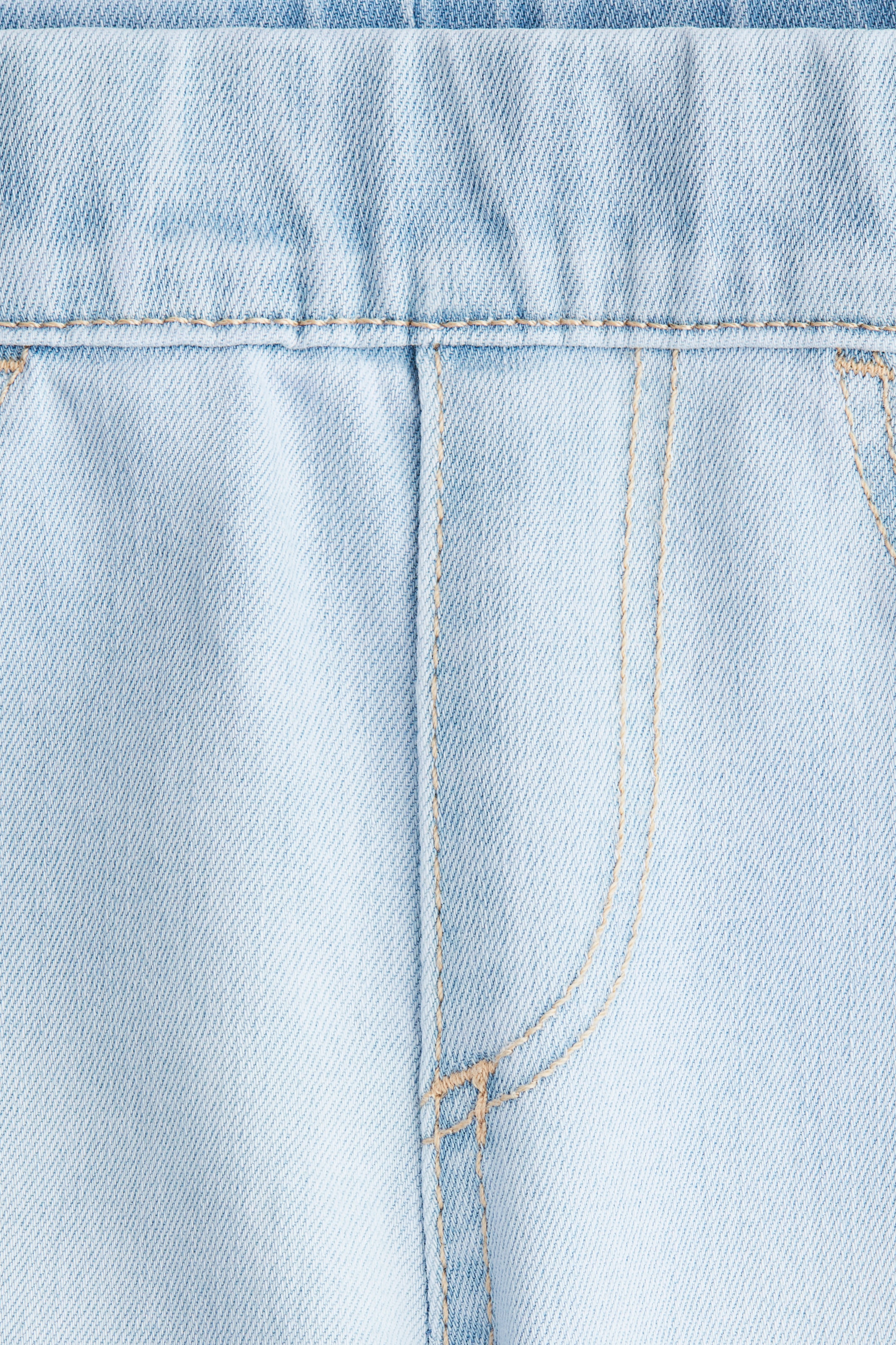 Jeans in superstretch, flexible denim for added freedom of movement. Slim fit through hip and thigh. Covered elastic at waistband, mock fly, mock front pockets, and regular back pockets. Flared legs.