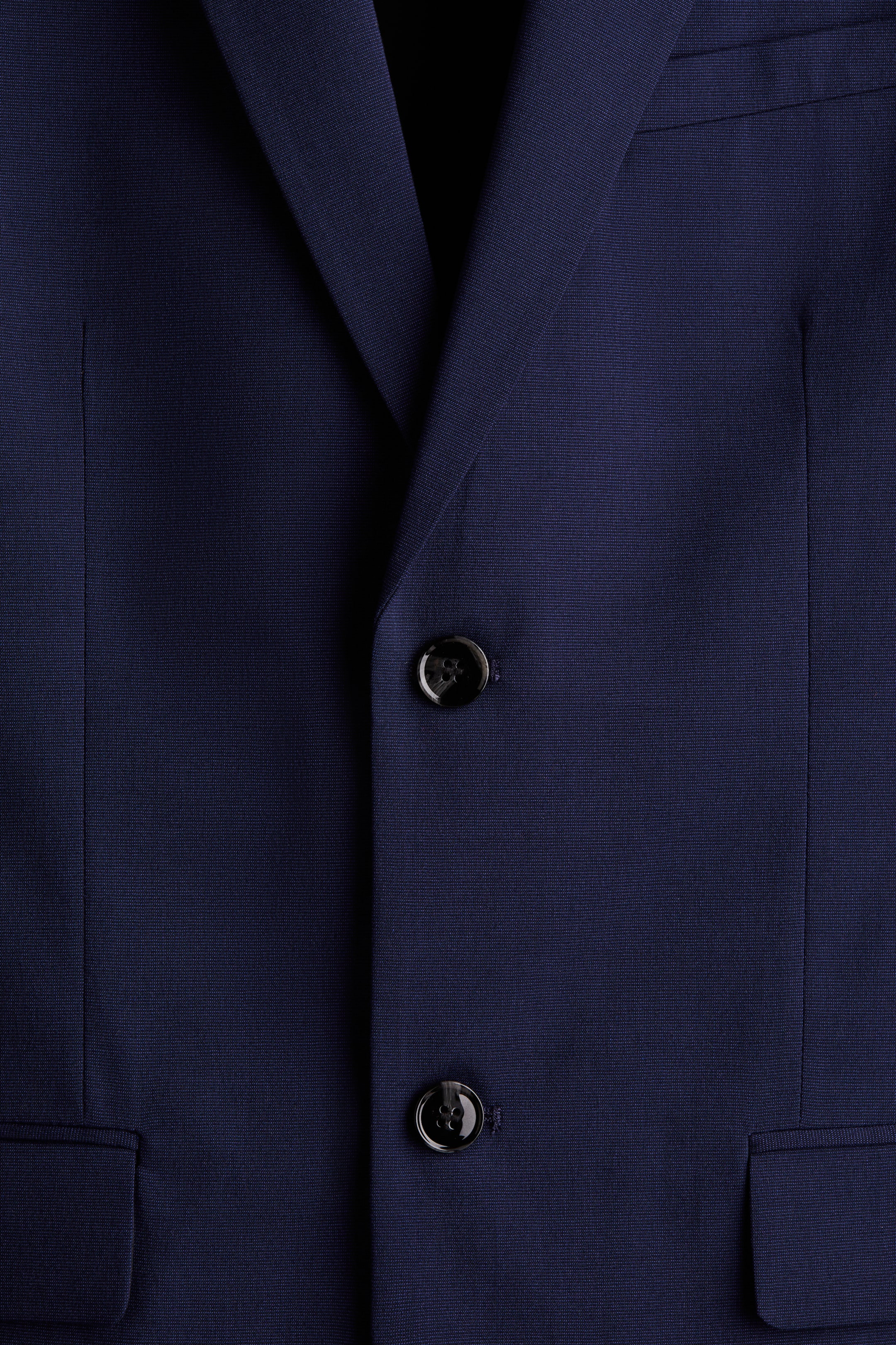 Regular-fit, single-breasted jacket in soft woven fabric with a comfortable, classic silhouette. Notched lapels with a decorative buttonhole, two buttons at front, and decorative buttons at cuffs. Welt chest pocket, front pockets with flap, and two inner pockets. Double vent at back. Lined.