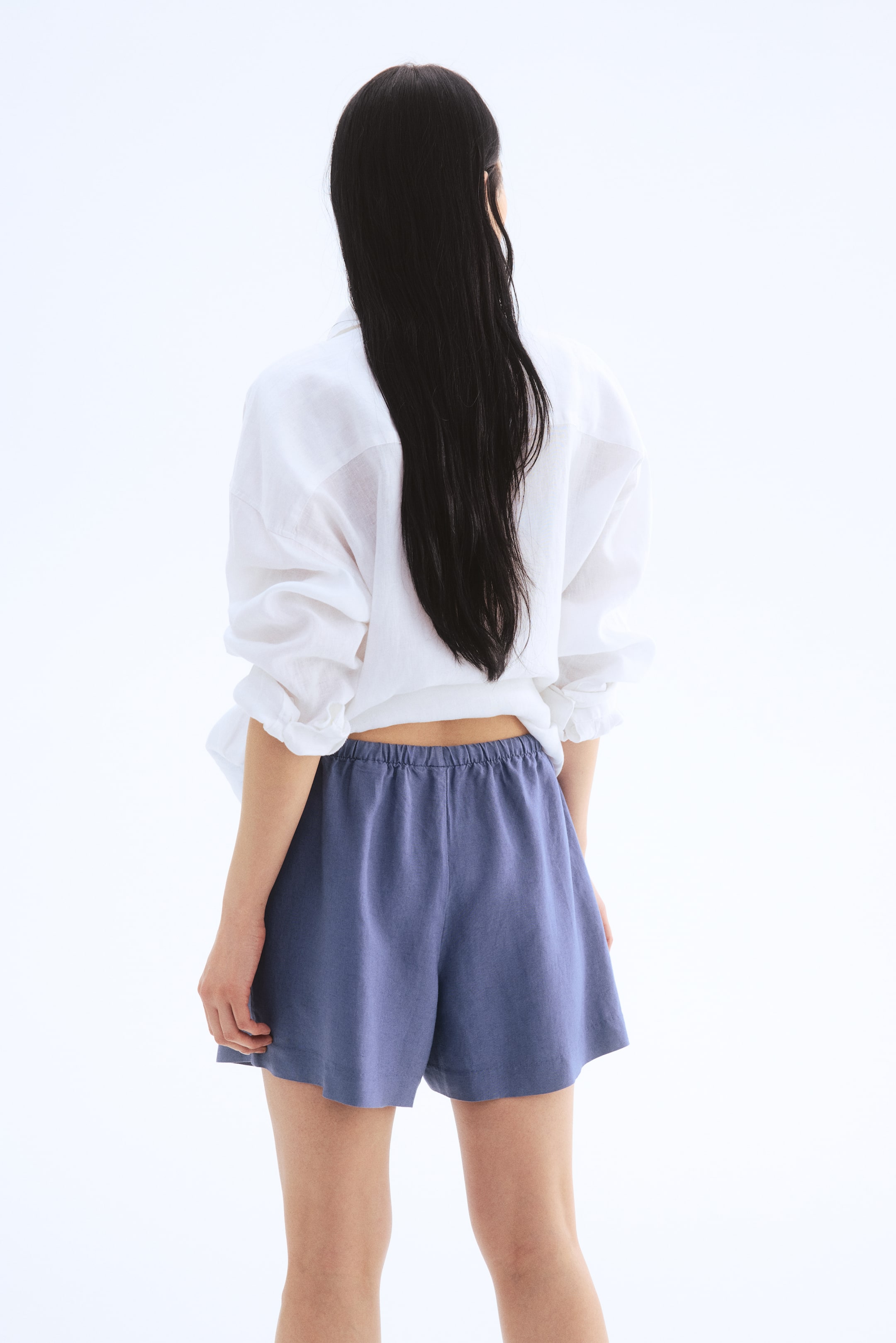 Loose-fit shorts in a woven linen and viscose blend. Elasticized, drawstring waistband, discreet side pockets, and a small slit at hems.
