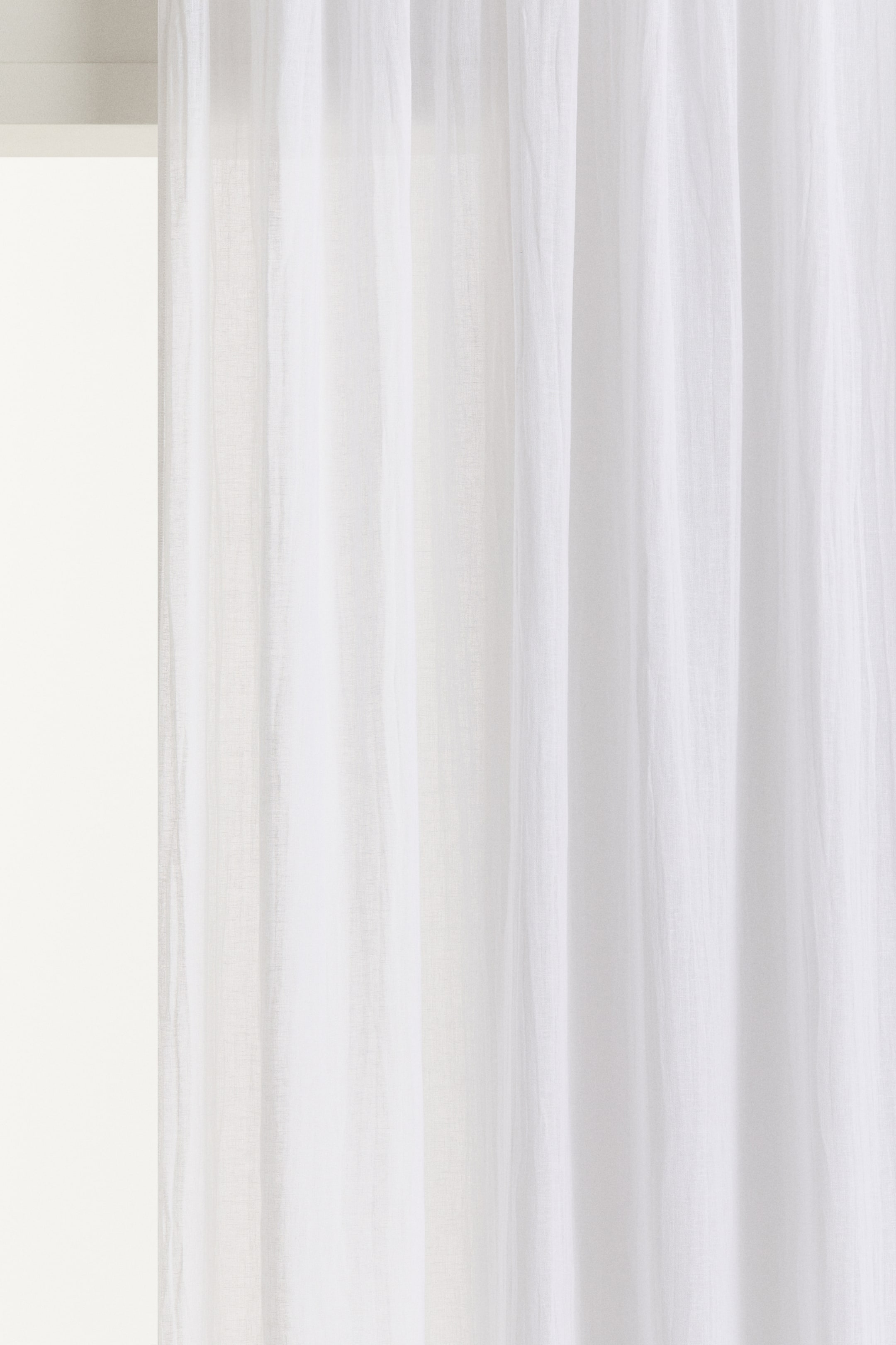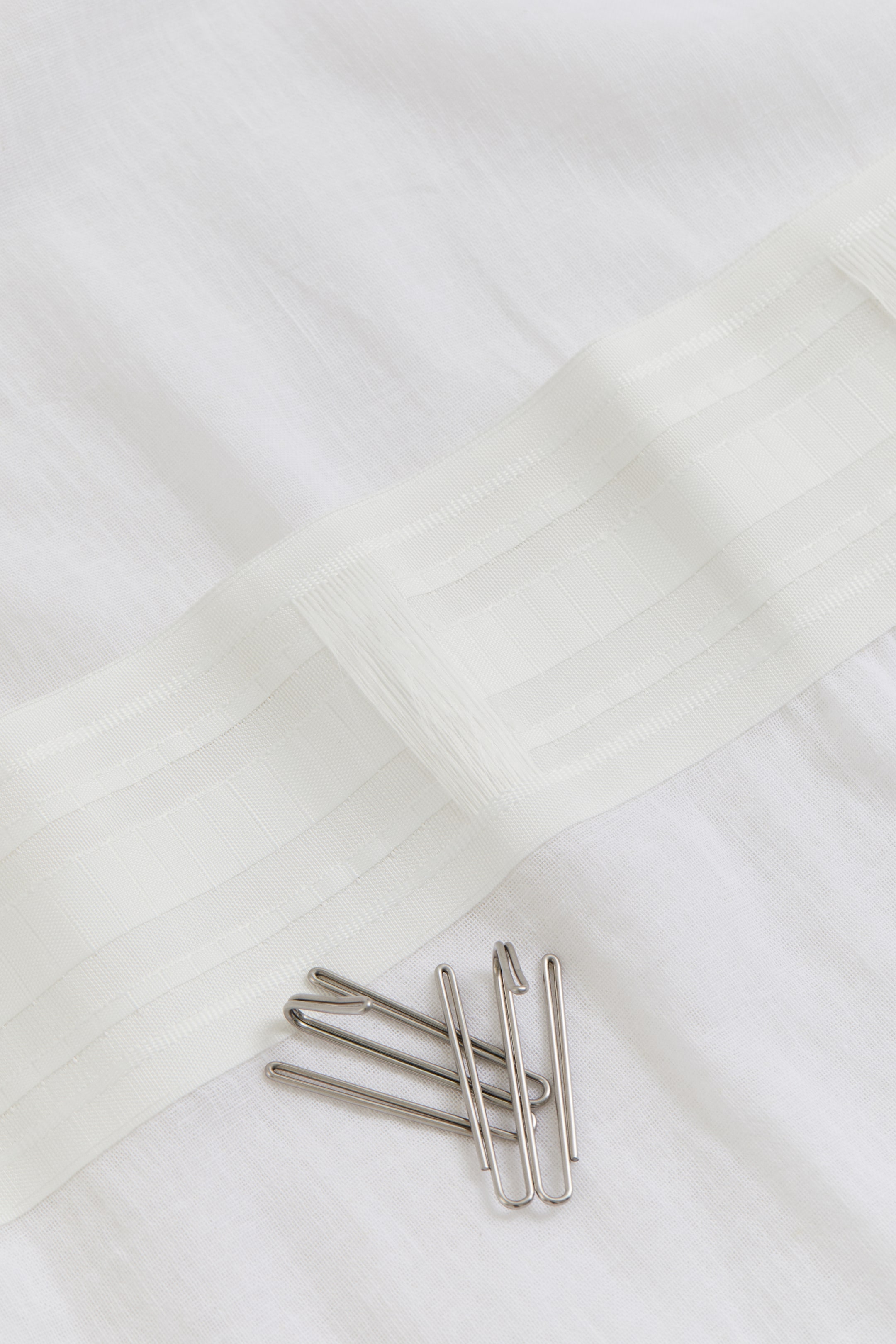 Extra-long curtain panels in a woven linen and cotton blend. Multiway header allows for various hanging options, making it adaptable to different rods or tracks – perfect for easily changing your curtain looks. These curtains allow some light into the room while still providing privacy. Hemmed. Hemming tape included. Hooks not included.