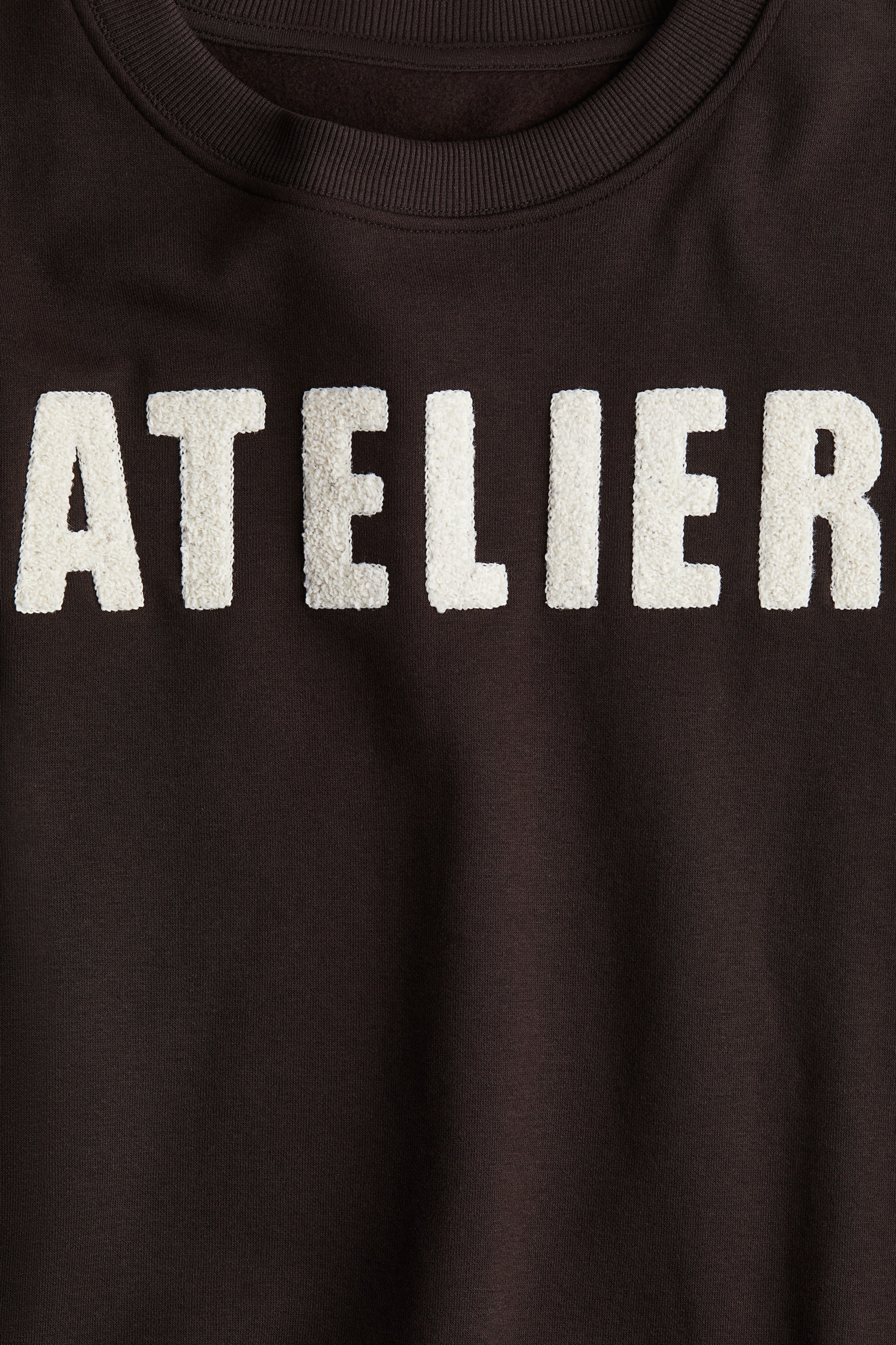 Oversized sweatshirt with a text motif at front and soft, brushed inside. Round neckline, dropped shoulders, and long sleeves. Ribbing at neckline, cuffs, and hem.