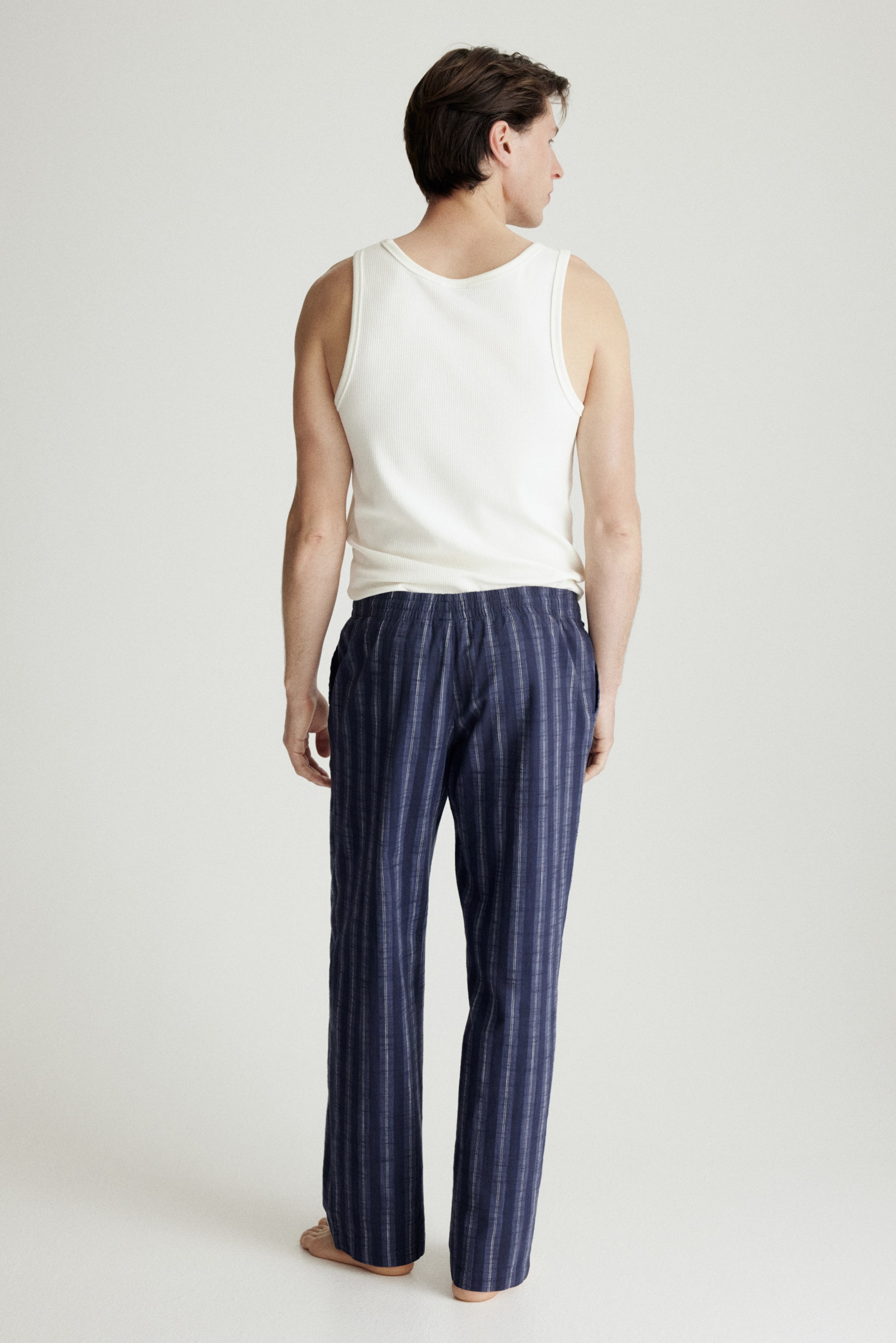 Relaxed-fit pants in woven cotton with a casual but not oversized silhouette. Elasticized, drawstring waistband, mock fly, and side pockets.